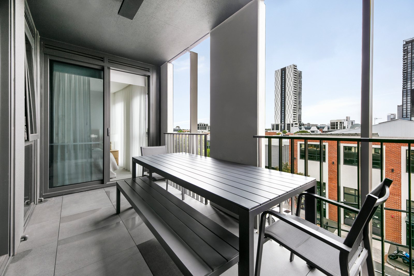 The stylish kitchen is equipped with a double sink, integrated fridge, dishwasher, gas cooktop, and generous bench space—flowing seamlessly into an open-plan living and dining area. Step outside to the expansive, covered balcony, complete with heating, making it ideal for year-round enjoyment.