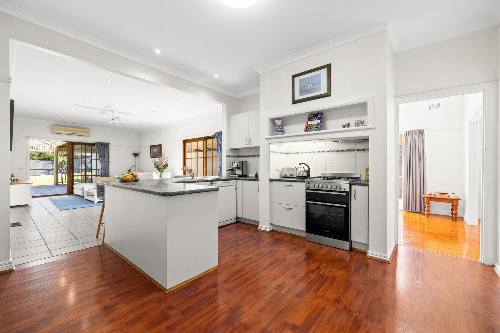 Immediately appealing thanks to its verandaed facade and pretty front garden, the classic-style weatherboard opens to interiors that include a formal lounge (gas heater set within the original fireplace), dining room, casual open plan family & meals area and central kitchen with freestanding stainless steel oven and LG dishwasher.