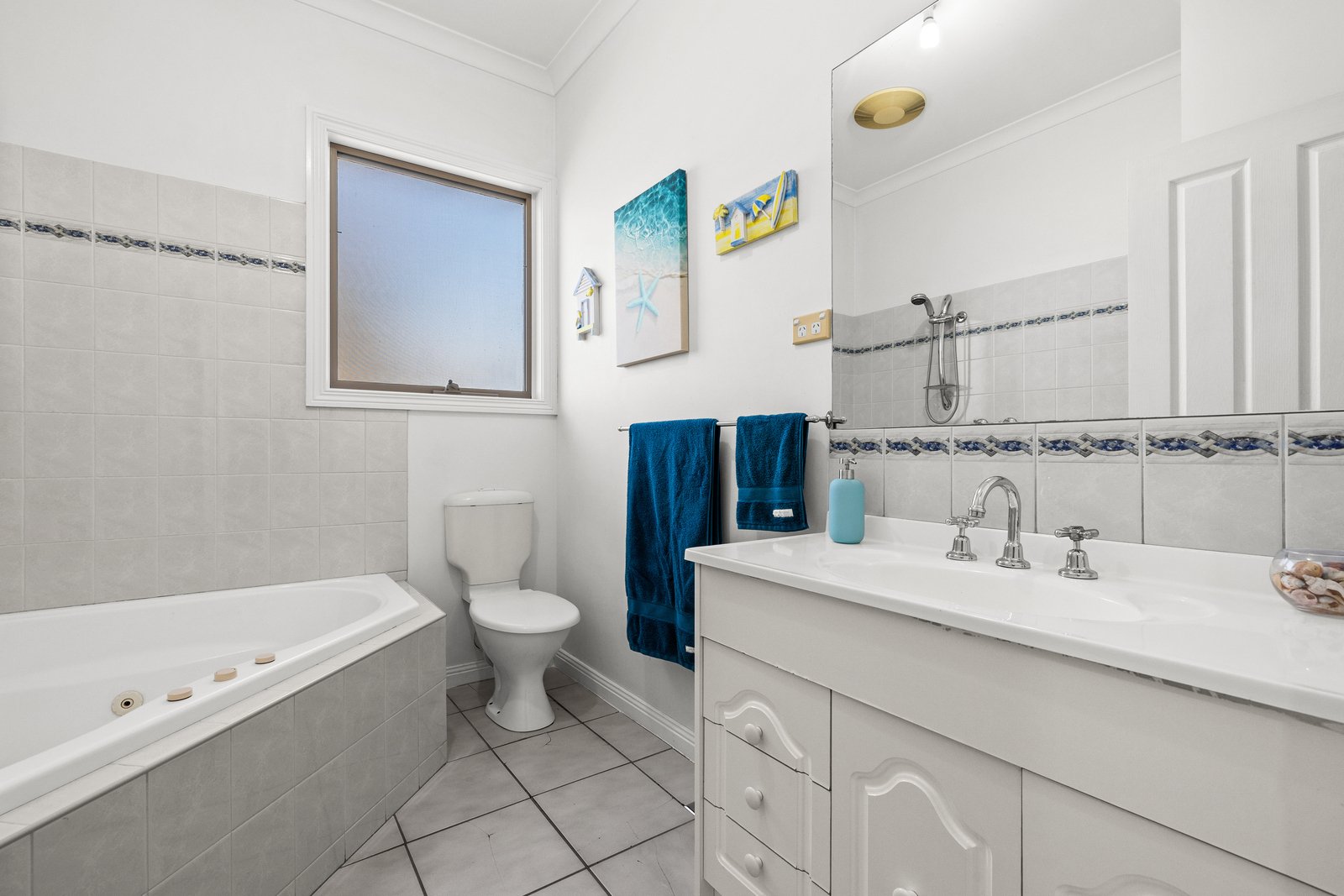 Two bathrooms service the four generous bedrooms, one with bubbling spa. Three of the bedrooms boast built-in storage while also offered are ducted heating, split system heating/cooling and full laundry with rear access.