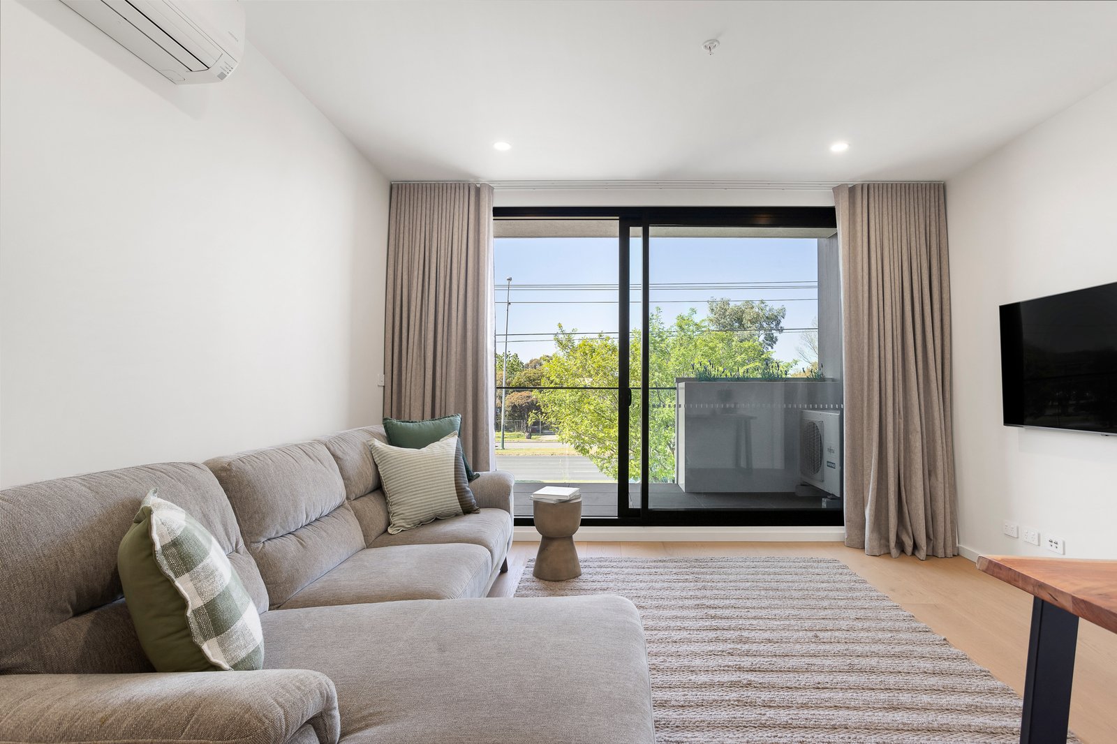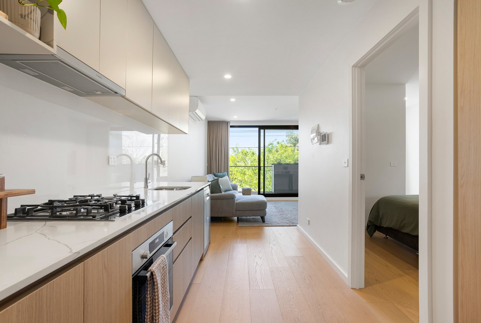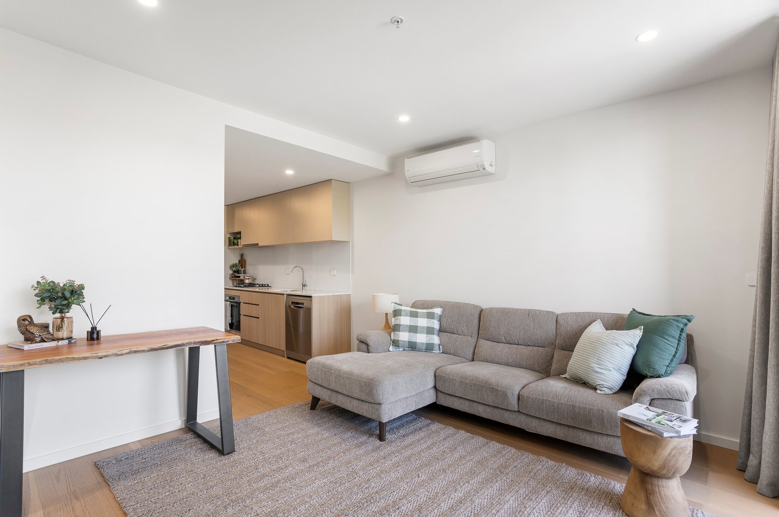 This modern 1-bedroom apartment is all about comfort, light, and convenience. From the moment you walk in, you’ll notice how bright and open the living space feels, flowing straight out to a large northerly-facing private balcony that’s perfect for morning coffees, casual dinners, or simply relaxing outdoors.