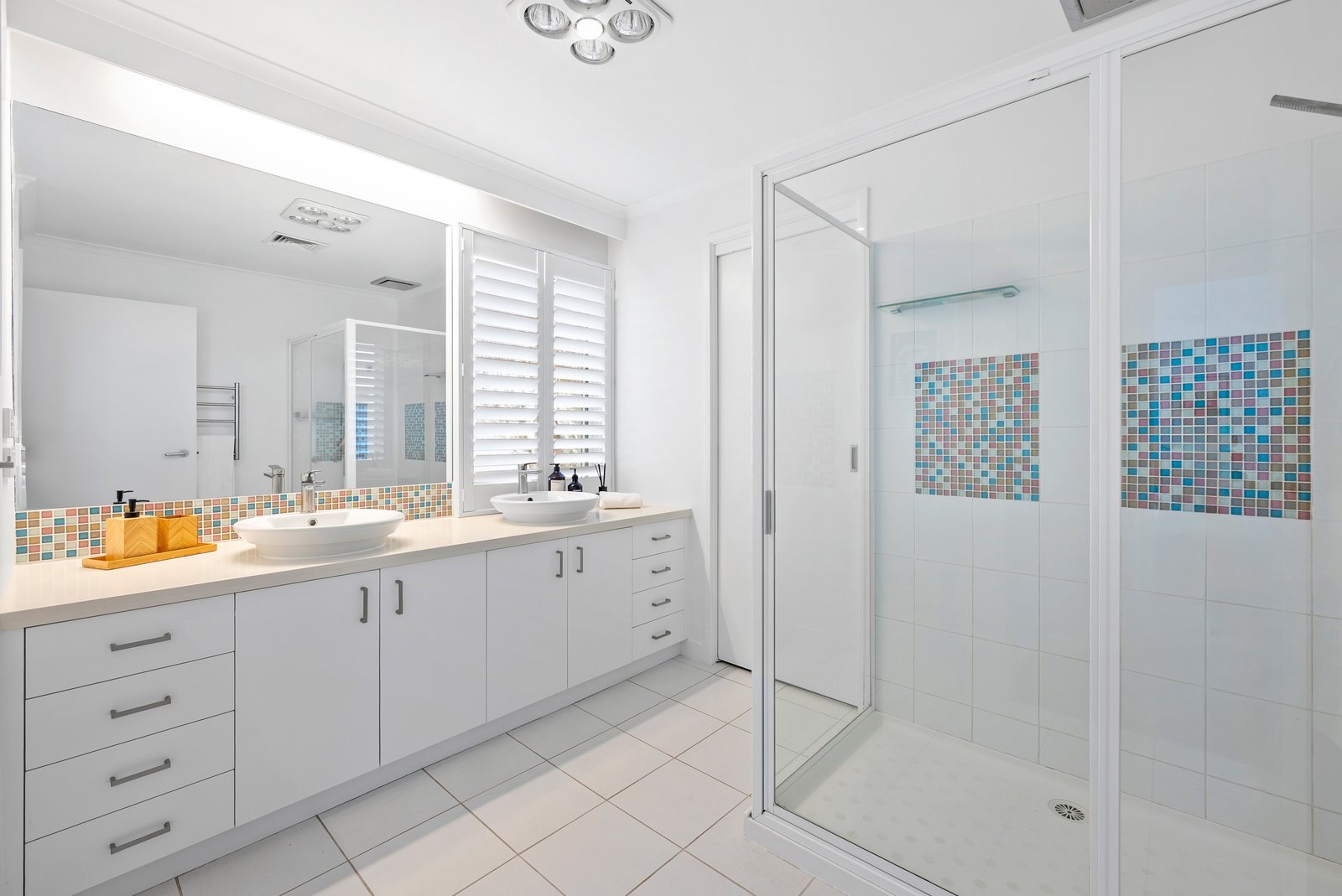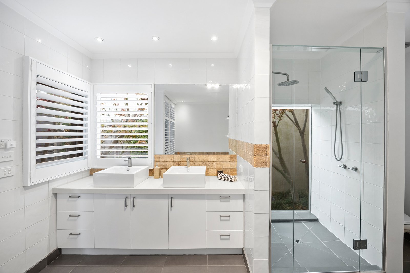 Beside the pool, the master suite promises indulgence at every turn, where leafy serenity and tranquil water features lie just beyond the glass. The ensuite features twin vanities, a corner spa bath, and a double shower.