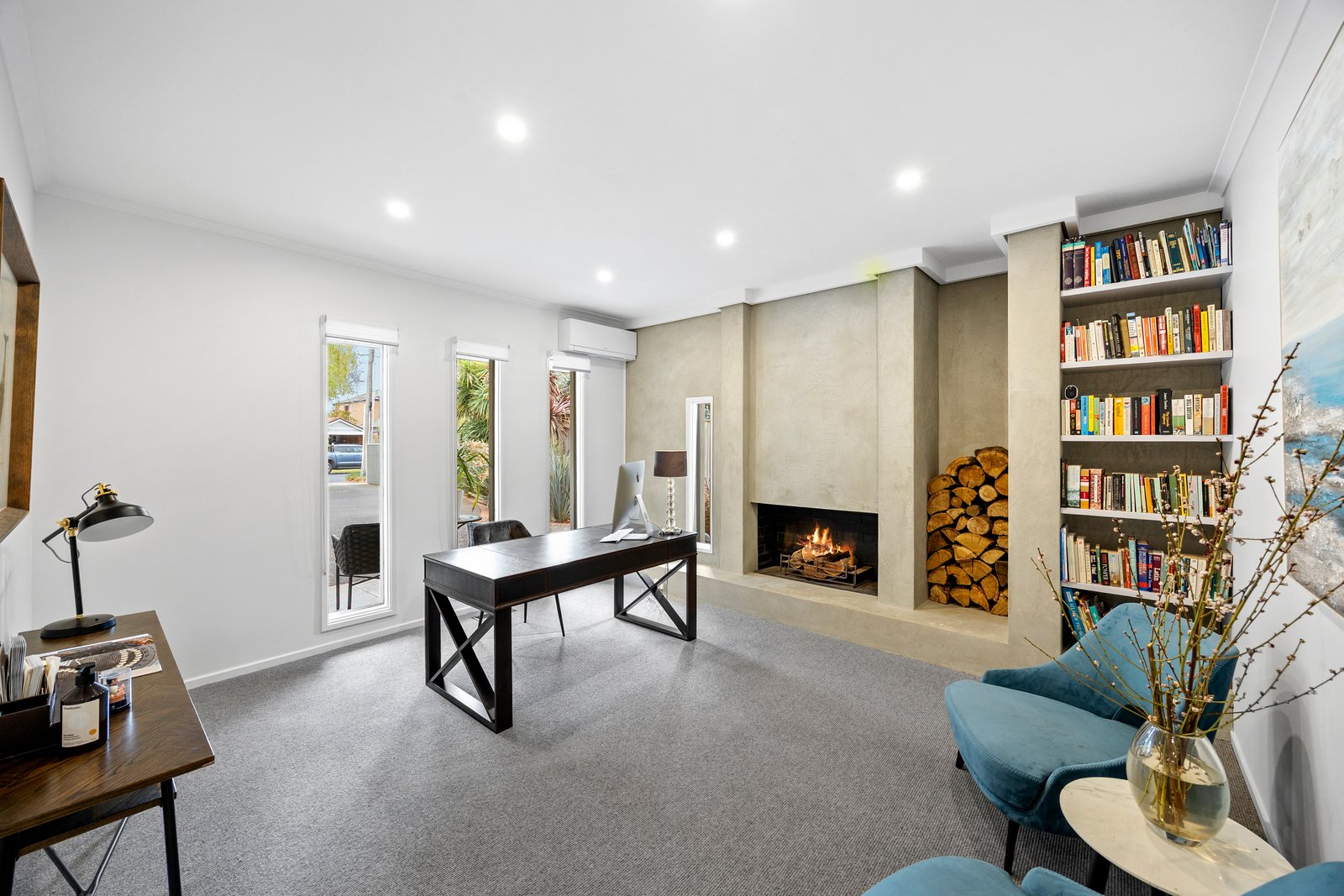 Upstairs, a retreat with fitted study nook is flanked by two bedrooms with walk-in robes - one with a fitted desk - sharing a luxe semi-ensuite with dual vanities. At the front, a ground-floor bedroom with two-way bathroom adds versatility.