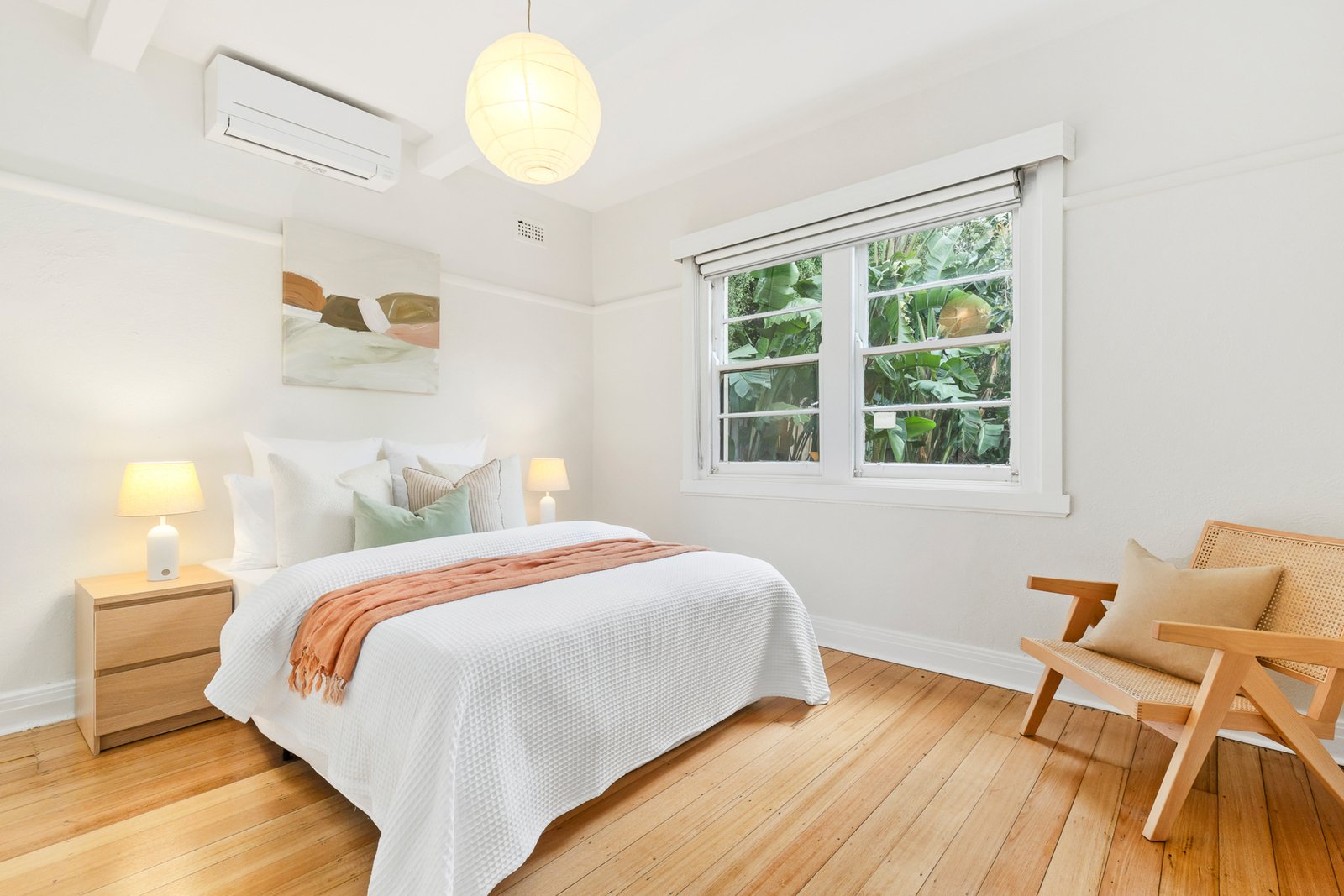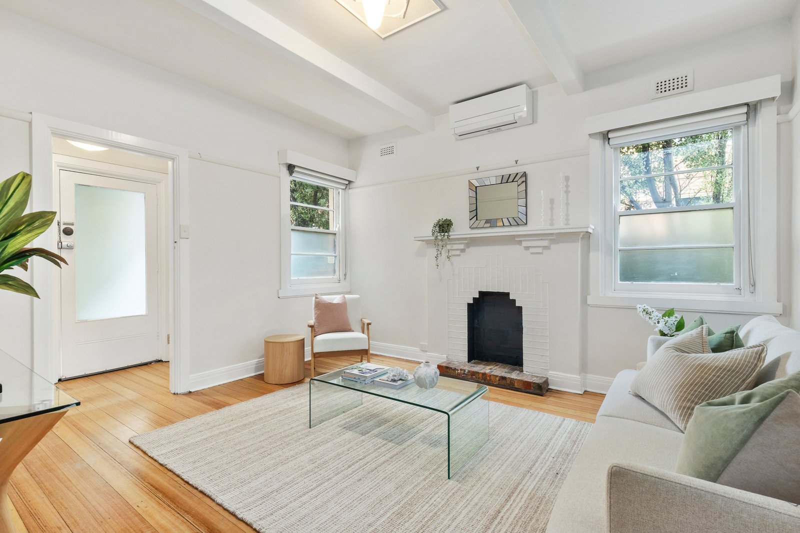 Inside, a generous kitchen features gas cooking, a dishwasher, extended cabinetry, updated lighting and abundant storage, flowing to a large lounge filled with natural light. Two well-sized bedrooms are fitted with BIRs, while a modern bathroom with a shower over bath adds a fresh contemporary touch. Original oak floorboards enhance the home’s warmth and character, complemented by a powerful 7kw Mitsubishi heat pump A/C with units in both bedrooms and the lounge for year-round comfort.