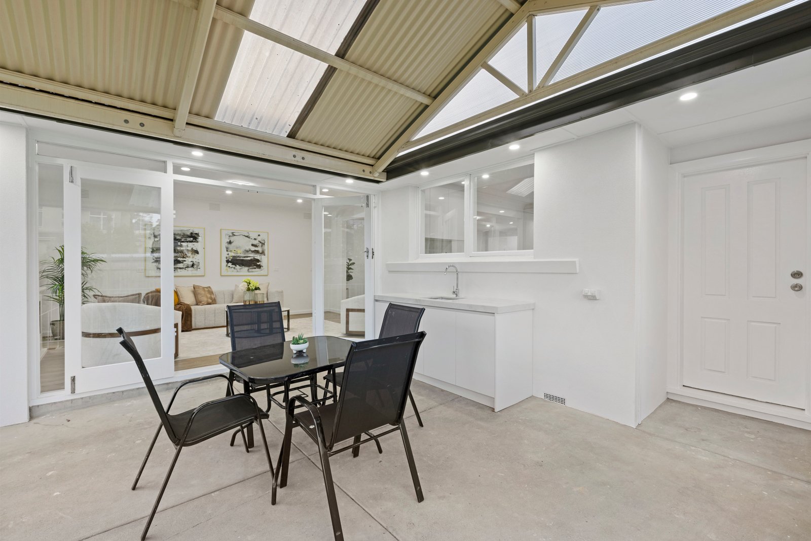 A feature mirror and buffet at the entrance hall creates a lovely welcome home, with free-flowing living space drawing outside to a covered deck with its own kitchenette.