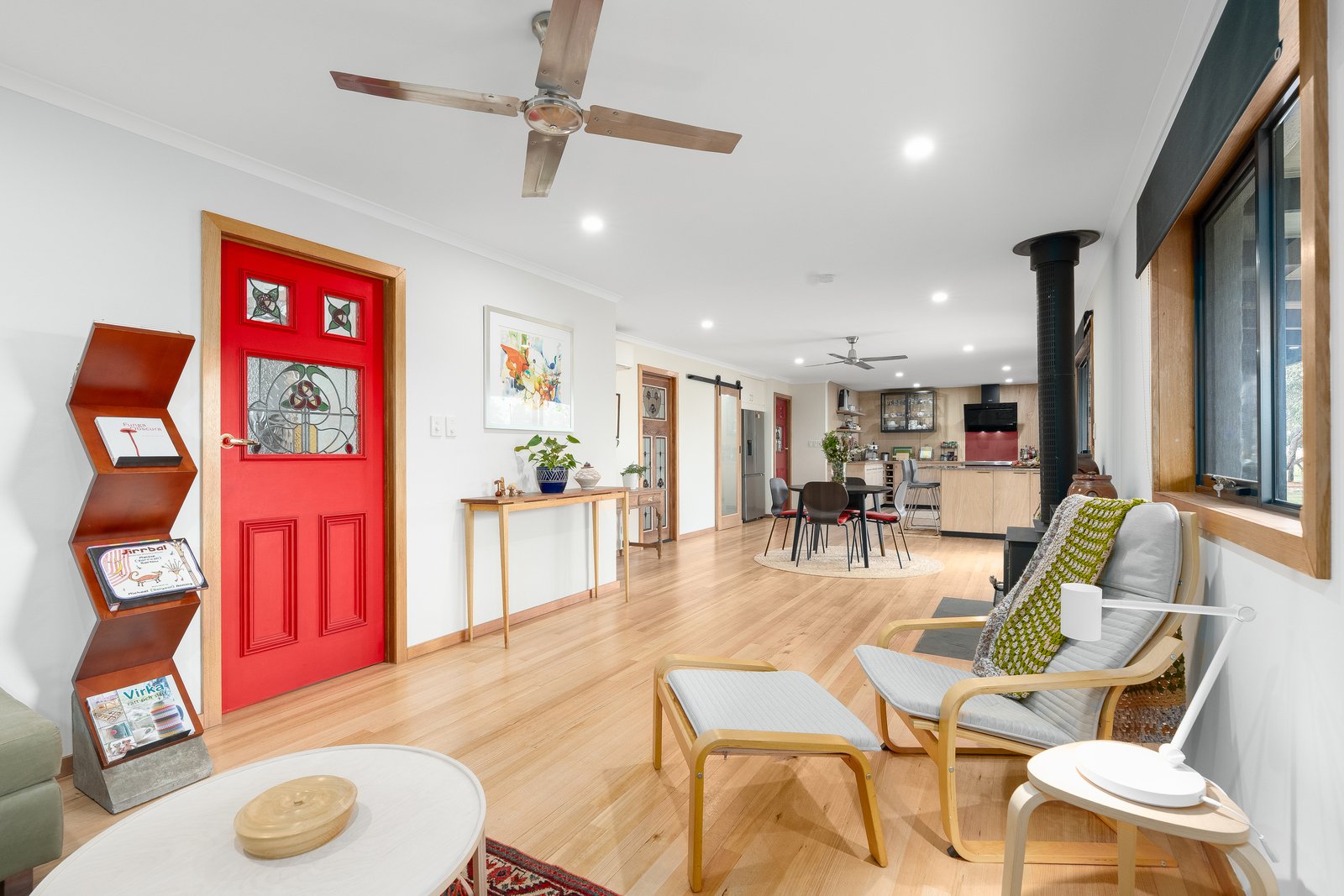 Set on 4.94 acres (approx.), 210 Reddens Road, Balliang, built in 1993, blends a modern Scandinavian-inspired home with the space and freedom of country living. The 3-bedroom home features built-in robes, a spacious bathroom/laundry, woodfire fireplace, split system heating/cooling, and solar power.