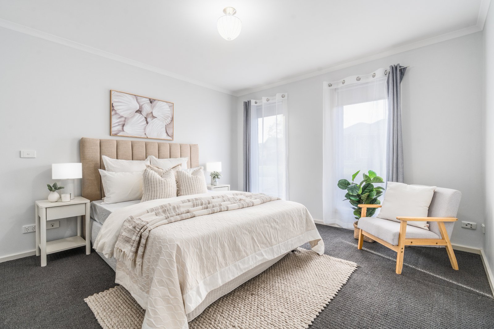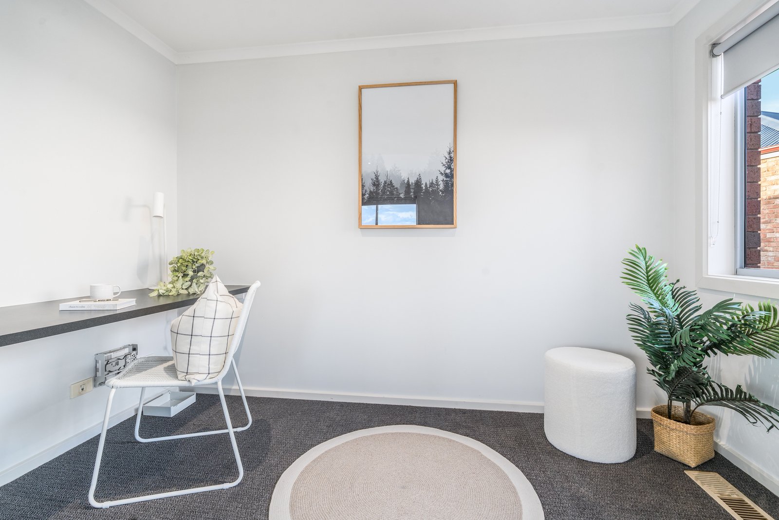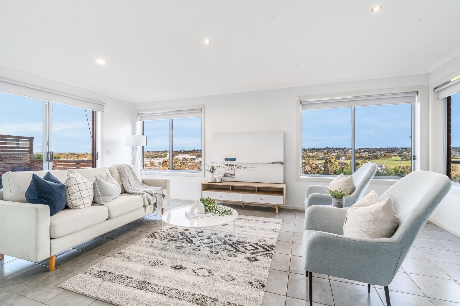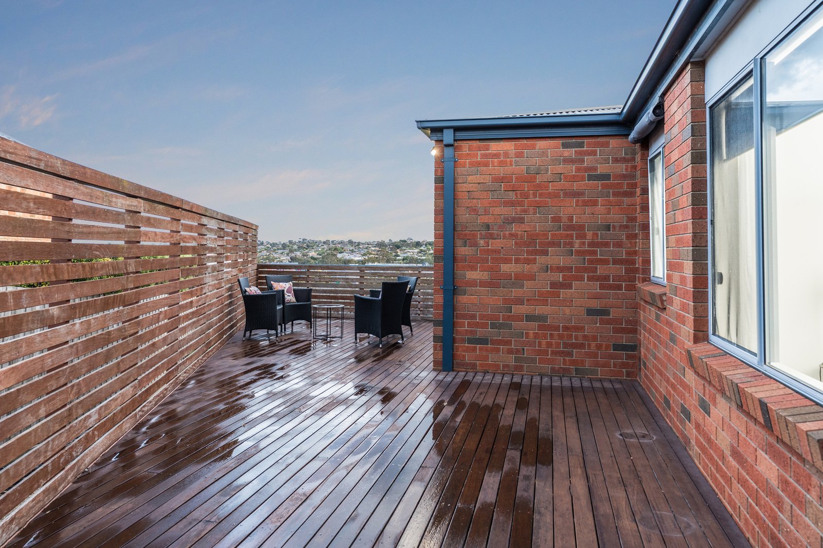 Bathed in natural light, the open-plan kitchen, dining and living areas form the heart of the home, seamlessly connecting to two distinct outdoor entertaining spaces. Whether it’s an alfresco meal under the sheltered patio or evening gatherings on the elevated deck overlooking Waurn Ponds, every occasion feels special. Four bedrooms provide peaceful retreats, including a master suite with walk-in robe and ensuite, while a versatile study nook and additional rumpus room add to the home’s flexibility.