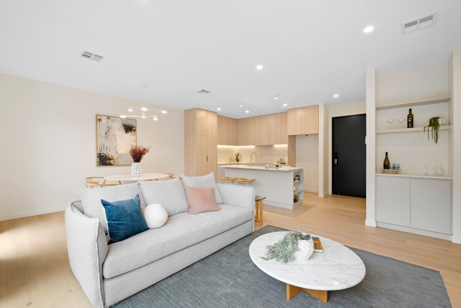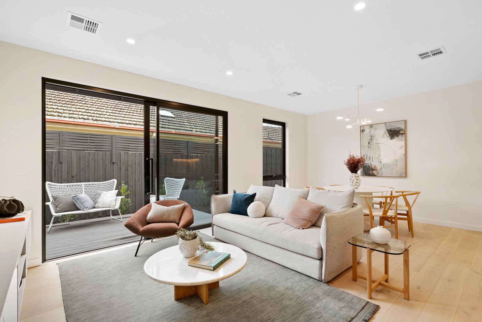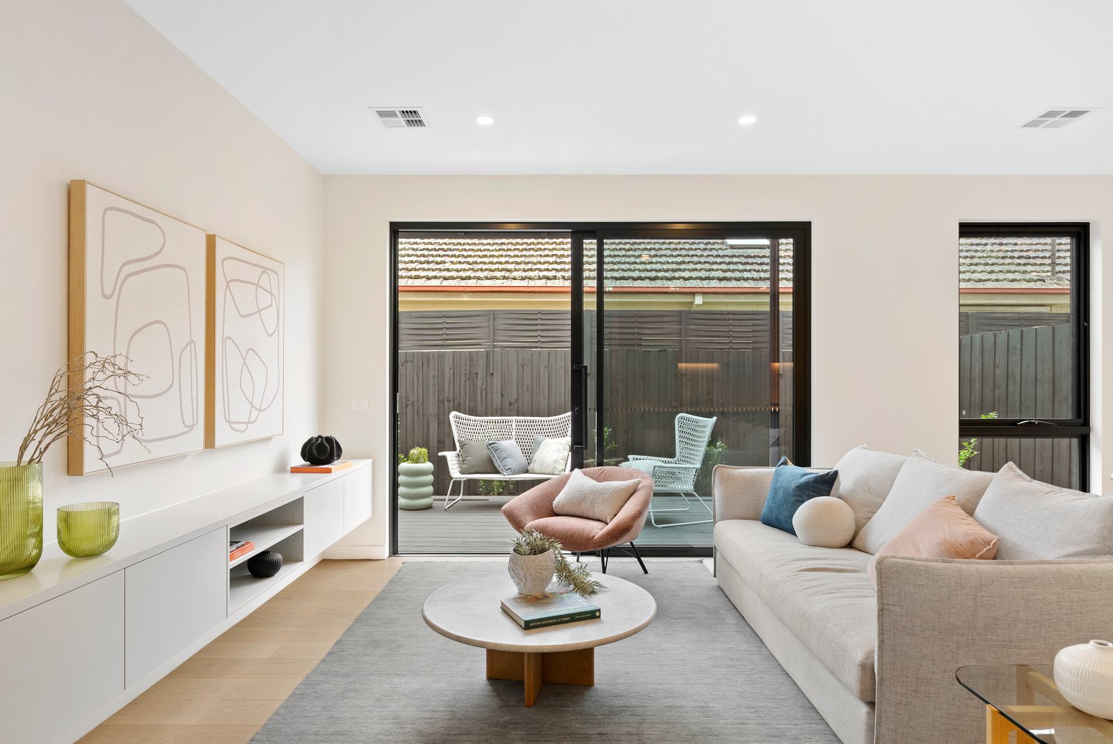Discreetly positioned between its distinguished neighbours, this just-completed residence is a rare opportunity to secure prestige, privacy, and convenience in one of Bentleigh’s most central addresses. Expertly crafted by acclaimed local builders BFG Construction, this boutique home of three offers an elevated lifestyle with three bedrooms, 2.5 bathrooms, and a flexible upstairs retreat or study — all within strolling distance of vibrant dining, retail, and rail.
