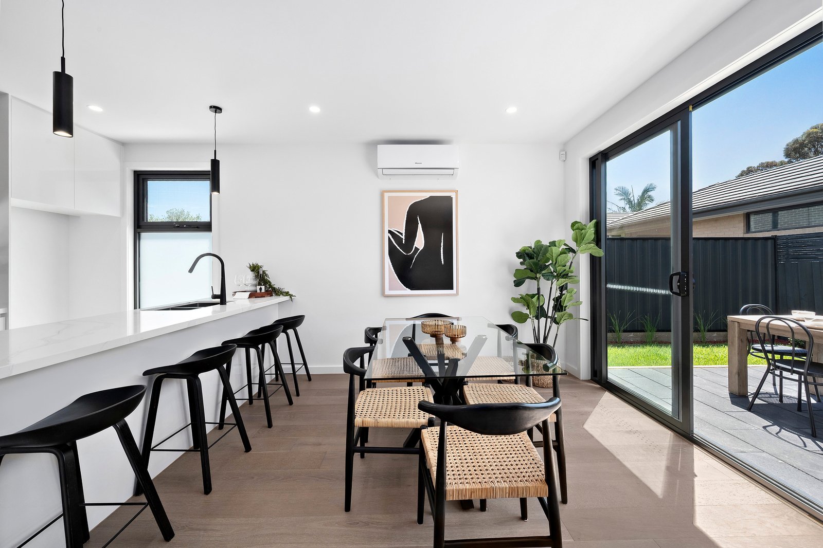 With its stylish contemporary design and family-sized space, this brand new 3 bedroom, 2.5 bathroom residence offers high-end finishes and a brilliant lifestyle location. Close to walking tracks, parks, schools, transport and the beach, you’ll love the prime position! Infused with natural sunlight, the open plan living and dining area unfolds to a beautiful alfresco setting and lush lawn through stacker sliding doors – ideal for relaxed entertaining and secure for children to play. The gourmet kitchen boasts premium BOSCH appliances, including an integrated dishwasher, a window splashback and expanses of bench space. Upstairs, the three bedrooms are tranquil retreats, all with mirrored built-in robes, individual split systems and soft carpet underfoot. The main bedroom enjoys a lavish rain-shower ensuite, with the luxury main bathroom serving the remaining two bedrooms. This sanctuary is beautifully appointed with full-height tiling, stone surfaces, engineered timber flooring, a downstairs powder room, video intercom and alarm system. Final touches include double-glazing, a full laundry room and double remote garage with internal-entry. Positioned for the ultimate convenience, this stunning home is just 400 metres from Chelsea Primary School and St Joseph’s Primary School. Within walking distance you’ll find Chelsea Station, Chelsea Village, the Longbeach Trail, Bicentennial Park and breathtaking beaches.