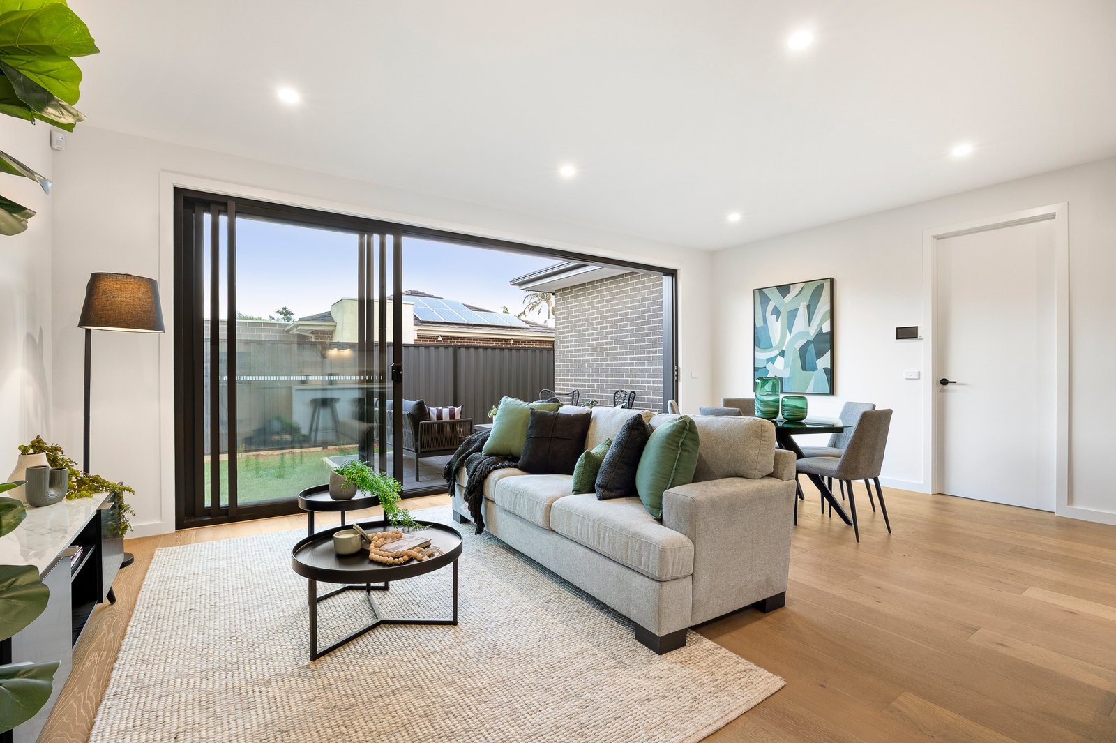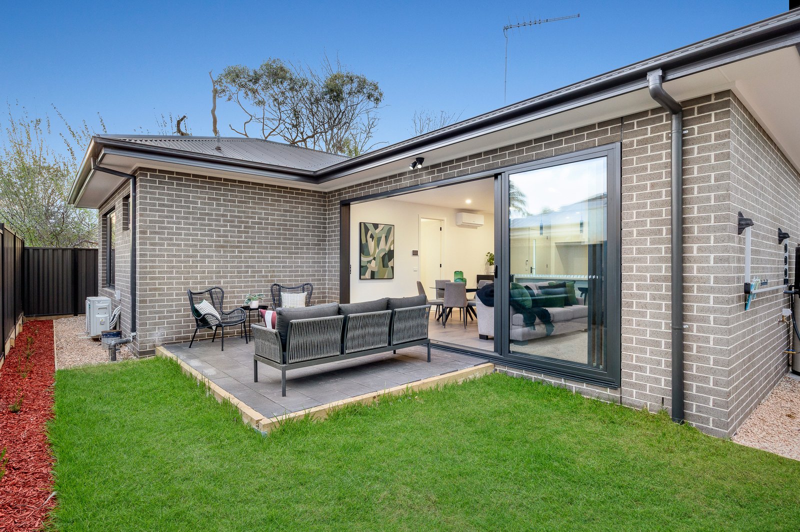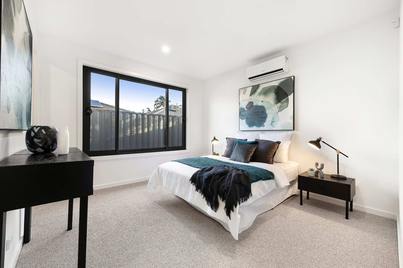 Immerse yourself in contemporary luxury and single level bliss with this new 2 bedroom + study, 2 bathroom sanctuary. Enjoying a secluded rear position and standalone appeal, this turnkey haven is perfectly placed for a golden beachside lifestyle. Exuding quality with its engineered timber flooring and double-glazing, full-height tiling and sublime rain shower bathrooms, this beautiful home impresses from the moment you step inside. Discover sophisticated spaces layered with the warmth of engineered timber flooring and the polish of sleek stone, elevated by the superior comfort of double-glazing and multiple split-systems. Stylish open plan living enjoys stacking doors to an expansive entertaining patio, ready for alfresco dining and summer evenings with family and friends. The kitchen is streamlined and showstopping, featuring a long island bench to gather around and BOSCH appliances, including an integrated dishwasher. Both bedrooms feature plush carpet, split-systems and walk-in robes, the master with a blissful ensuite, while a study offers that coveted extra space. A proper laundry offers fabulous storage, while video intercom, an alarm and heat pump hot water system are premium inclusions. Complete with a storage shed, water tank and internal-entry automatic garage, plus private gate access to Dodds Lane. Situated in a quiet neighbourhood pocket – buses, Chelsea Station and Chelsea Village are within walking distance, along with the Longbeach Trail, Bicentennial Park and beautiful beaches.