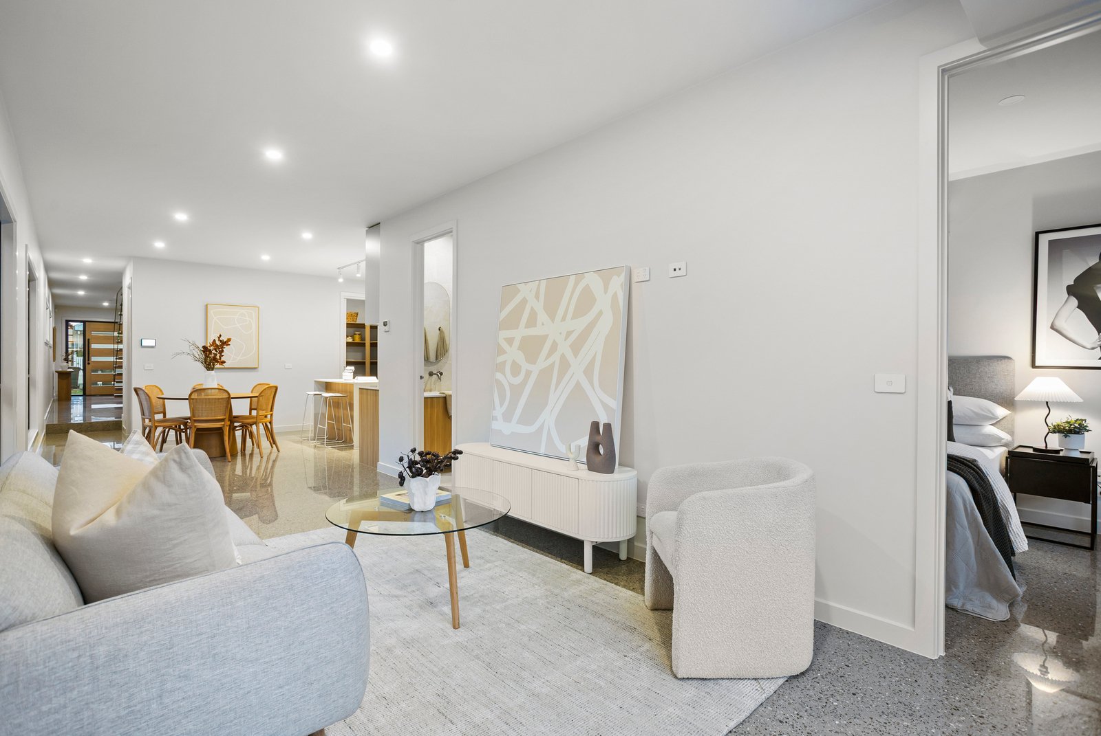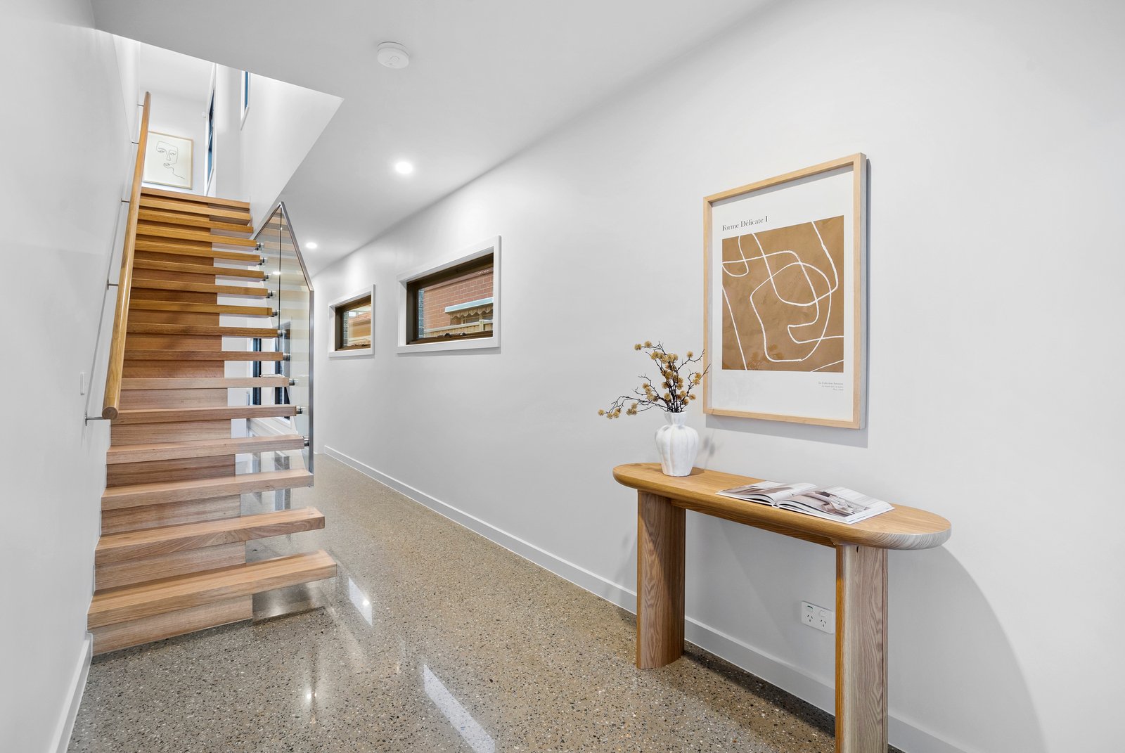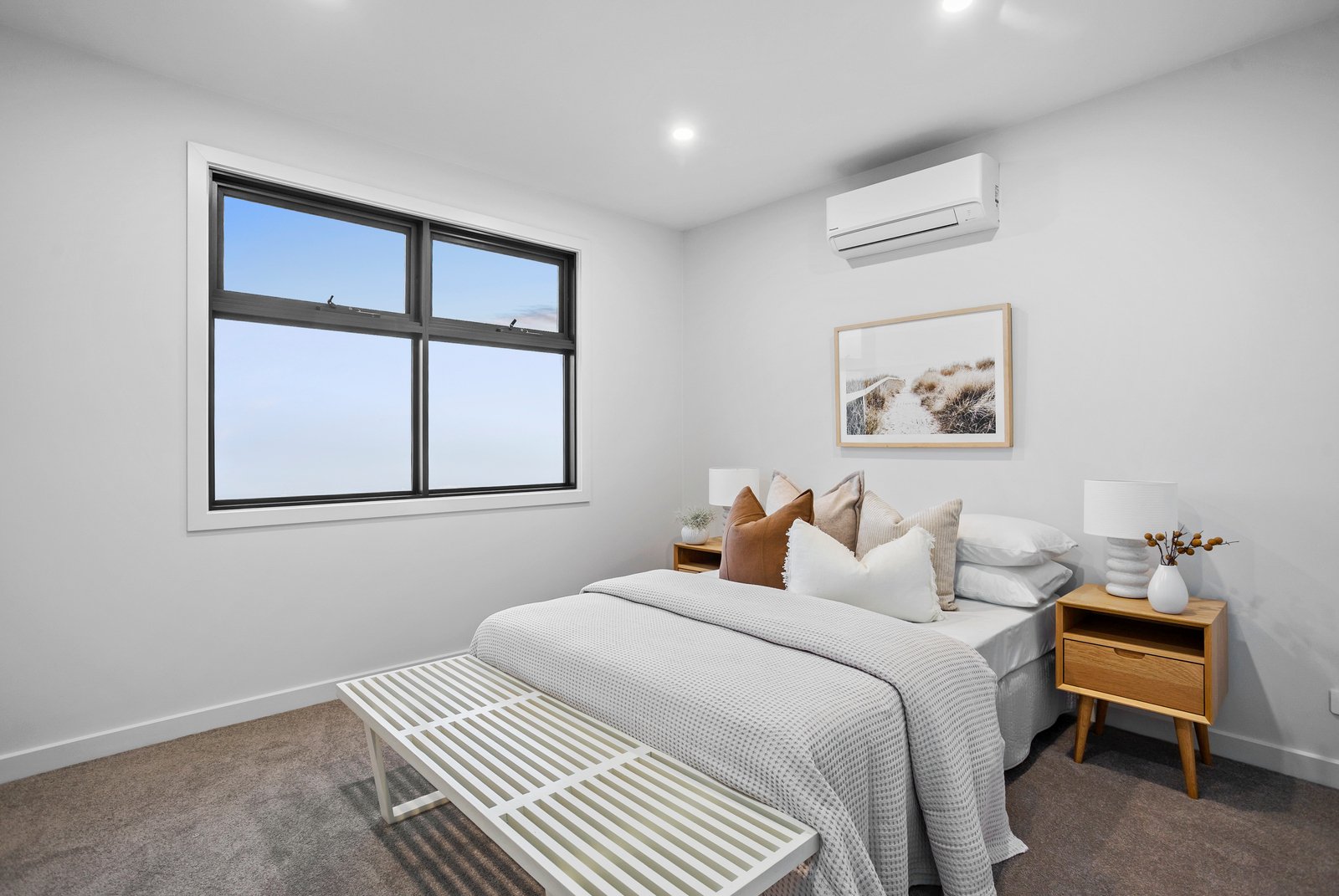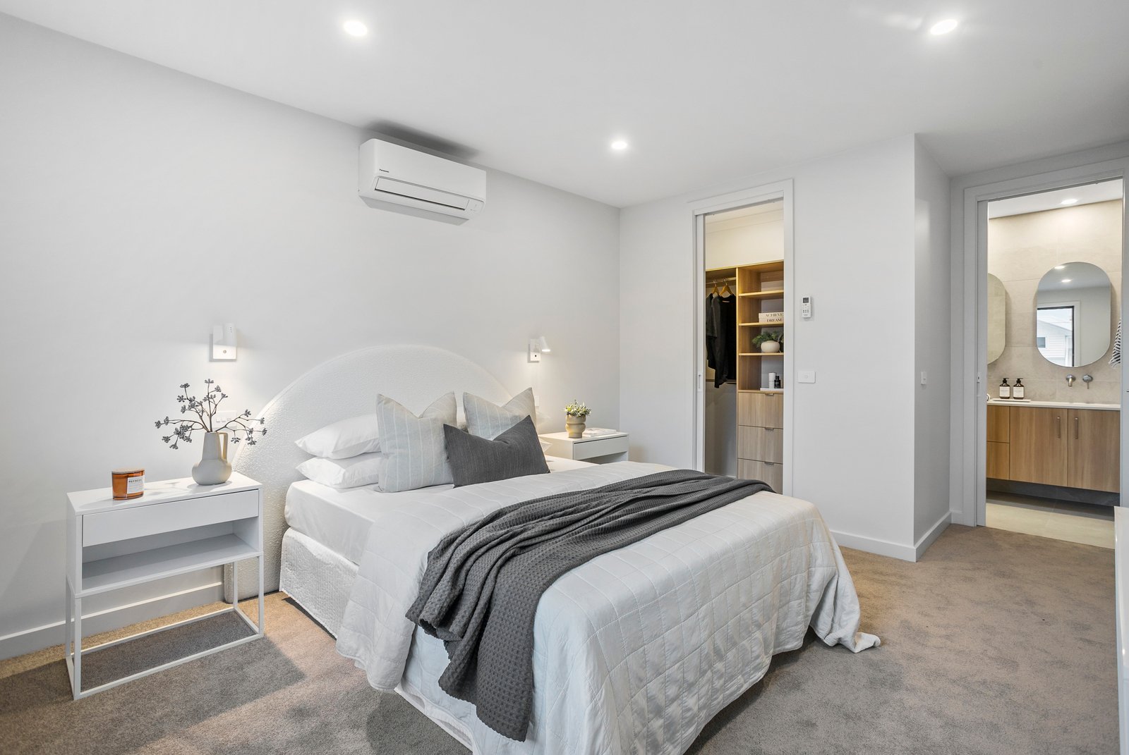 Split-system heating and cooling in all bedrooms ensures year-round comfort, while thoughtful sustainability features include a water tank. Every detail reflects meticulous attention to design, from the natural light that floods every room to the cohesive designer palette throughout.