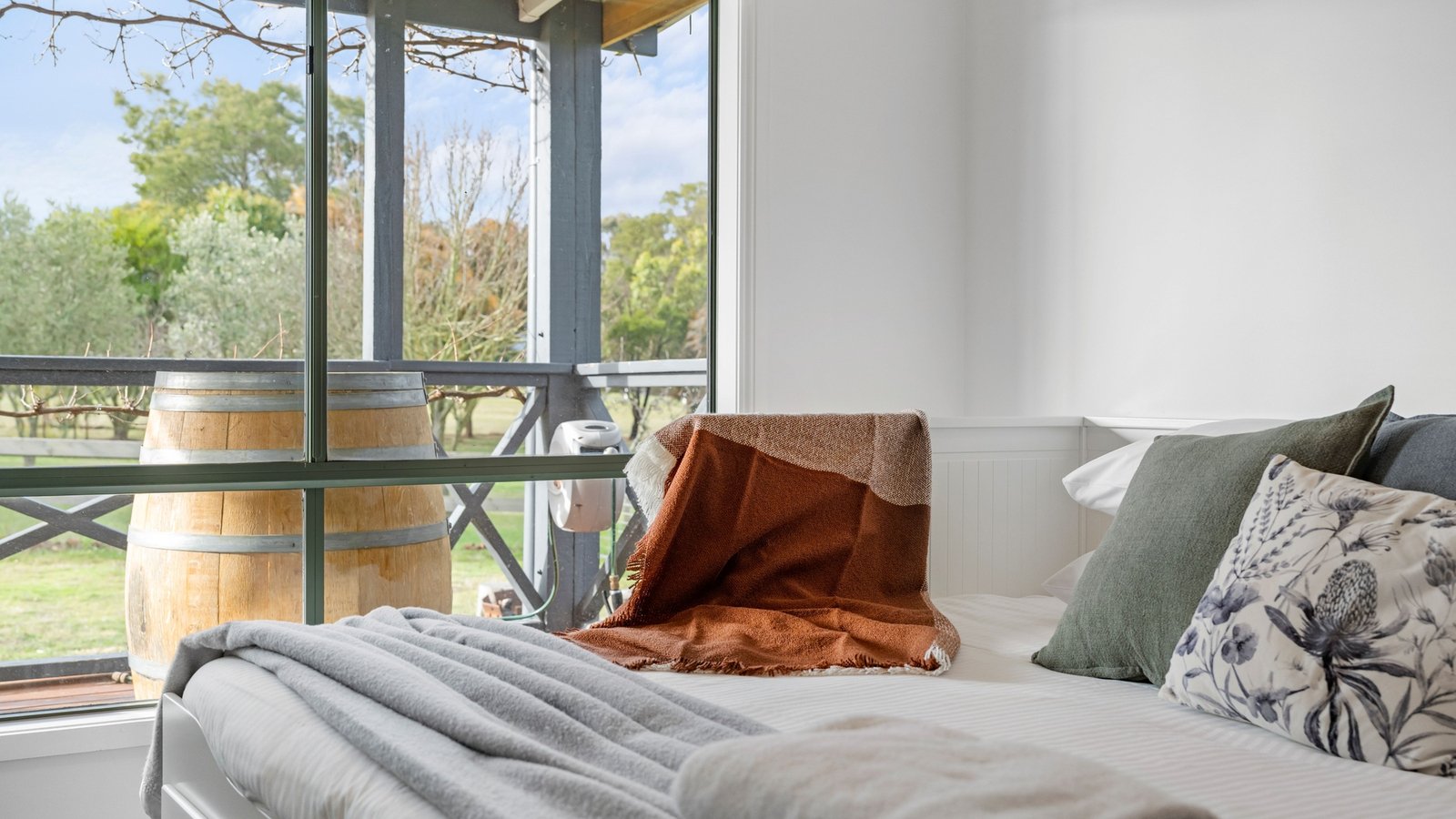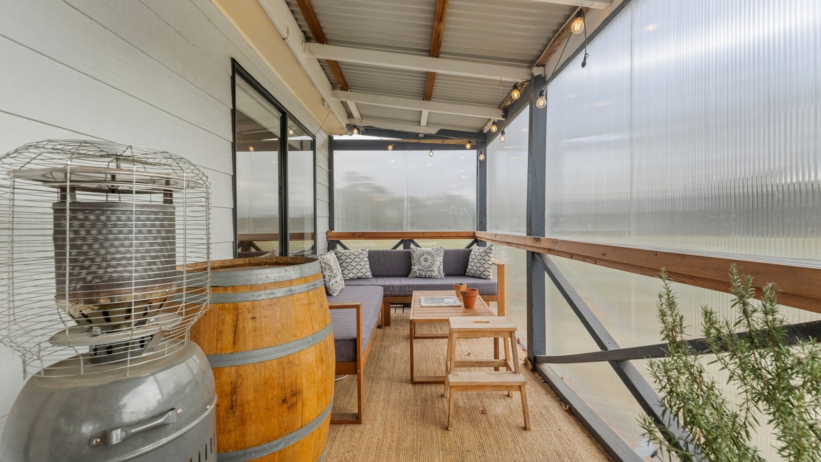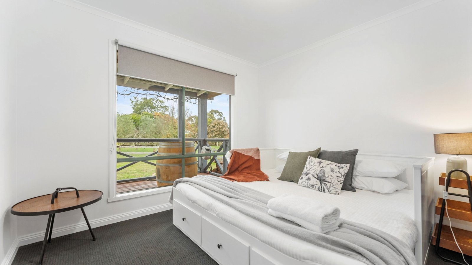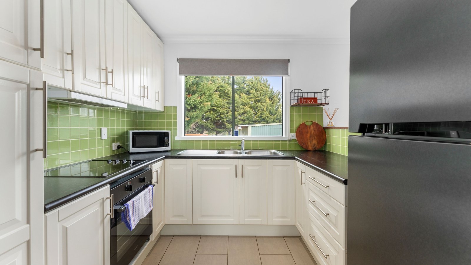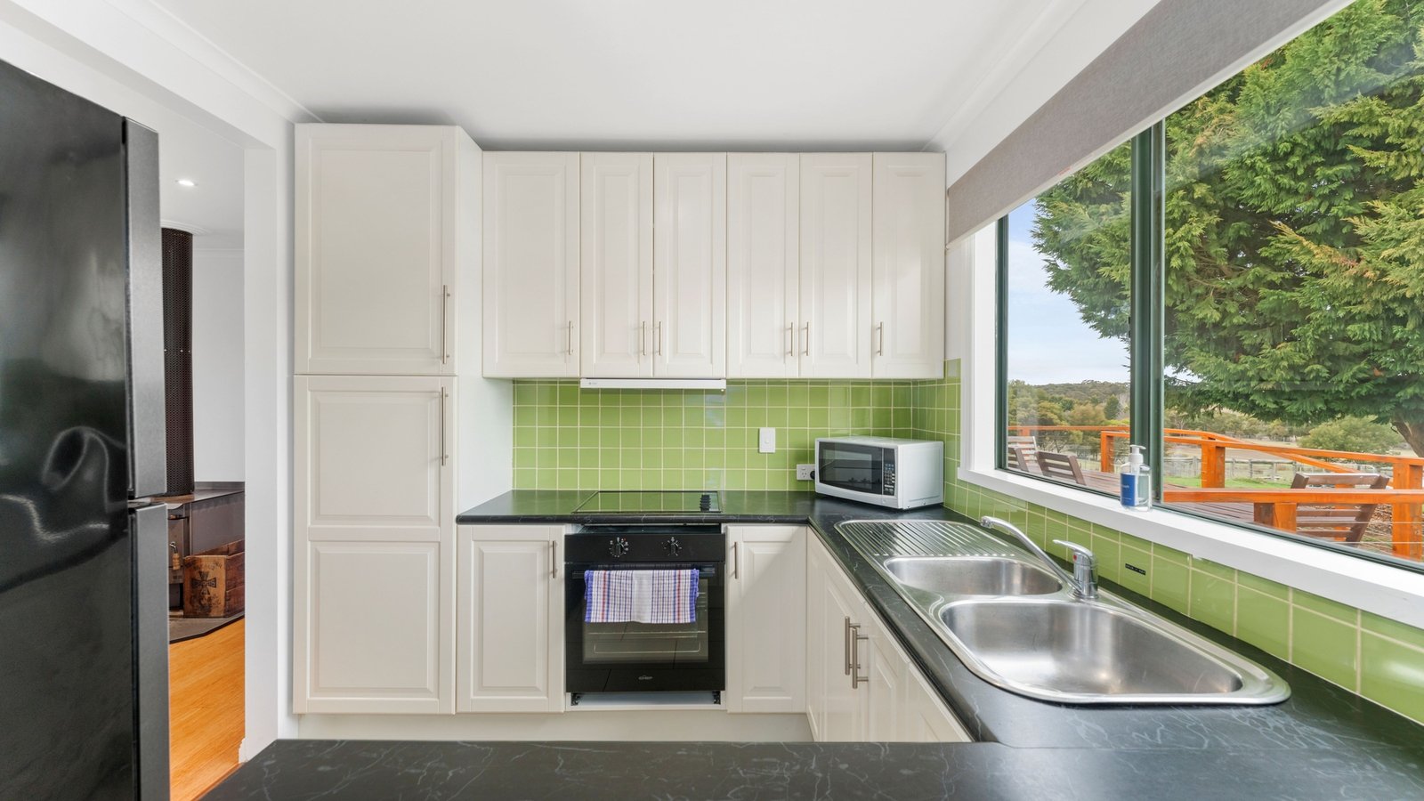 The heart of the home lies in the open plan living area warmed by a wood fire and a split system for year-round comfort. The kitchen features stunning views out to the surrounding paddocks and includes and electric oven stove and built in pantry.