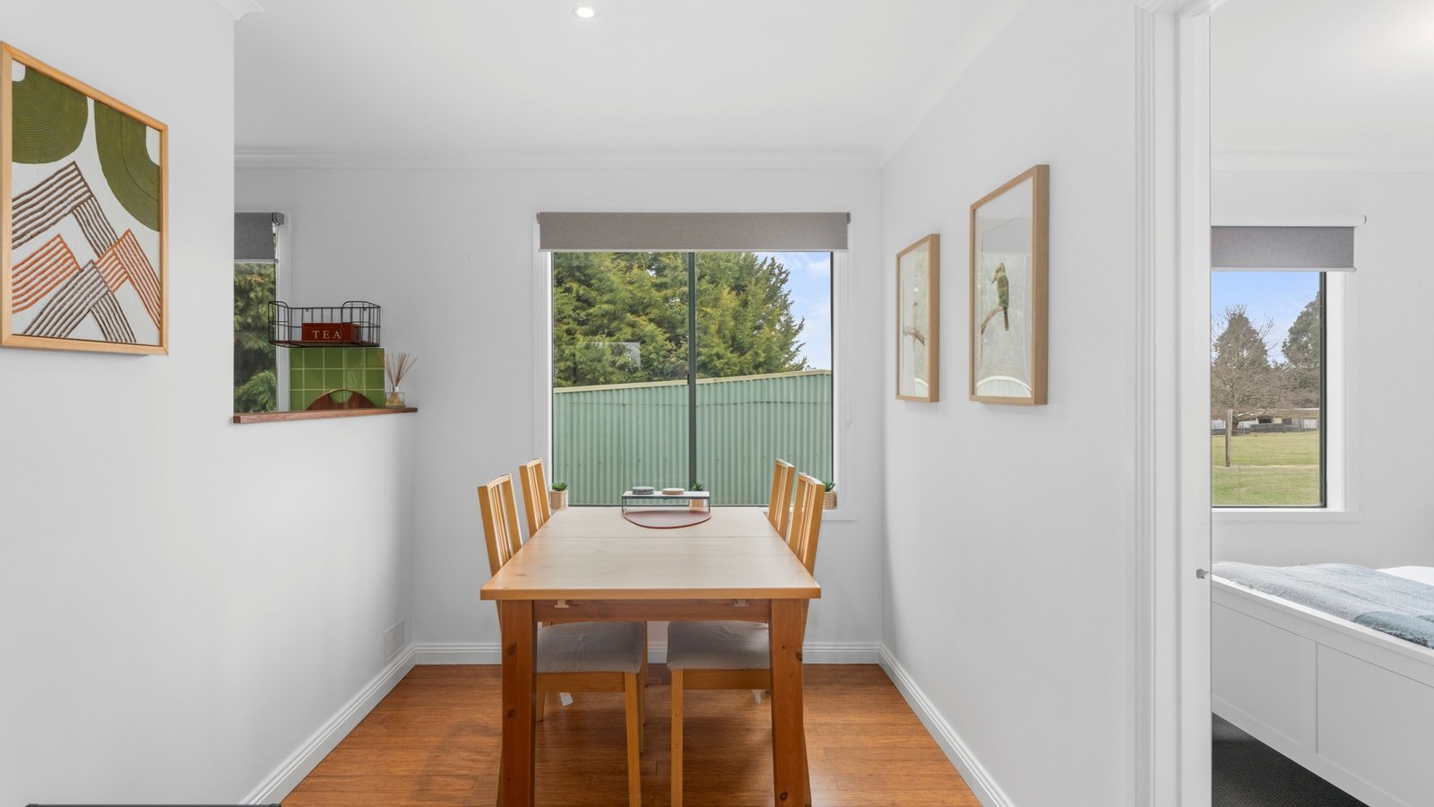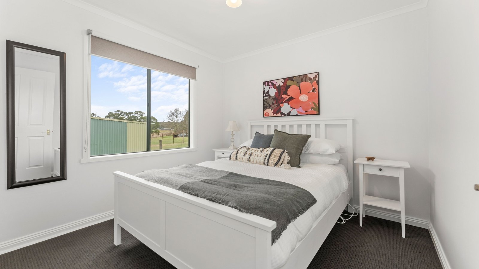 Set on approximately 5 acres, this lifestyle property offers space, practicality, and a peaceful country setting. The home features three comfortable bedrooms accompanied by a central family bathroom with a free-standing bath, shower and vanity.