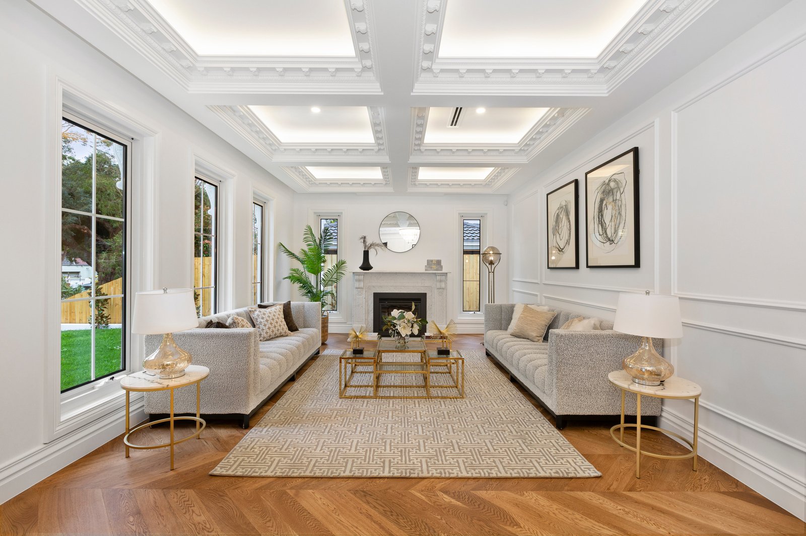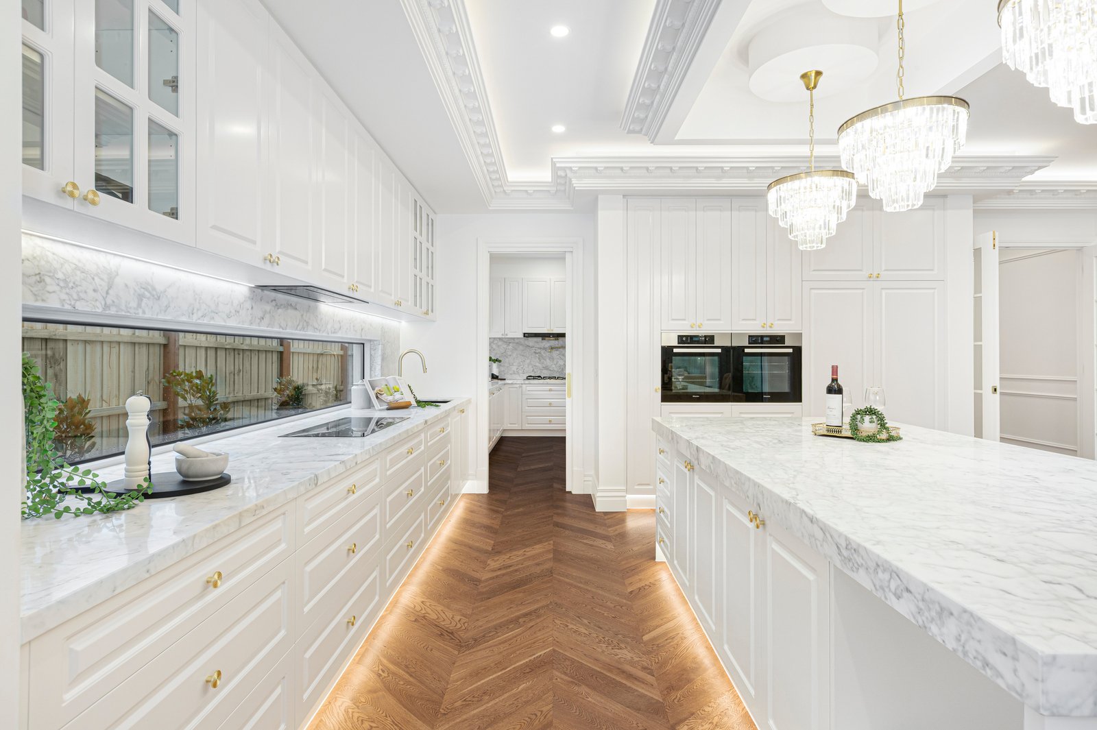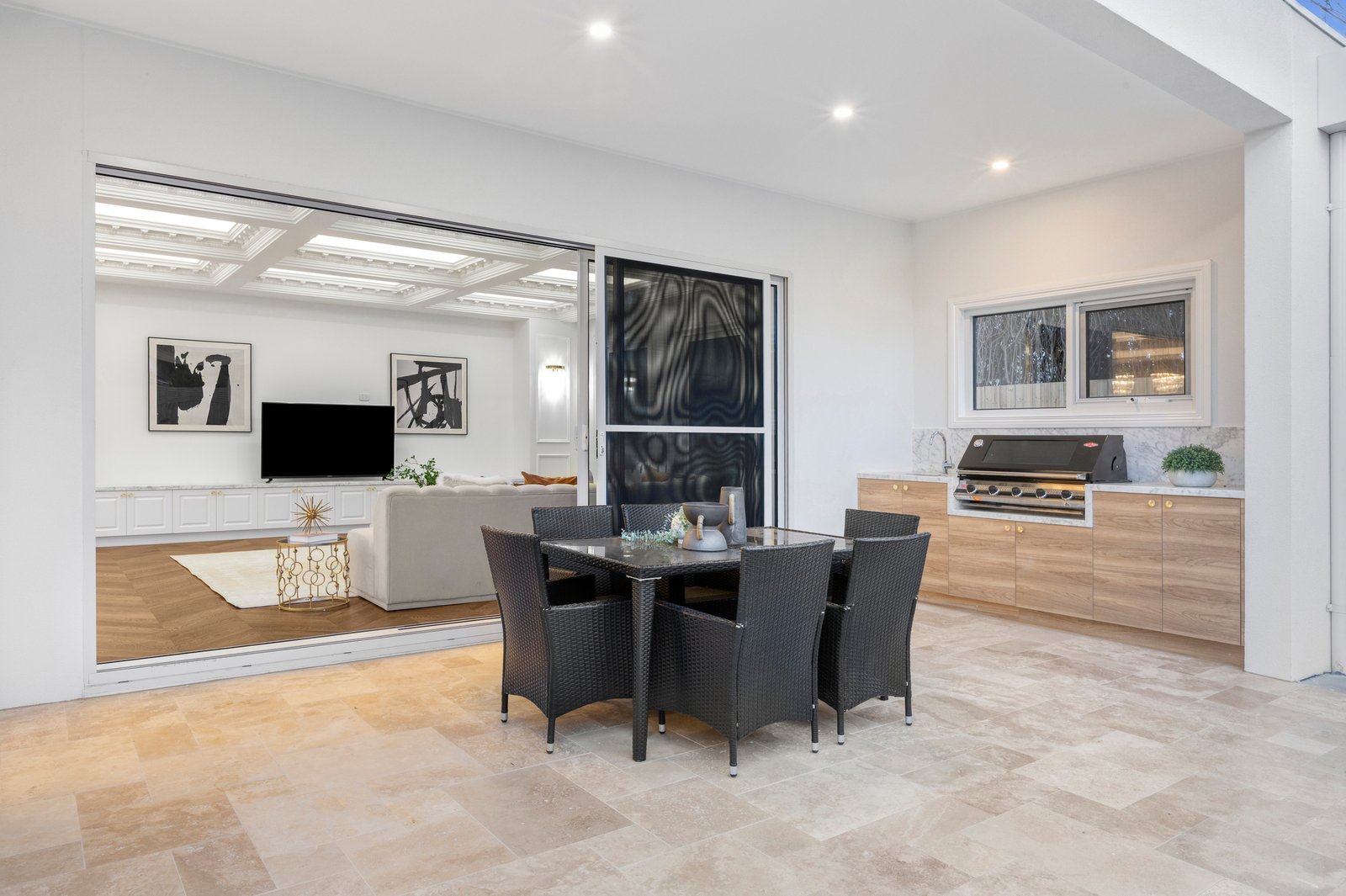 The decadent residence inspires with its dramatic coffered ceilings, ornate fixtures and gallery style living space, as a proud welcome to this coveted district in walking distance to Mount View Primary.