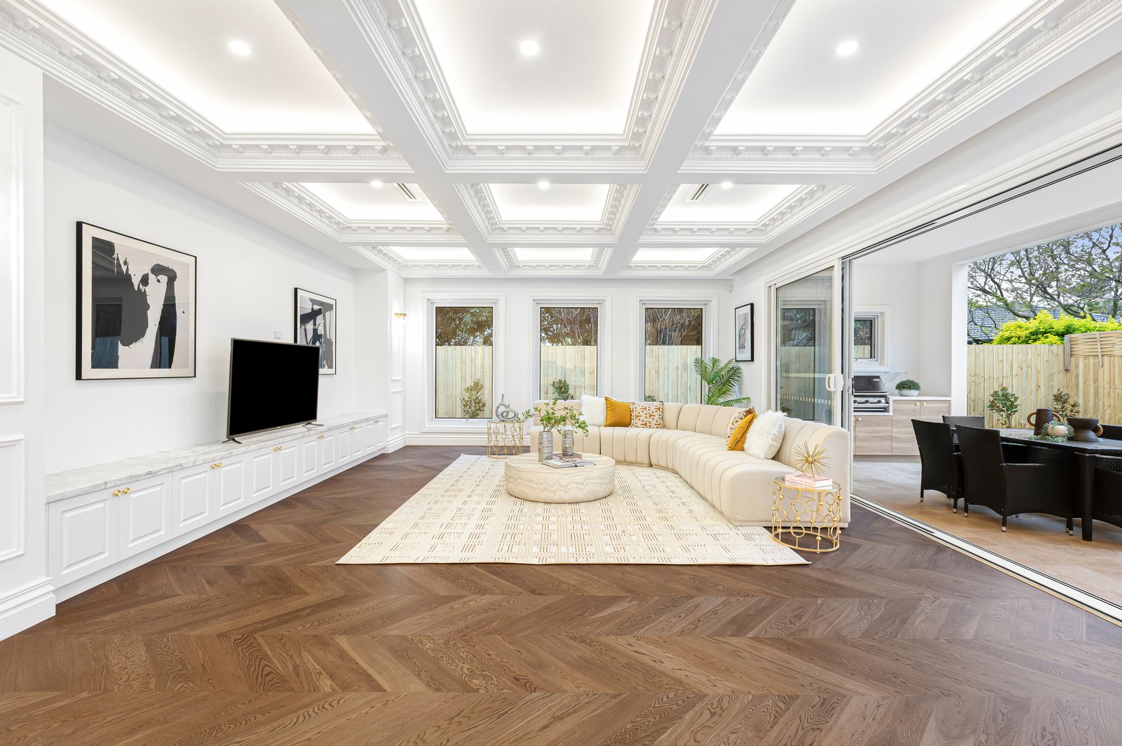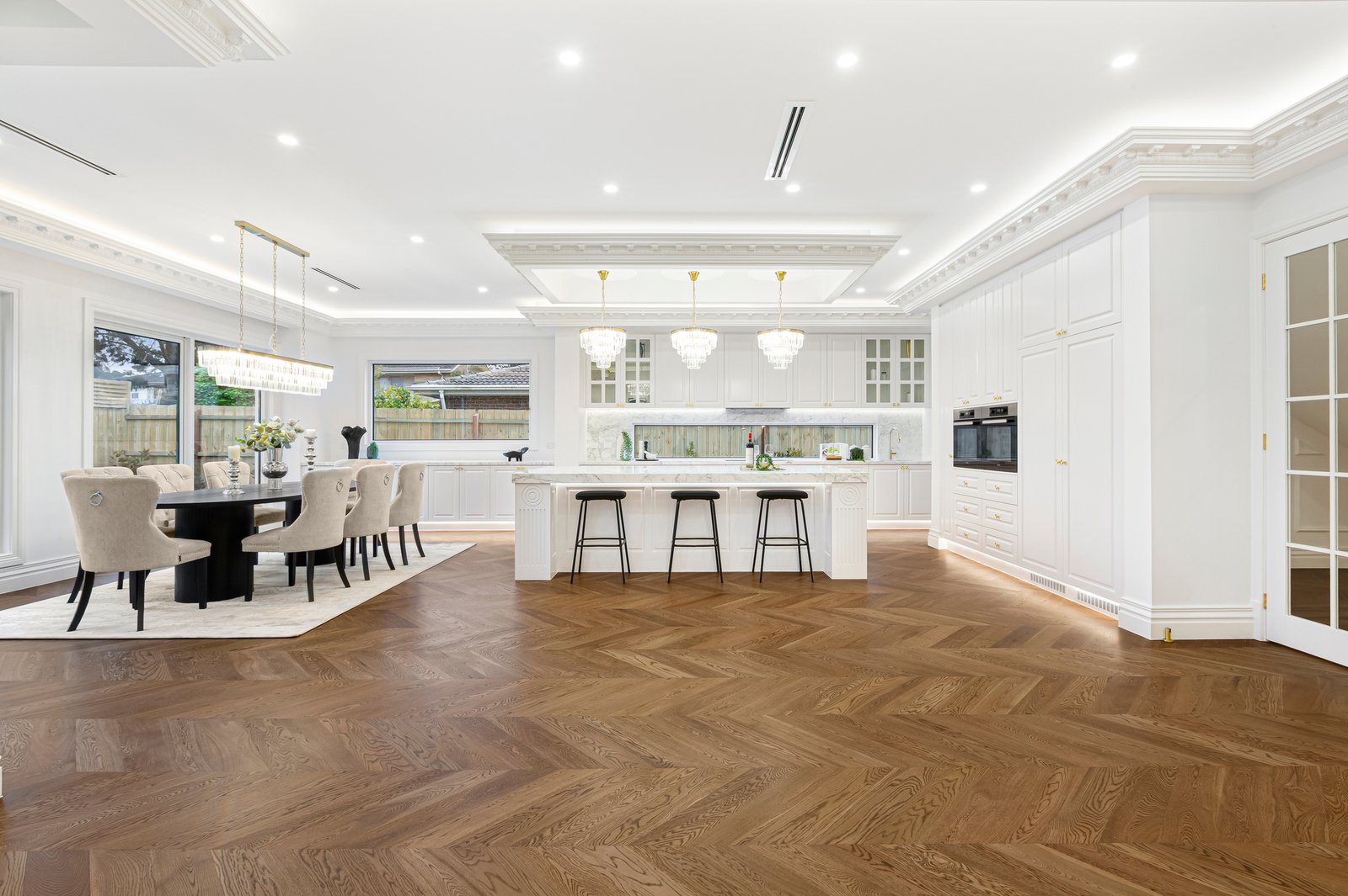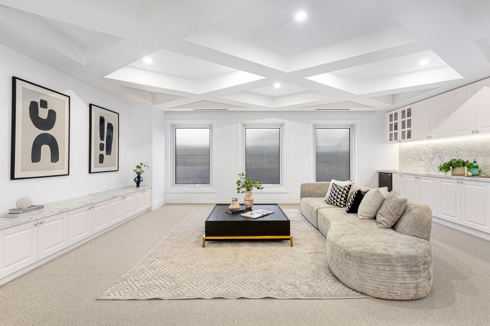 The decadent residence inspires with its dramatic coffered ceilings, ornate fixtures and gallery style living space, as a proud welcome to this coveted district in walking distance to Mount View Primary.