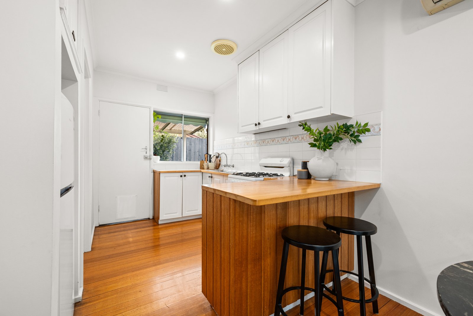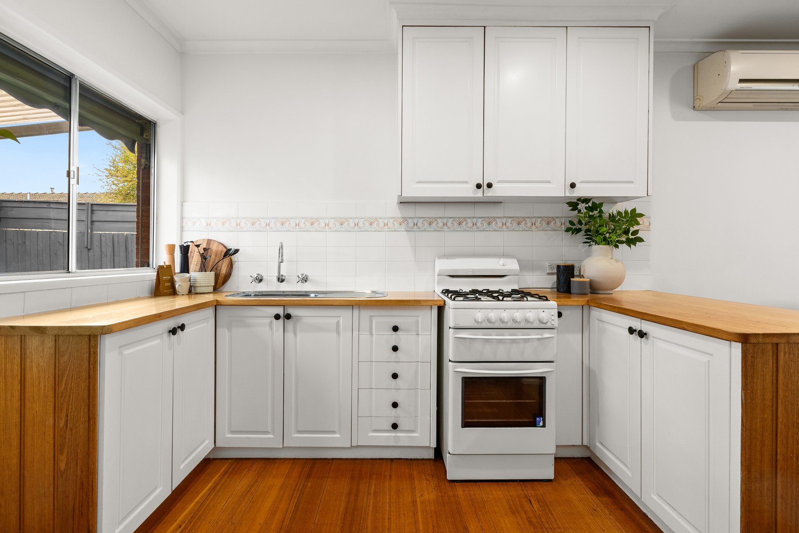 In a peaceful pocket of Mordialloc, close to parks and schools, the low maintenance home has been primed for immediate enjoyment. Impeccably presented with polished hardwood floors underfoot, it includes a welcoming lounge/dining area plus a contemporary kitchen with timber benchtops, gas cooking and country-style cabinetry with sleek ebony fixtures.