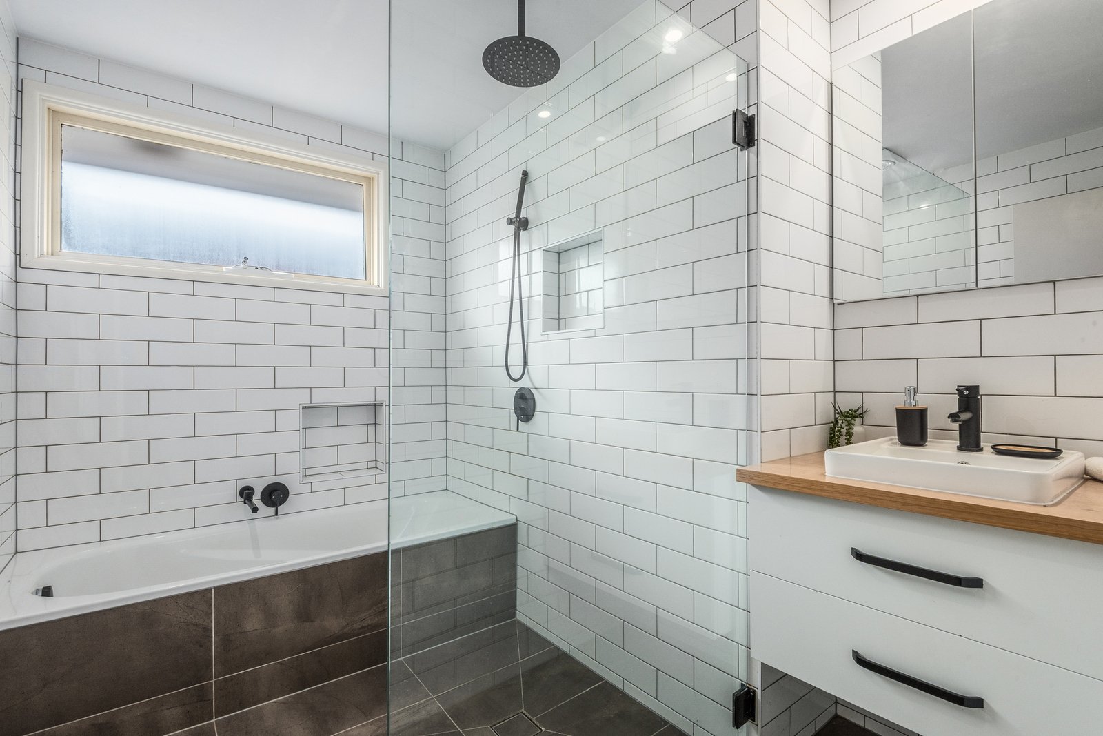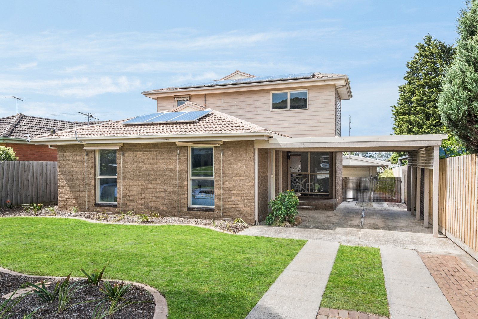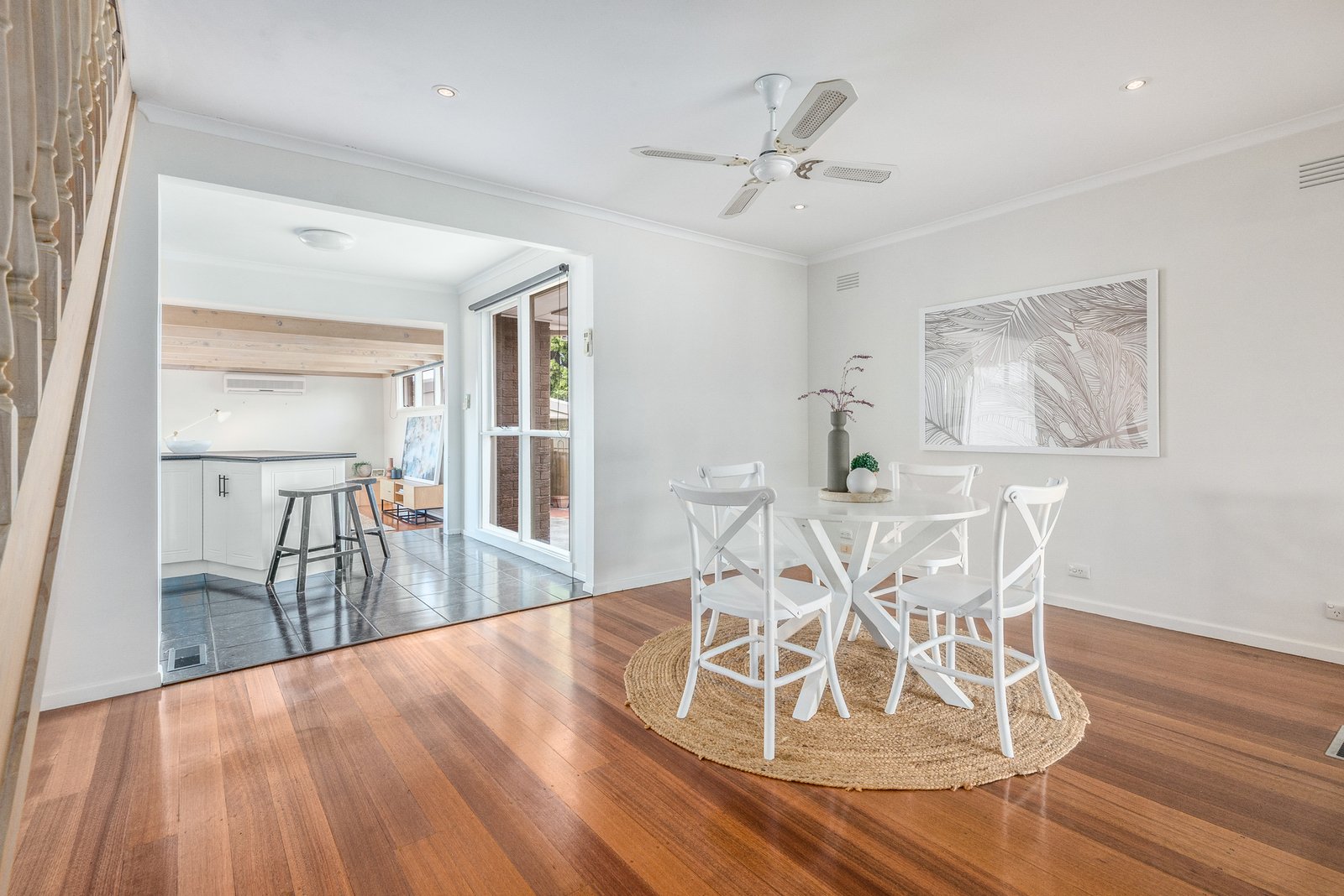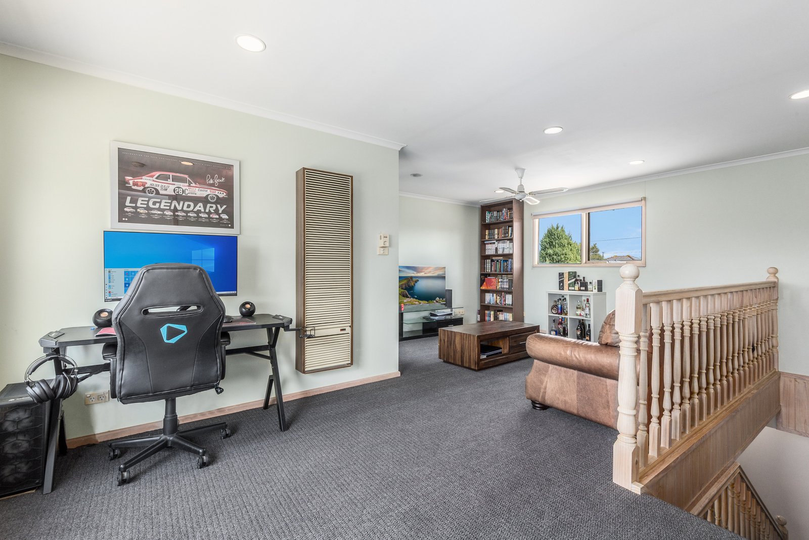 Comprising four bedrooms, the main suite is privately zoned upstairs, with a picturesque elevated outlook, walk-in robes and ensuite. A second living area and study nook on this level, offers a quiet space to retreat or work from home. Three additional bedrooms on the ground floor all include built-in robes, serviced by a tastefully updated bathroom, finished in floor to ceiling subway tiles, with bath, frameless walk-in shower, modern vanity, and stylish black tapware. A separate wc and large laundry with storage complete the well-functioning floorplan.