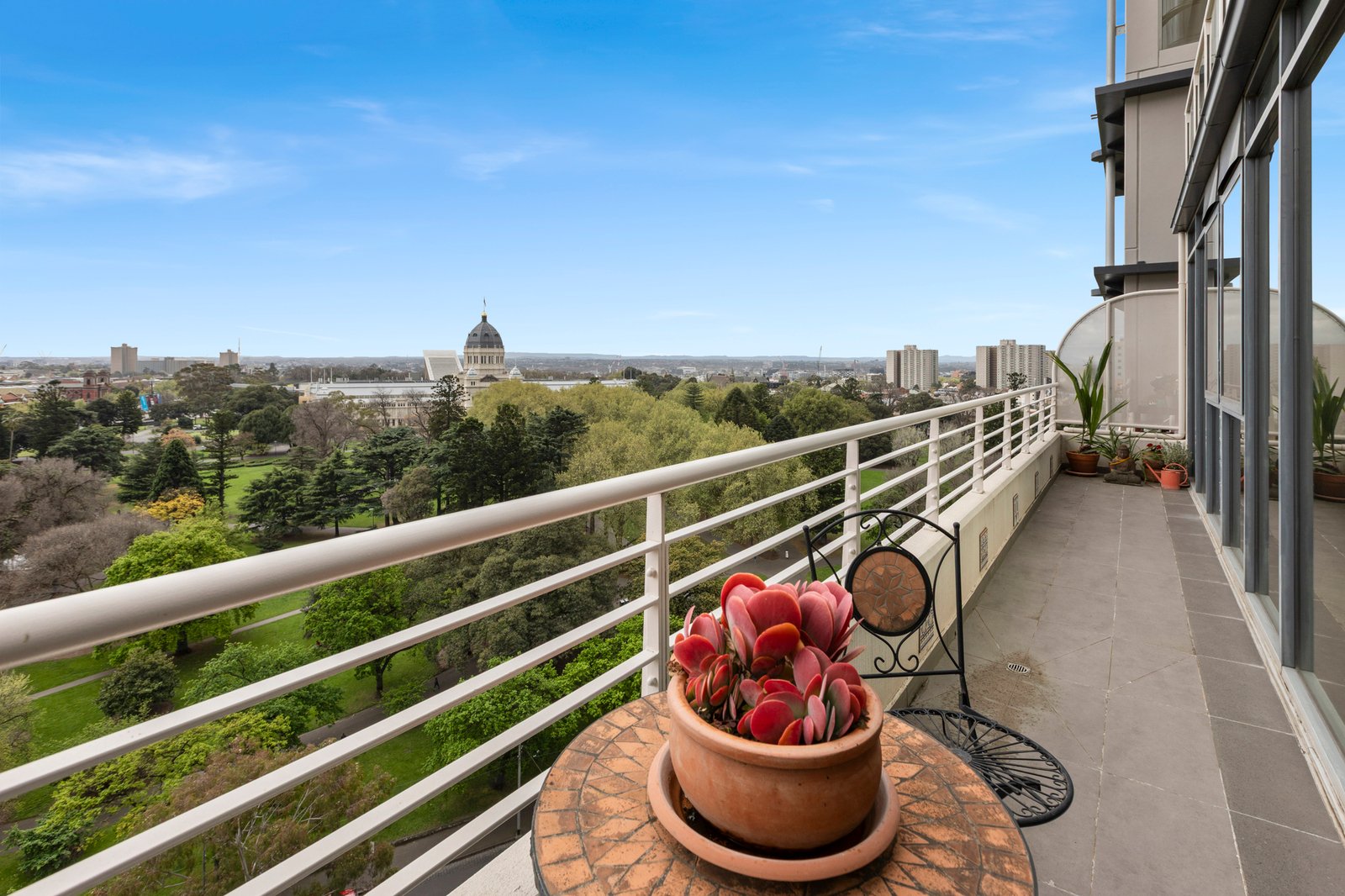 At the top-end of the city, just a stroll to the theatre district, this sub-penthouse floor apartment boasts possibly the best position for unobstructed 180-degree views. Casting an eye from cosmopolitan Lygon Street across the leafy gorgeousness of the Carlton Gardens and the Royal Exhibition Building to Collingwood in the distance, its appeal is elevated by a sensational sunny northerly aspect.