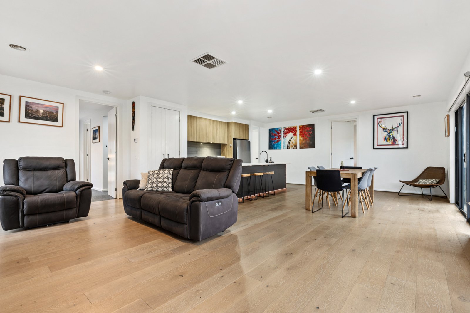 Step inside and discover a thoughtfully designed home that embraces modern living. The open-plan family, kitchen and dining area is the true heart of the home, featuring quality fittings throughout. The stylish kitchen is complete with stone benchtops, a dishwasher, and a central island bench that makes entertaining and family interaction a breeze. Natural light floods the north-facing living space, which flows seamlessly to the outdoor entertaining area – perfect for year-round enjoyment.