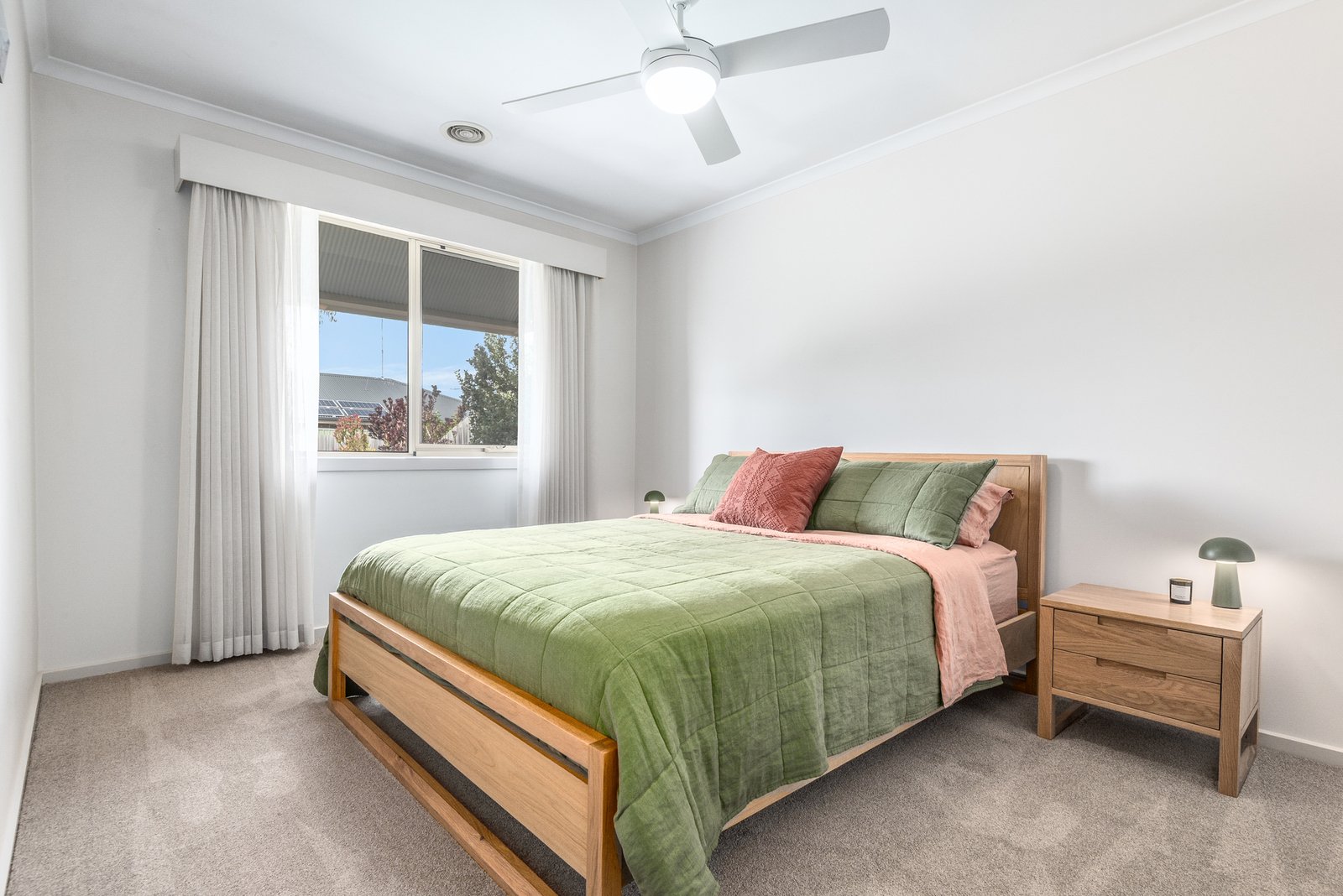Comprising three generous bedrooms, the main features walk-in robes, bedrooms two and three with built-in robes, all serviced by a bright central bathroom and separate wc. Equipped for comfort and functionality, additional features include ducted heating, ceiling fans, a well-appointed laundry with direct external access, and generous linen storage.