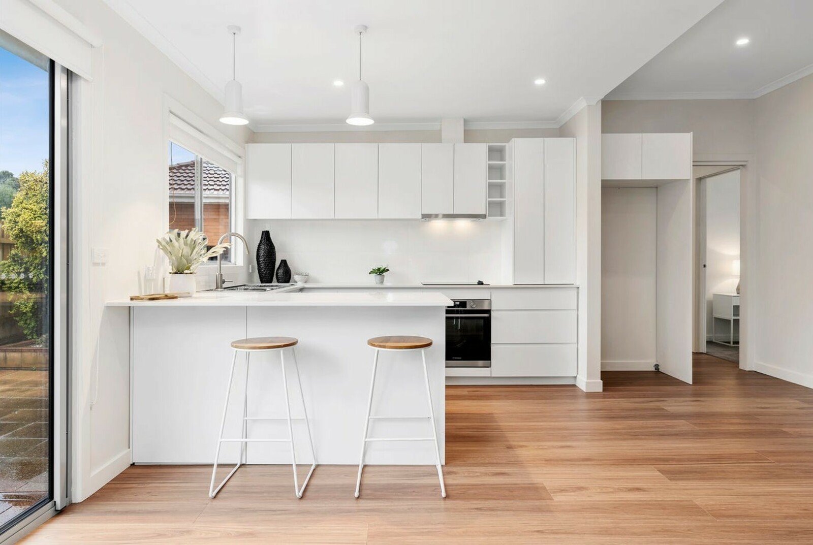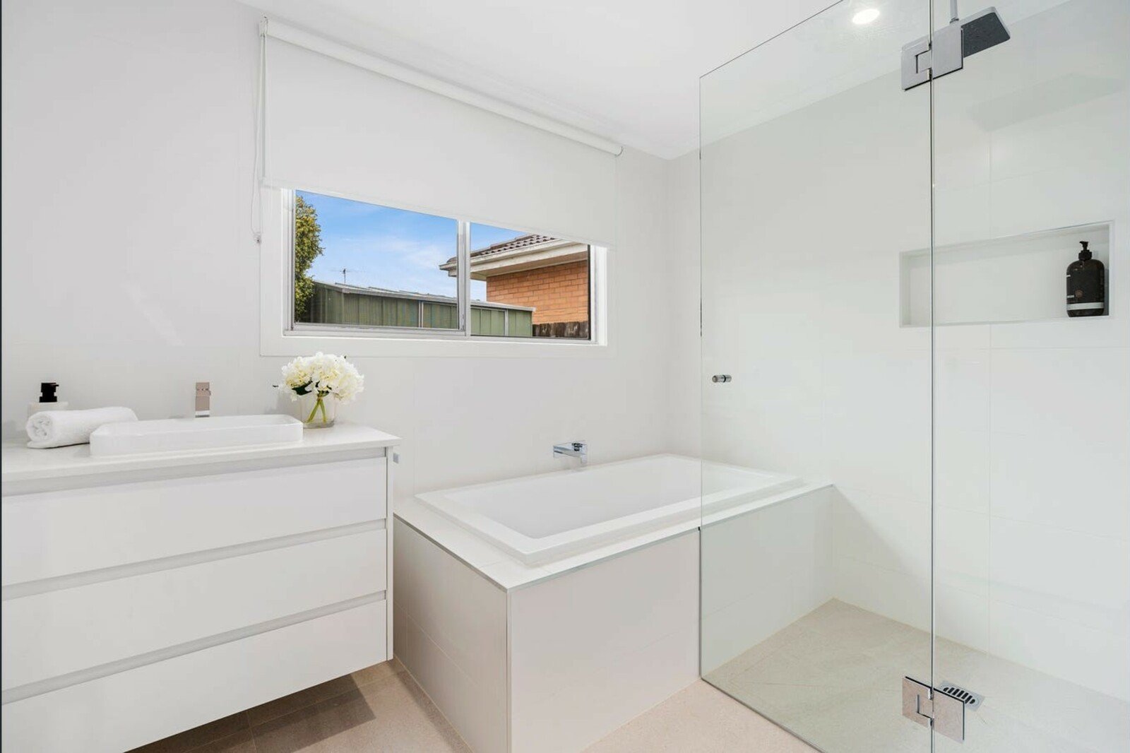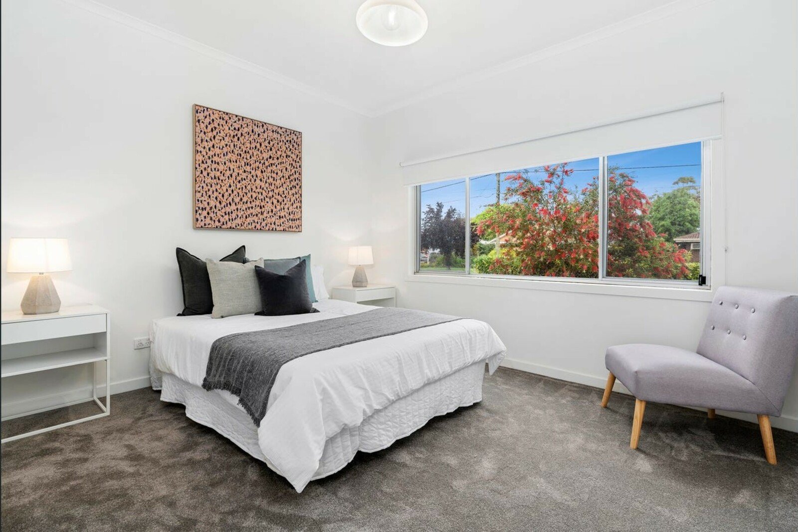 Step inside to find two spacious bedrooms, both featuring built-in robes, and a stylish central bathroom complete with stone benchtops, a bath, shower, single vanity, and separate toilet.