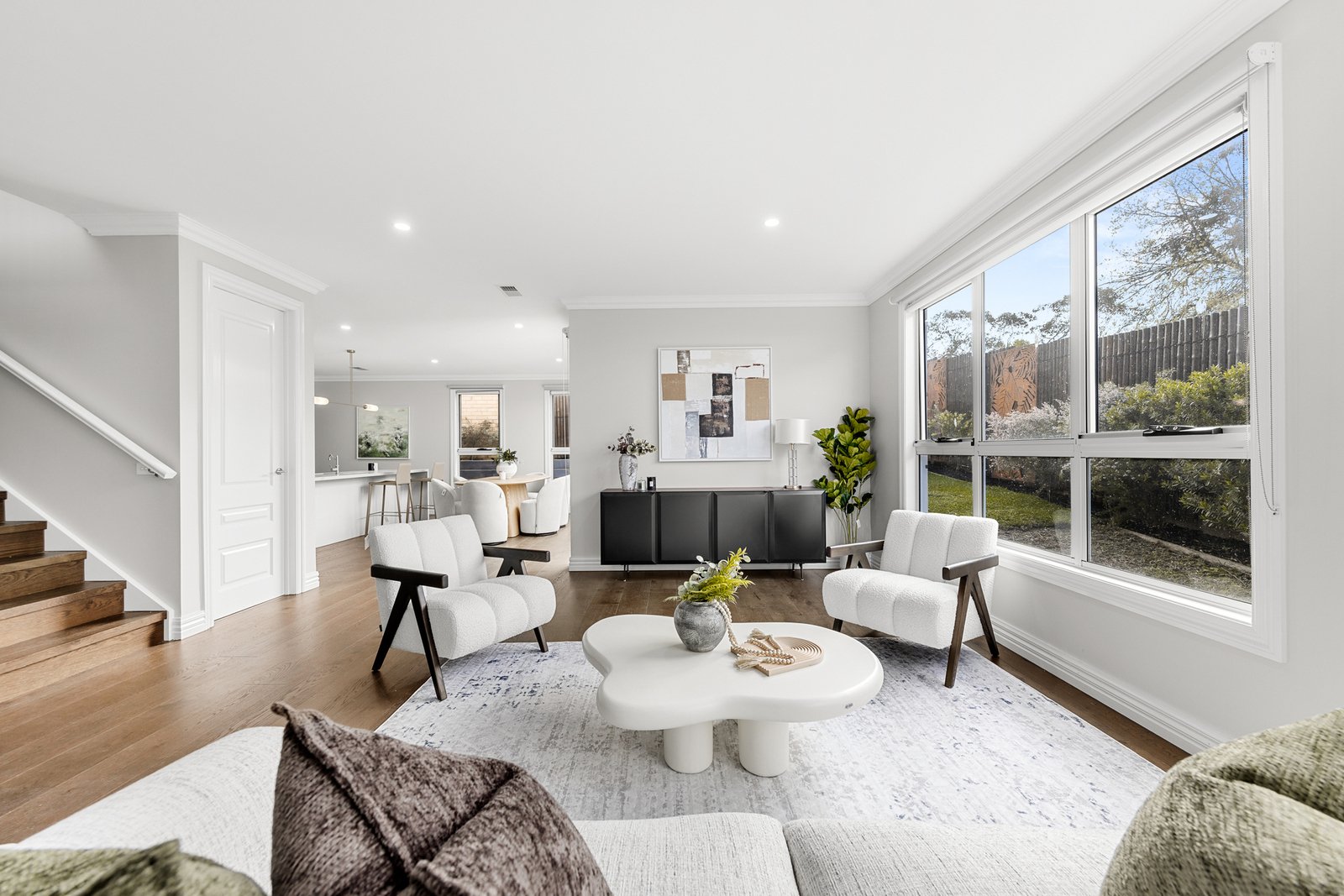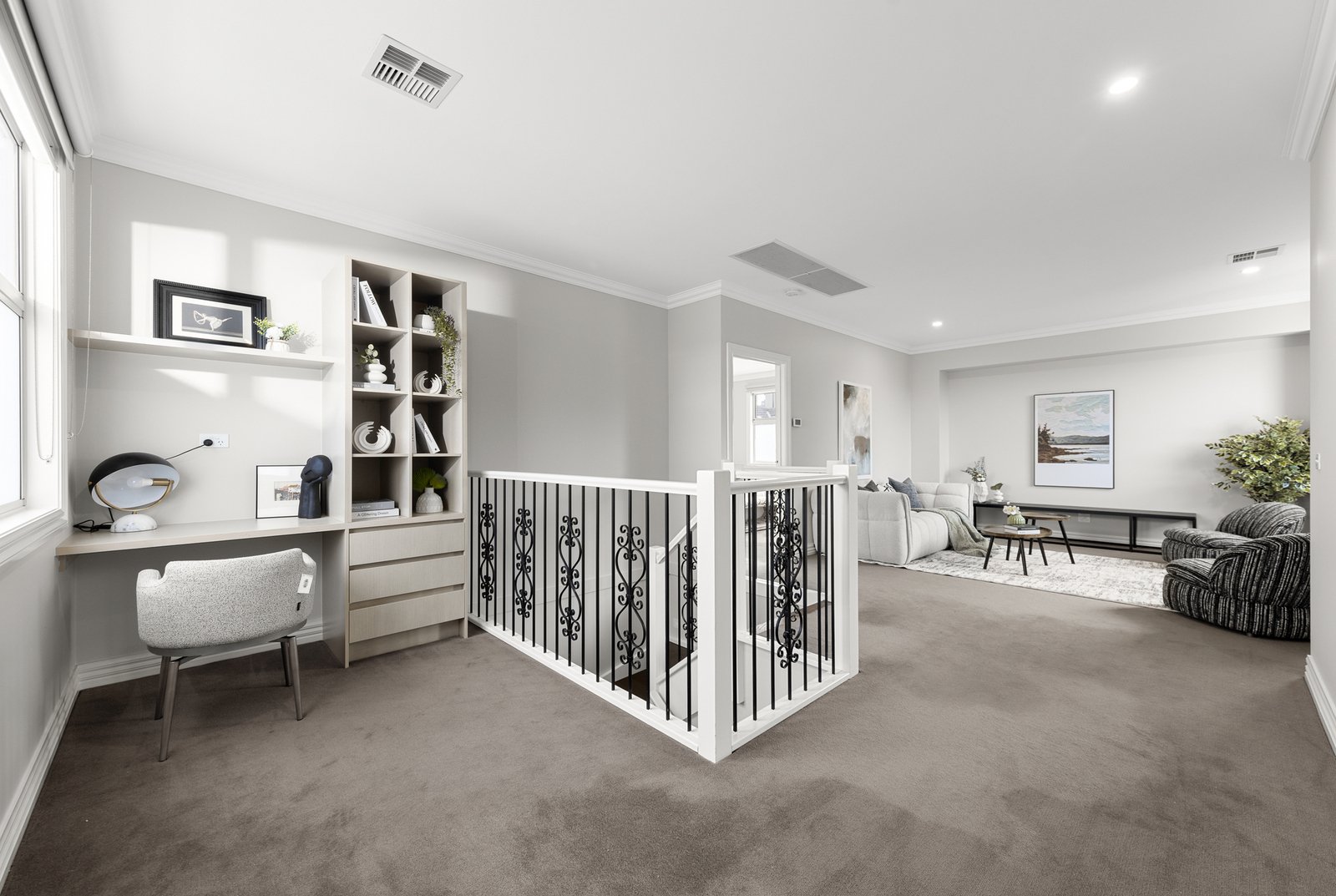 Downstairs, you’ll find a large separate living area and a master bedroom with ensuite, ideal for multigenerational living. Upstairs offers an additional rumpus room, study area, and a second master bedroom, plus two further bedrooms — providing ample space for the whole family.