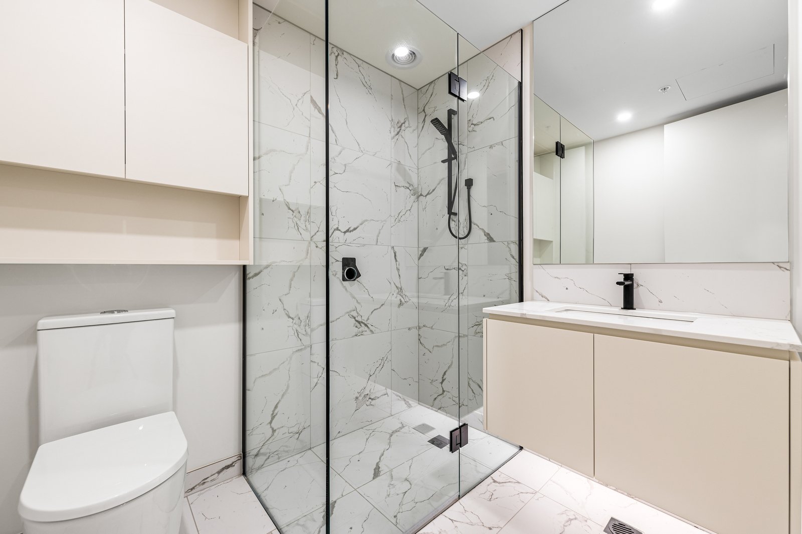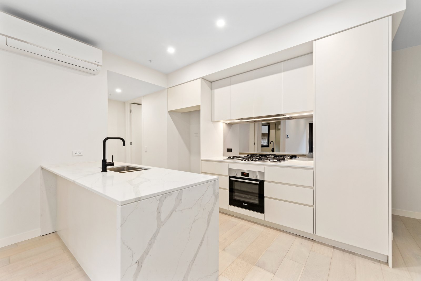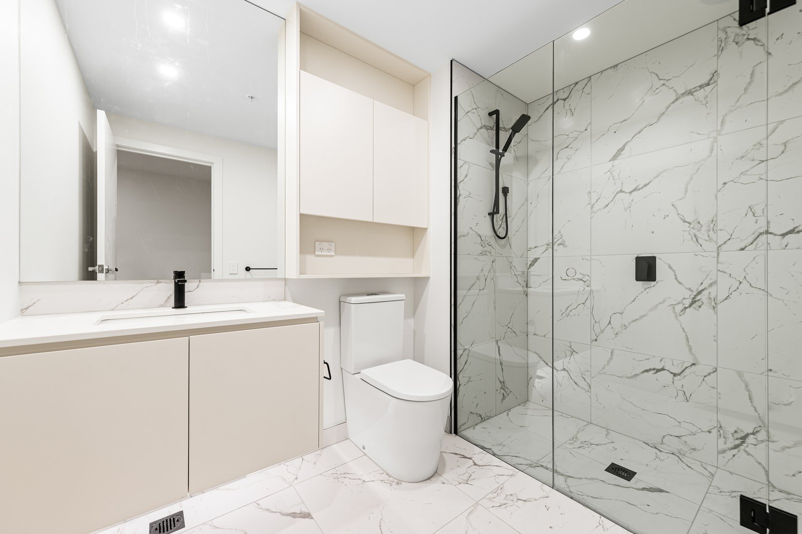The well-proportioned, light-filled bedrooms are adorned with floorboards, with one on the ground floor that’s serviced by a luxuriously tiled ground-floor bathroom; the remaining upstairs bedrooms are serviced by an additional central bathroom with a soothing bath. The master bedroom boasts a mirrored built-in robe and ensuite with the same quality finishes. To ensure the utmost peace of mind and comfort, the home has multiple split-system heating and cooling units, a study nook, a laundry, ample storage solutions, intercom access, a balcony, and two private car spaces.