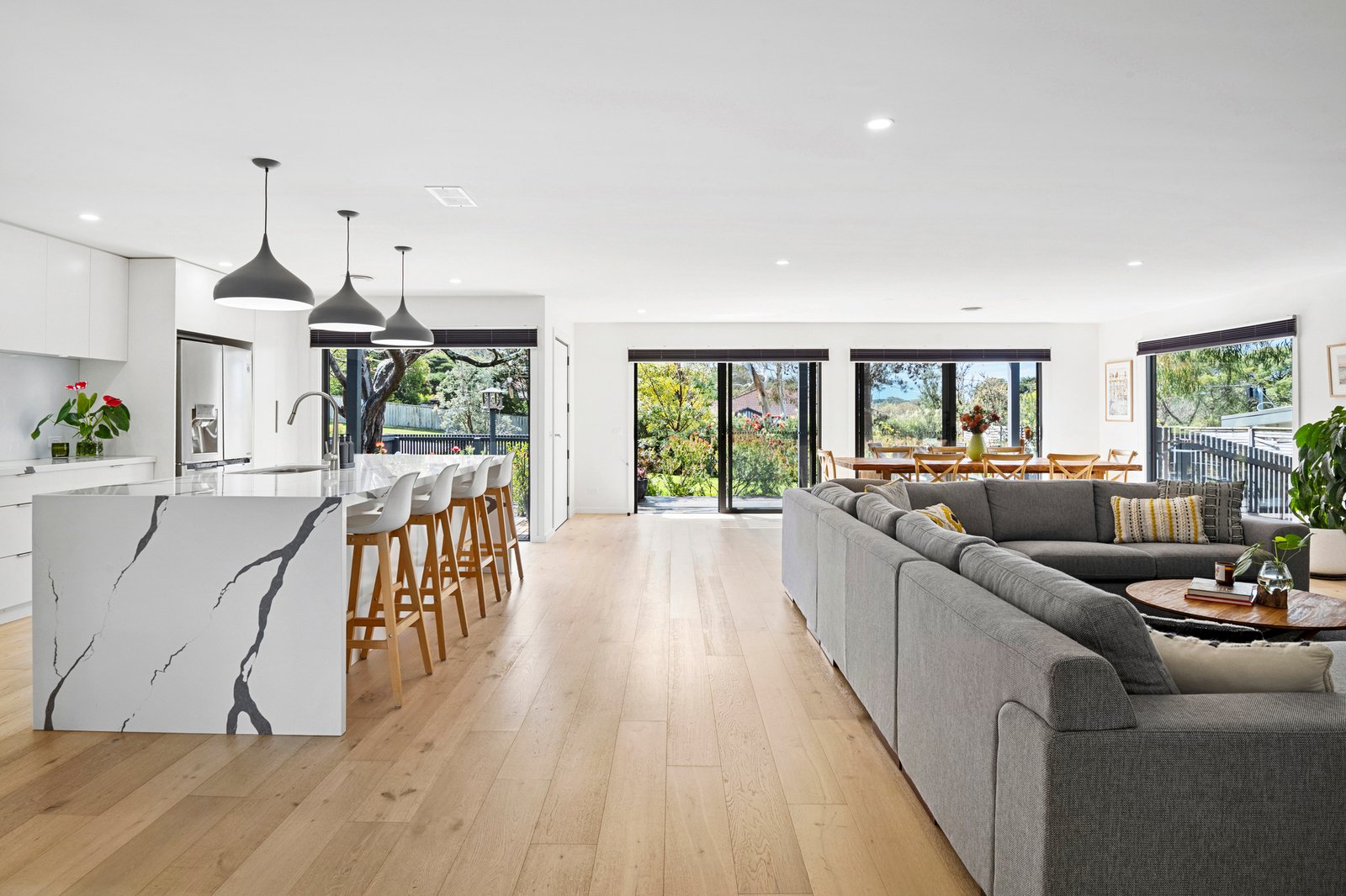 Shaped by its immaculate setting and distinguished grey-clad facade, this fully reimagined single-level residence exemplifies modern family luxury, where scale, craftsmanship and thoughtful appointments create a seamless balance between everyday comfort and sophisticated entertaining, while also affording the simplicity of a lock-up-and-leave lifestyle.