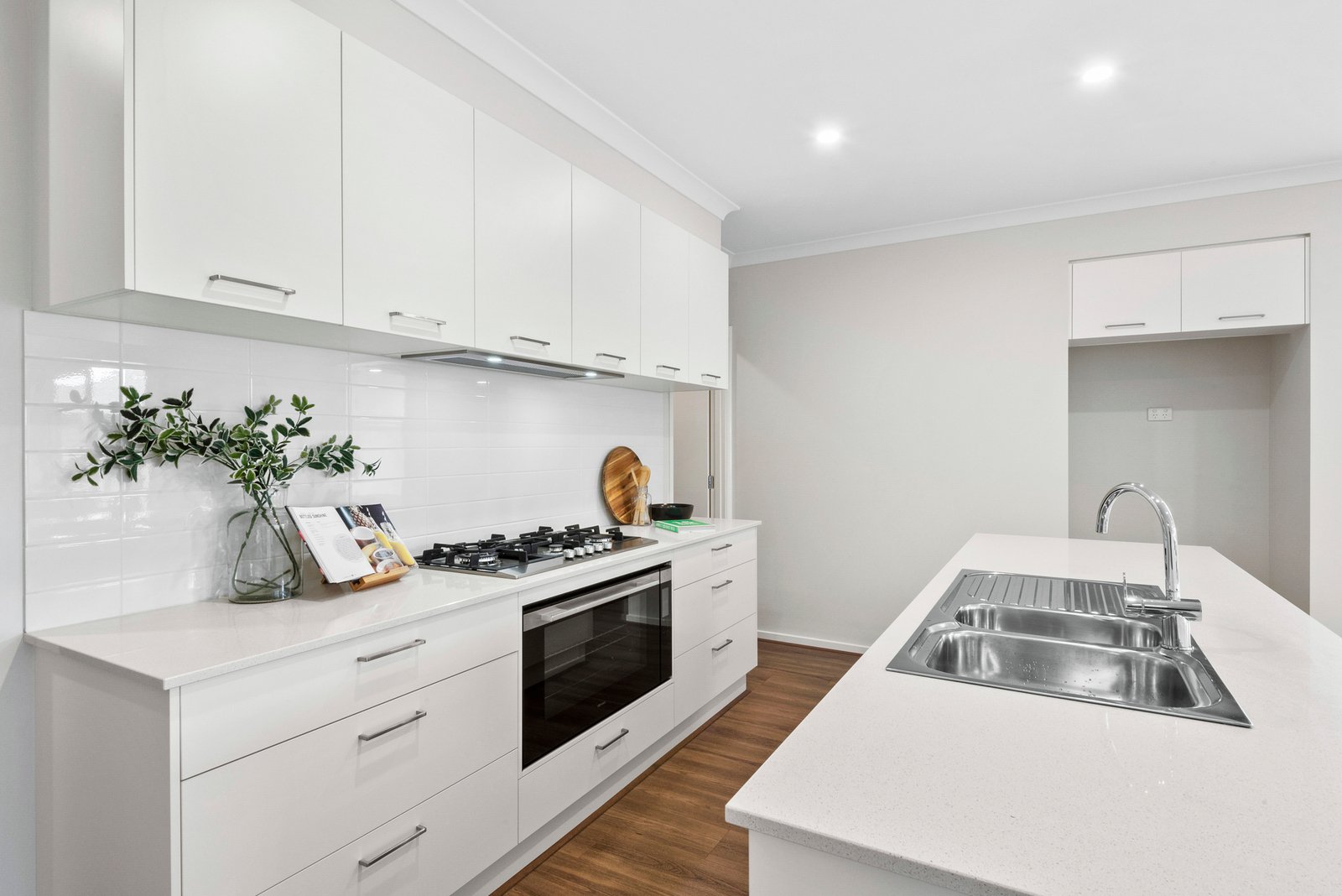 The heart of the home is a welcoming open plan kitchen, dining and living area anchored by a stylish kitchen with a generous island bench, stone benchtops, quality appliances including a 900mm oven, gas cooktop, dishwasher, and a spacious walk-in pantry. The adjoining dining and living areas flow seamlessly to the undercover alfresco, delivering the perfect setup for relaxed indoor-outdoor living. Comfort is assured year-round with ducted heating, plus split system heating and cooling.