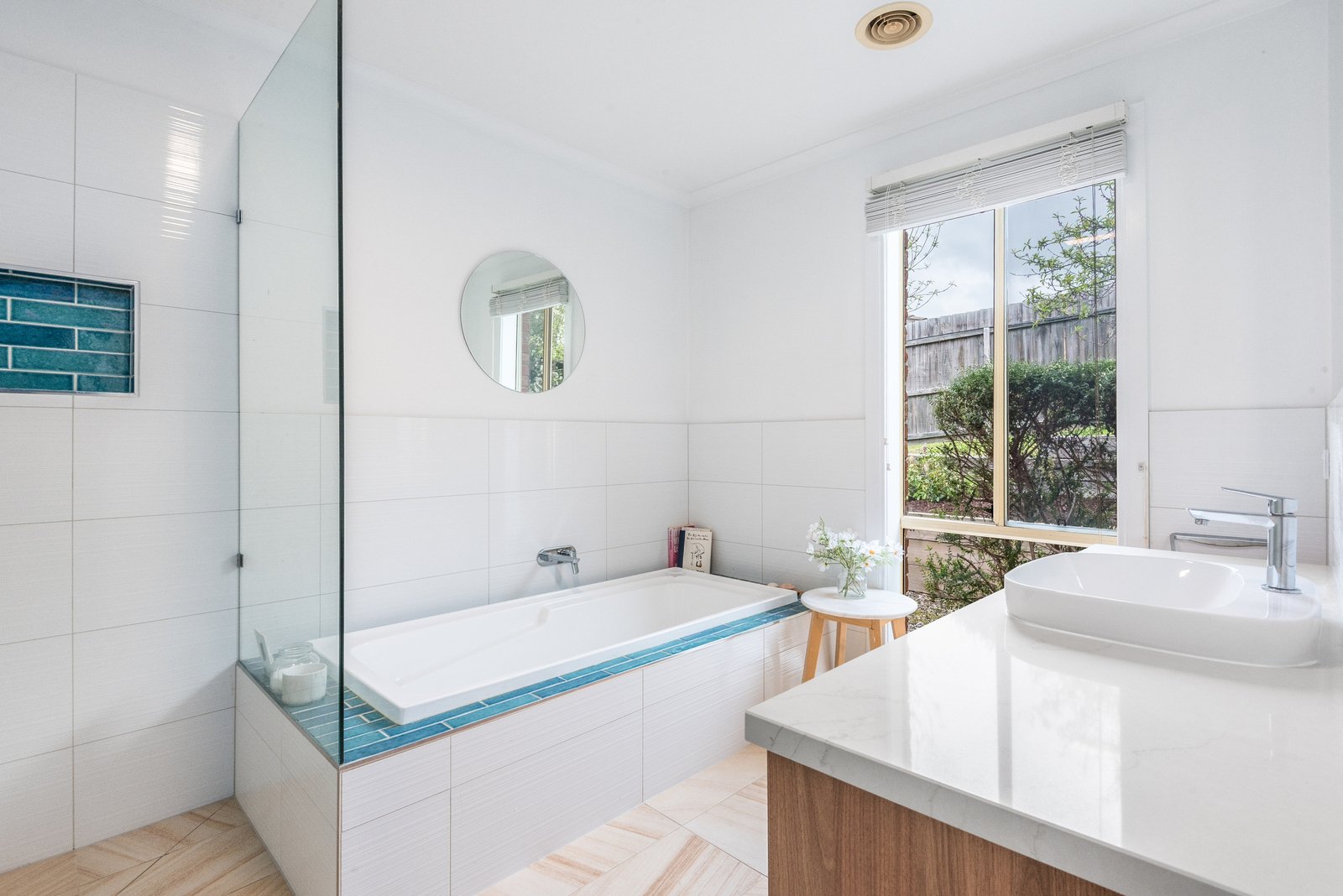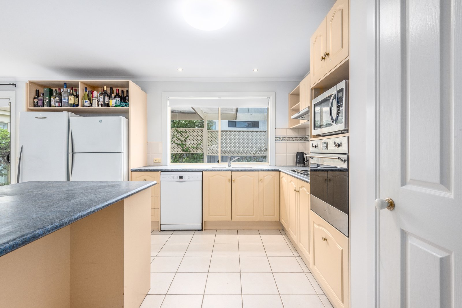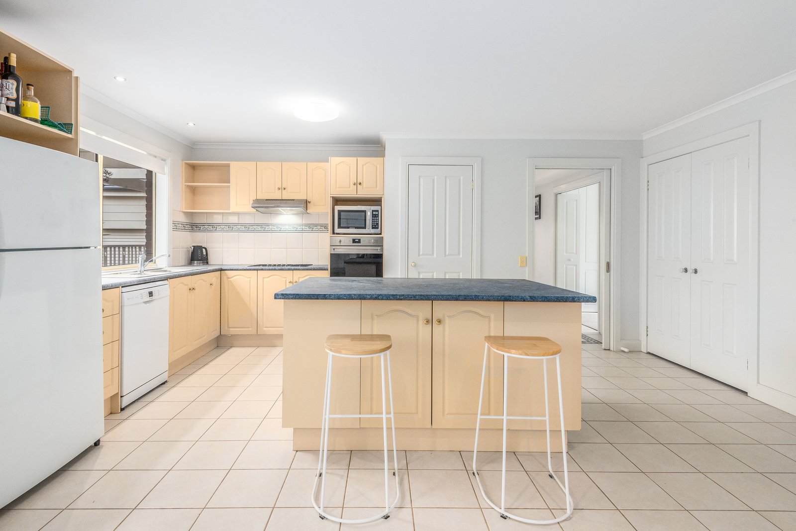 Nestled behind a picket fence and established gardens, the home is timeless in appeal. Inside, a wide entry hall showcases recessed ceilings, downlights, and elegant floor tiles, introducing the classic theme of the interiors. A spacious formal lounge off the entry features a beautiful bay window with a picturesque vista, pendant lighting, and light neural interiors, offering a sophisticated space to retreat. To the rear, an expansive open plan kitchen, dining and living area wraps around the north facing pergola, designed for light-filled everyday living and effortless indoor-outdoor entertaining. The well-appointed kitchen is equipped with quality appliances including 600mm wall oven, 900mm gas cooktop, dishwasher, a central island, ample bench space and generous storage provisions.
