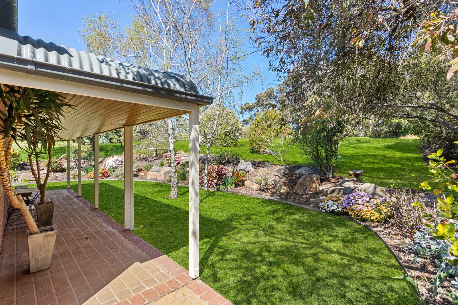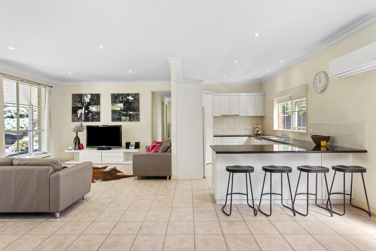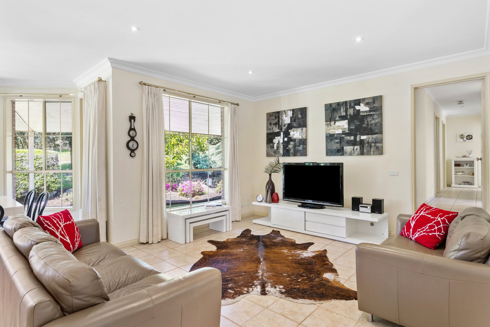 Designed with spaciousness and function in mind, the home includes four generous bedrooms, each with built-in robes and ceiling fans, arranged across a zoned floor plan for optimal privacy. The master suite boasts a walk-in robe and private ensuite, offering tranquil garden views, while the main bathroom features a full-sized bath and is bathed in natural light. A central kitchen with electric cooking and tiled floors flows throughout the home, adding to its practical appeal.