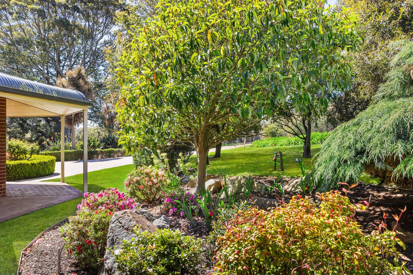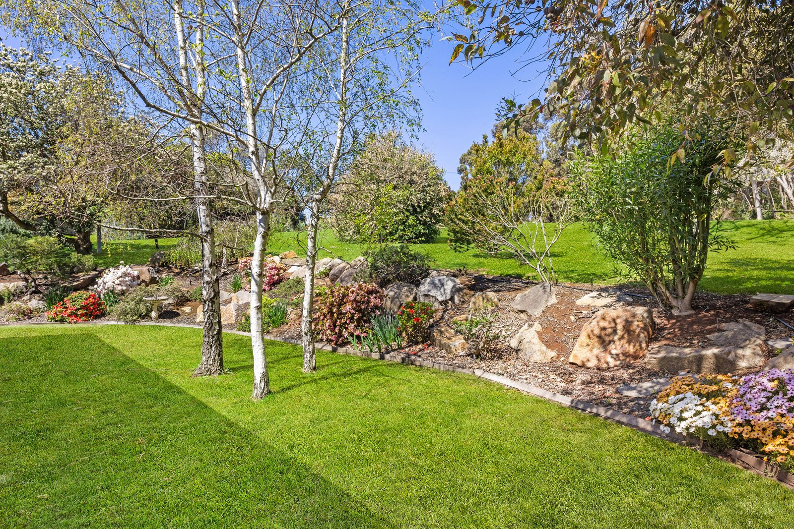 Surrounded by beautifully landscaped, established gardens, the property features vibrant flower beds and lush greenery, creating a serene, low-maintenance oasis.
