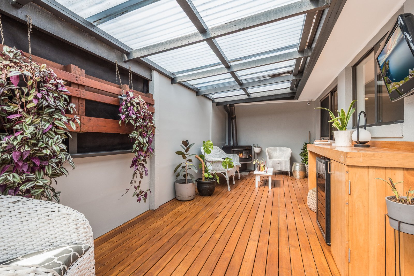Outside, the enclosed alfresco features a woodfire heater, built-in bench and vertical garden, providing a secluded space to relax or entertain all year round. The deck extends out to a north facing courtyard, adjoining the luxurious pool area with ample space for poolside lounging on a sunny day. A lawn area at the rear offers a secure space for the kids or pets to play, with a shed for outdoor storage. The garage includes direct access to the backyard, and driveway space accommodates excellent off-street parking.