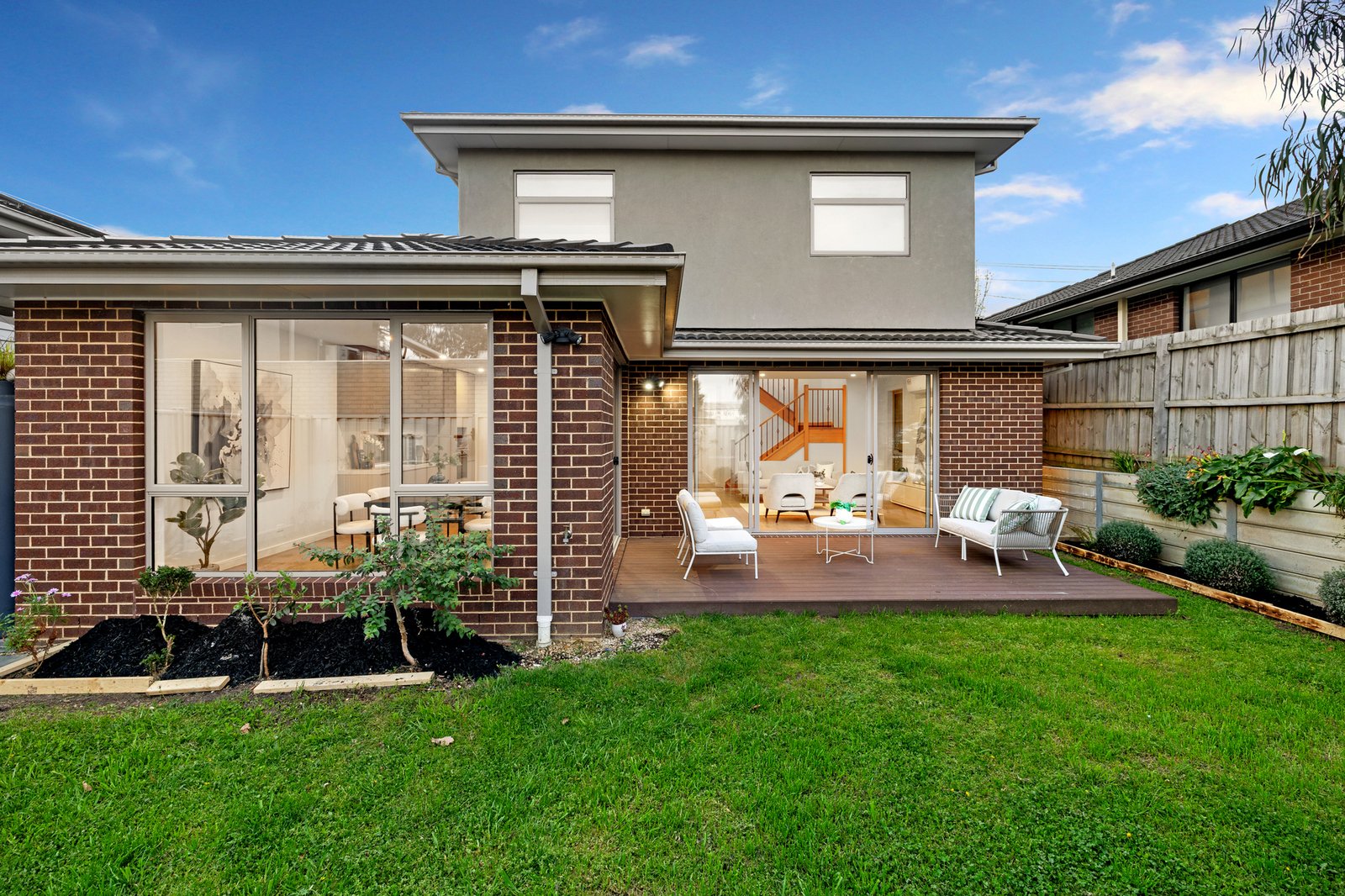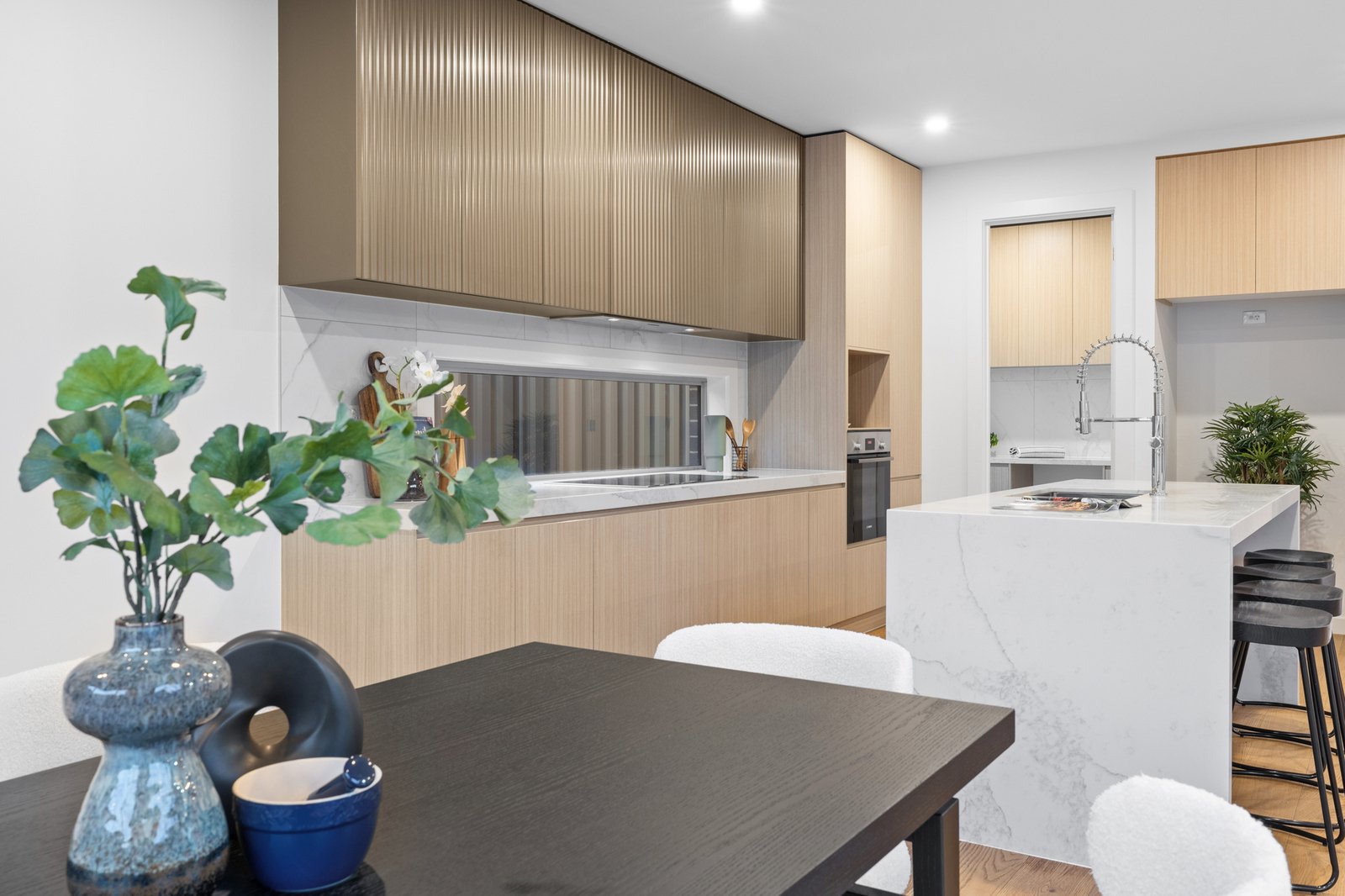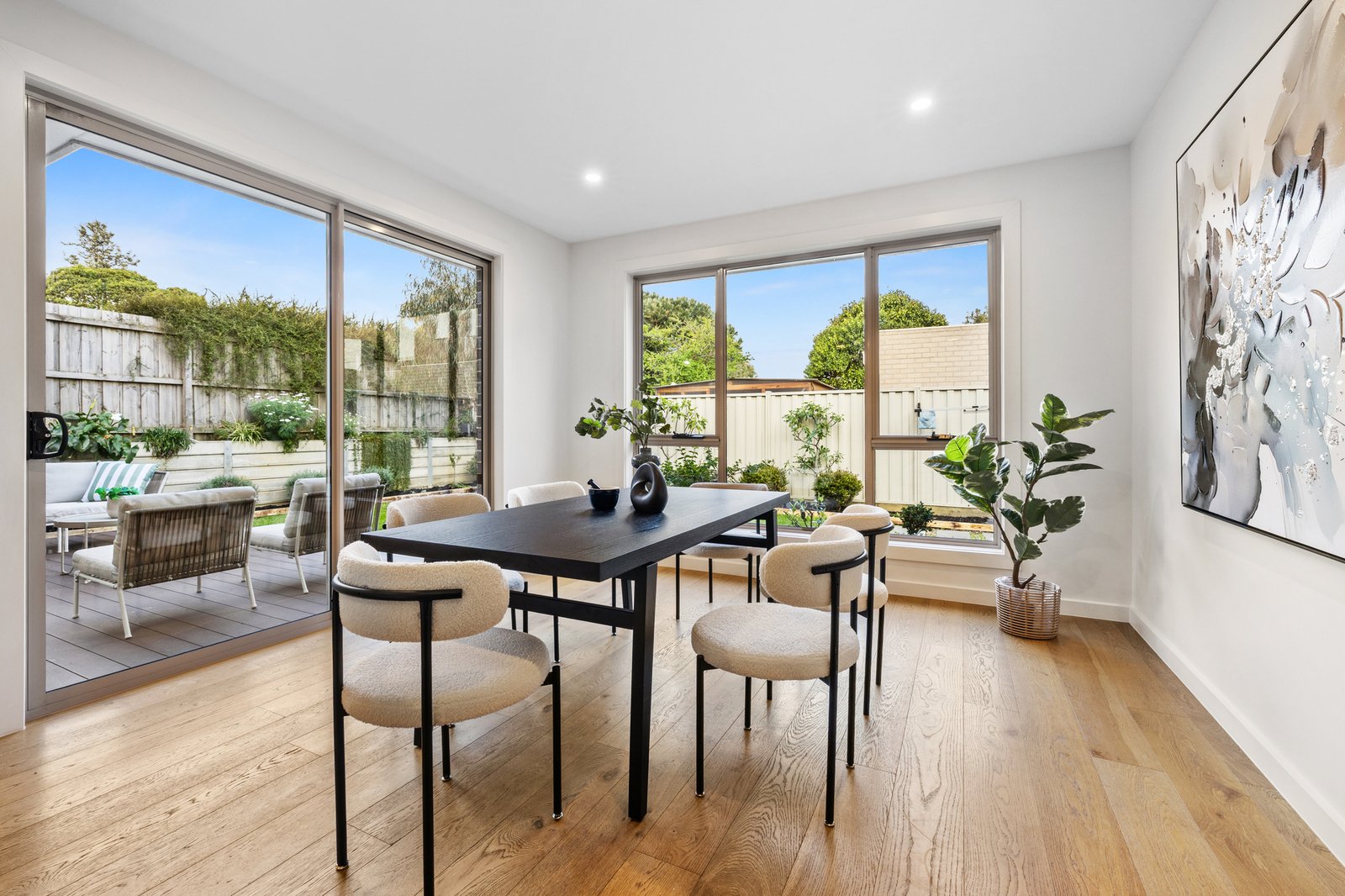 Step inside to discover a refined interior where high-end fixtures and abundant natural light create an atmosphere of sophisticated comfort. The stunning kitchen serves as the heart of the home, featuring a practical gas-powered butler's pantry and flowing seamlessly into the open-plan living and dining area. This inviting space opens effortlessly through sliding doors to a private decked courtyard—perfect for entertaining or quiet relaxation.