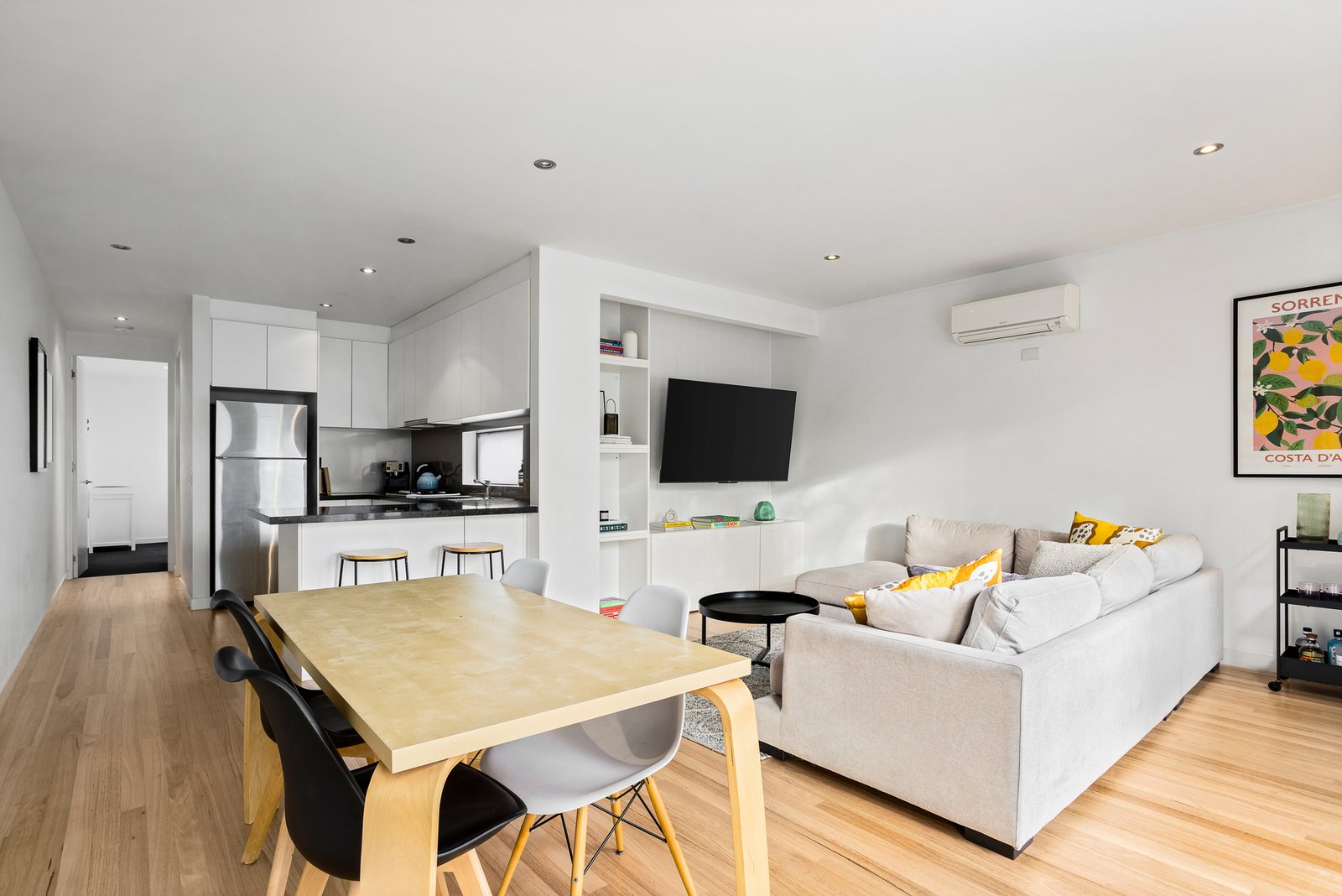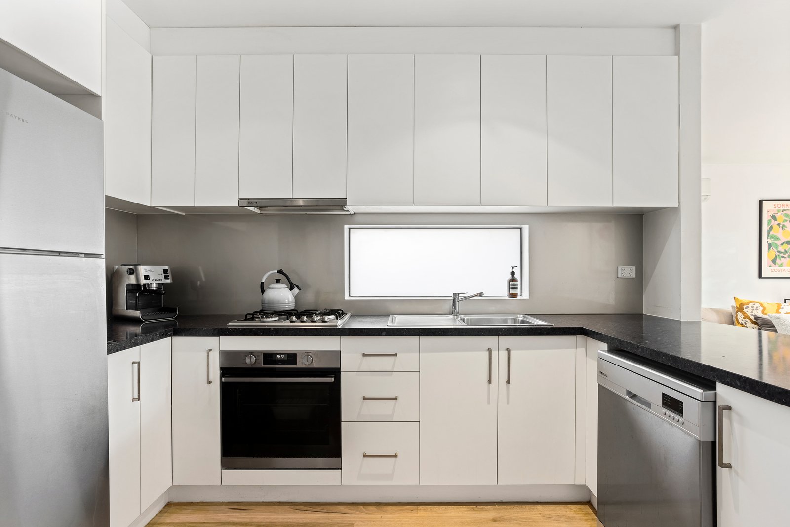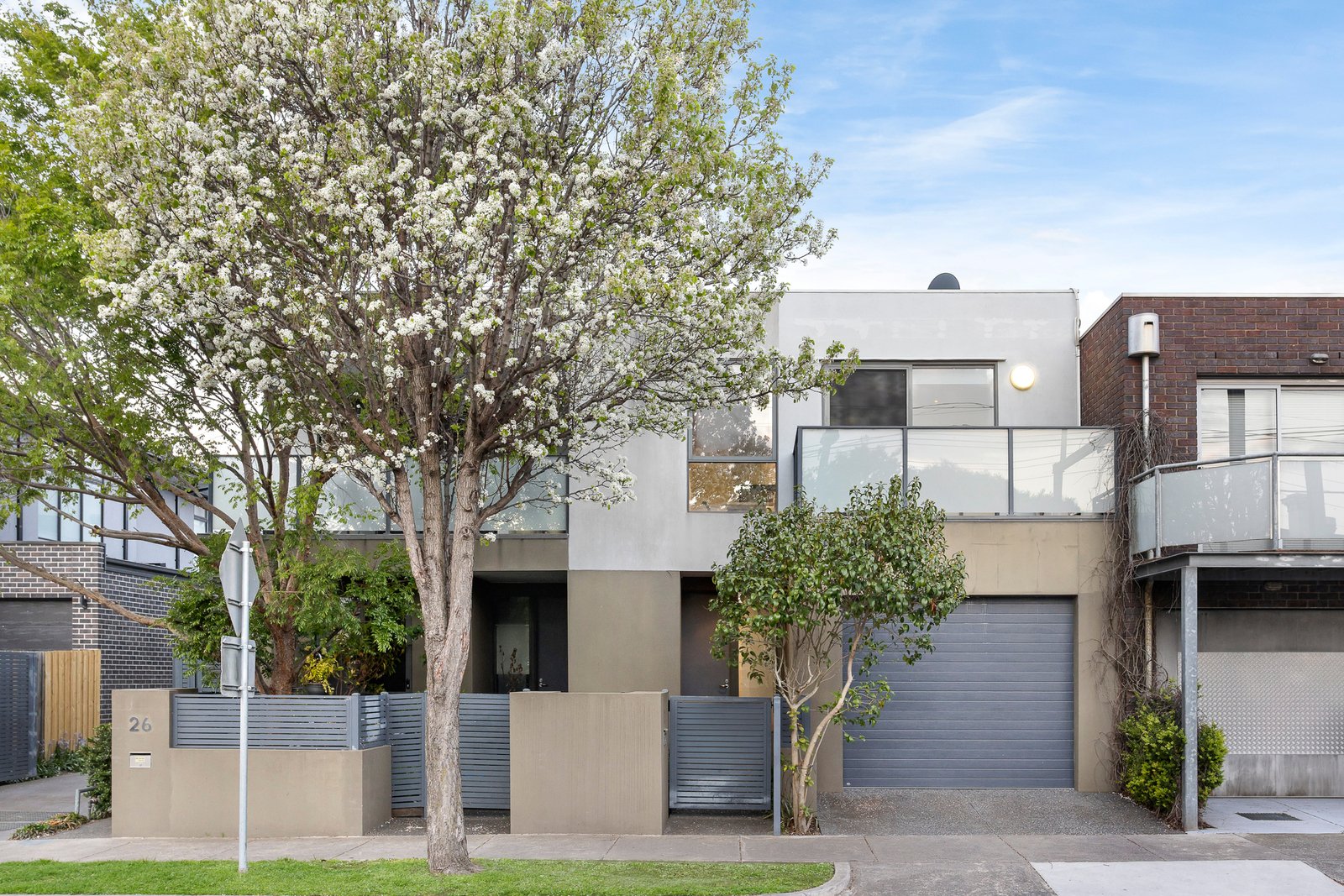 With a European appliance kitchen and full-width balcony to extend the lifestyle and a bespoke-fitted media area to enhance home-entertainment area, this reverse-cycle air-conditioned and panel-heated home has hardwood floors in the latest light Scandi-style, and tall mirrored-robes and plush carpets for each bedroom. Offering the perfect blend of privacy and accessibility with an auto-garage direct from the street, this tall townhouse puts you high in the treetops in this high-amenity locale.
