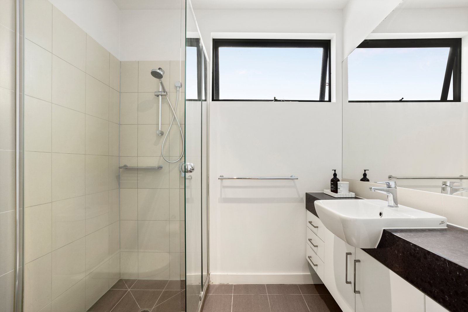 An impressive architectural presence right where the lifestyle strip meets stylish residential locale, this versatile design has the perfect fit for privacy-seeking families and share-housing investors and tenants alike; with a versatile virtual dual-suite design featuring a big robe-fitted bedroom on each level; each with its own designer bathroom and adds a work from home-office for relaxed work/life balance.