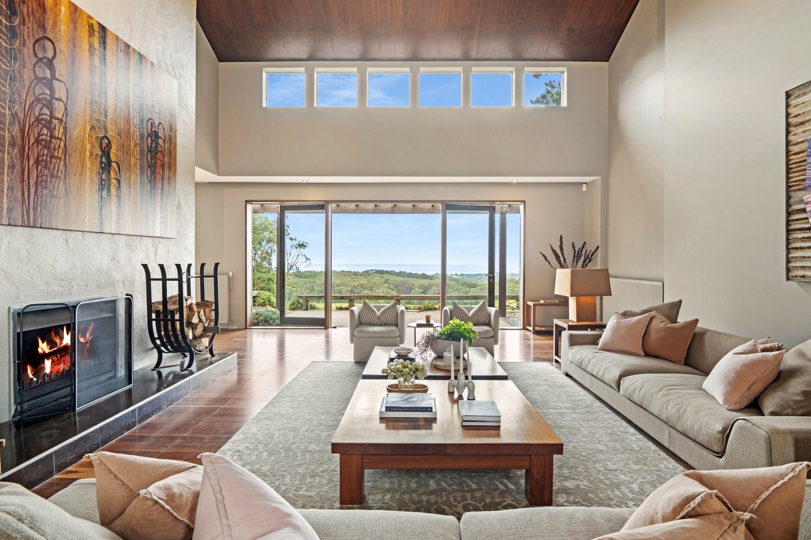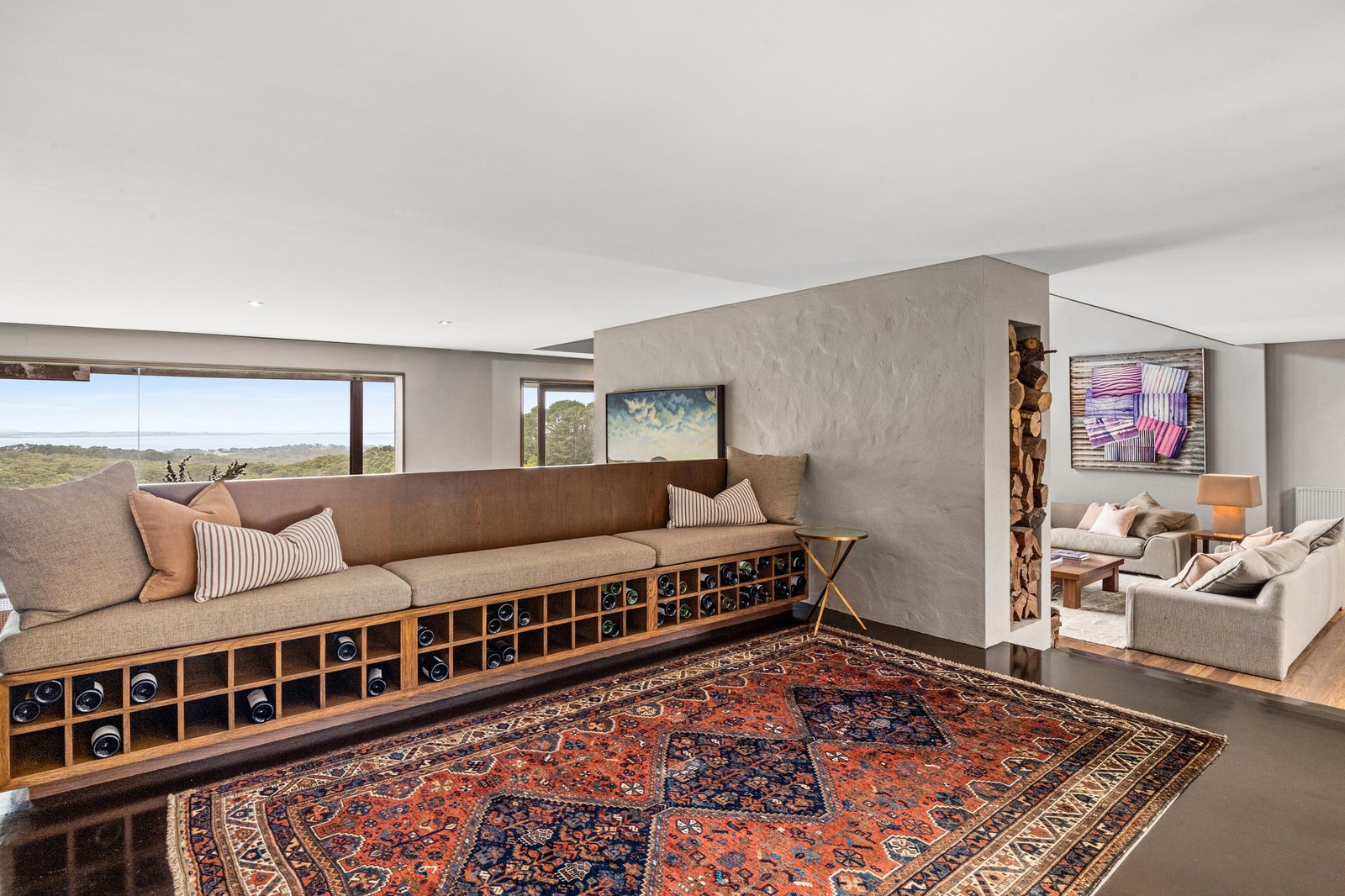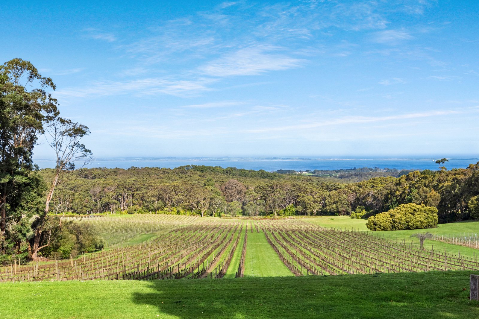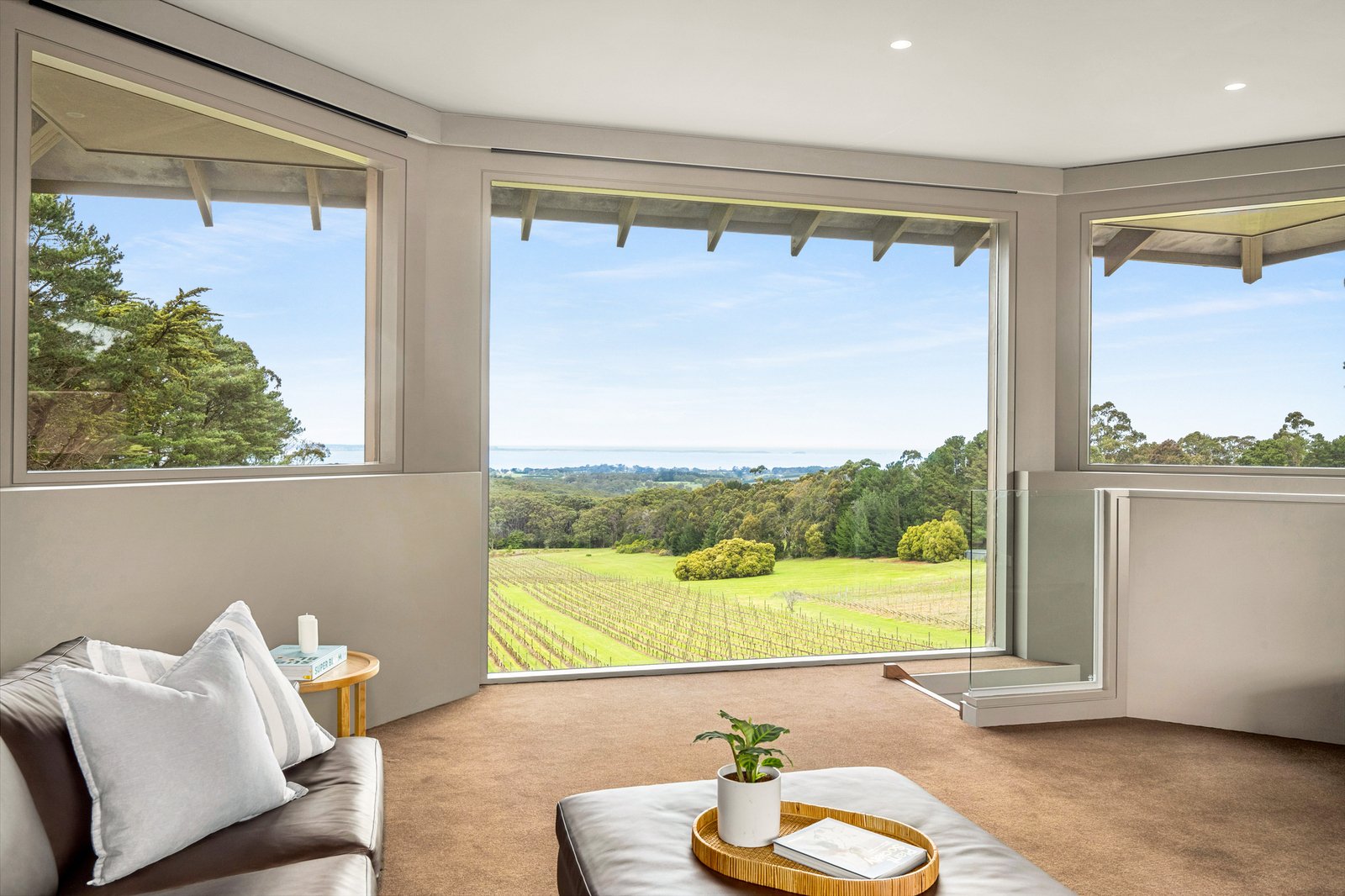 Unrivalled in scale and cinematic beauty, this 29-acre (approx) SJB-designed estate asserts itself with architectural strength and vineyard provenance, its glass and timber volumes opening to 12 acres of Pinot vines cultivated for Polperro through the ‘Little Laney Vineyard’ label. Across the dam and bushland, horizons unfold toward Western Port and Phillip Island in an undisturbed spectacle considered among the hinterland’s finest.
