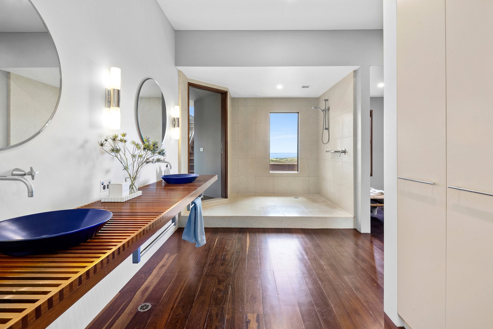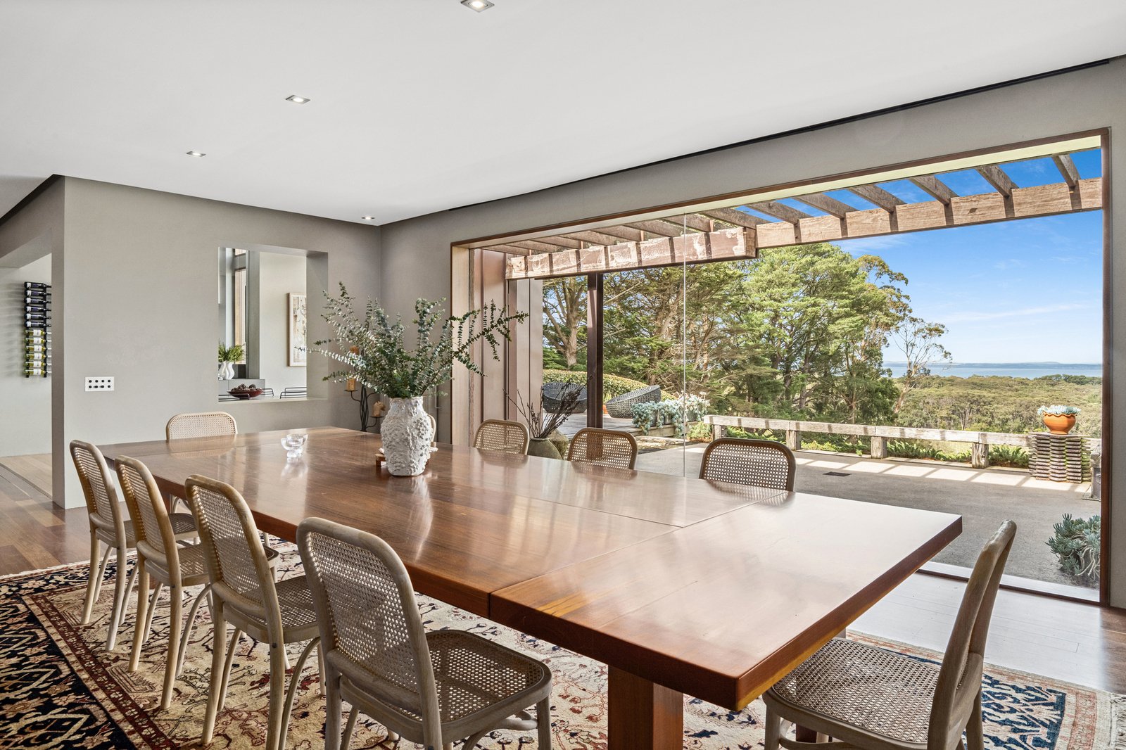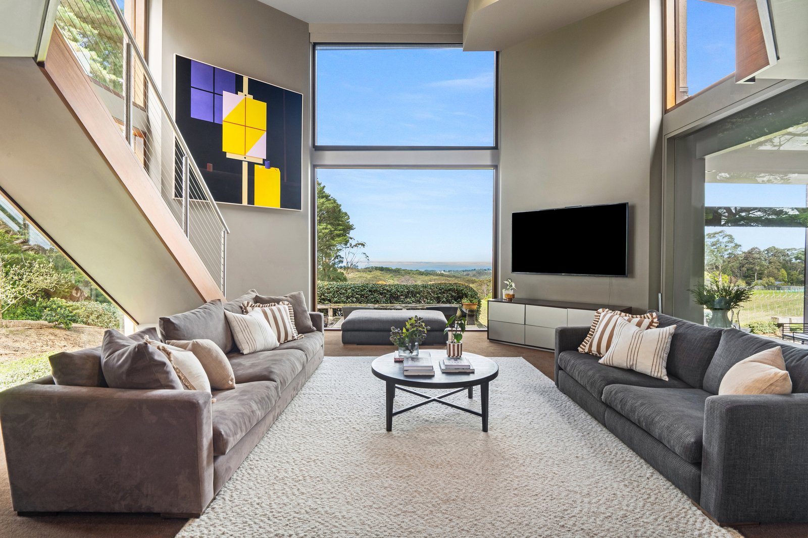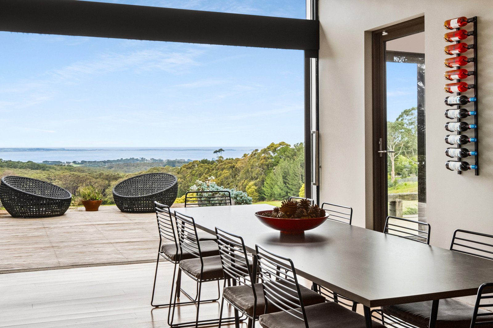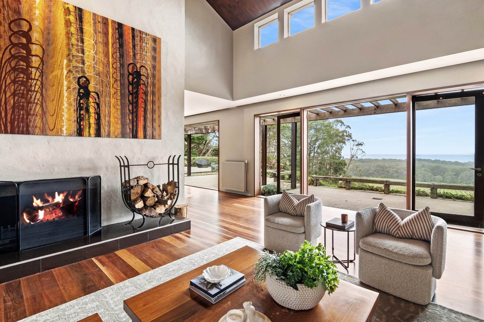 Unrivalled in scale and cinematic beauty, this 29-acre (approx) SJB-designed estate asserts itself with architectural strength and vineyard provenance, its glass and timber volumes opening to 12 acres of Pinot vines cultivated for Polperro through the ‘Little Laney Vineyard’ label. Across the dam and bushland, horizons unfold toward Western Port and Phillip Island in an undisturbed spectacle considered among the hinterland’s finest.