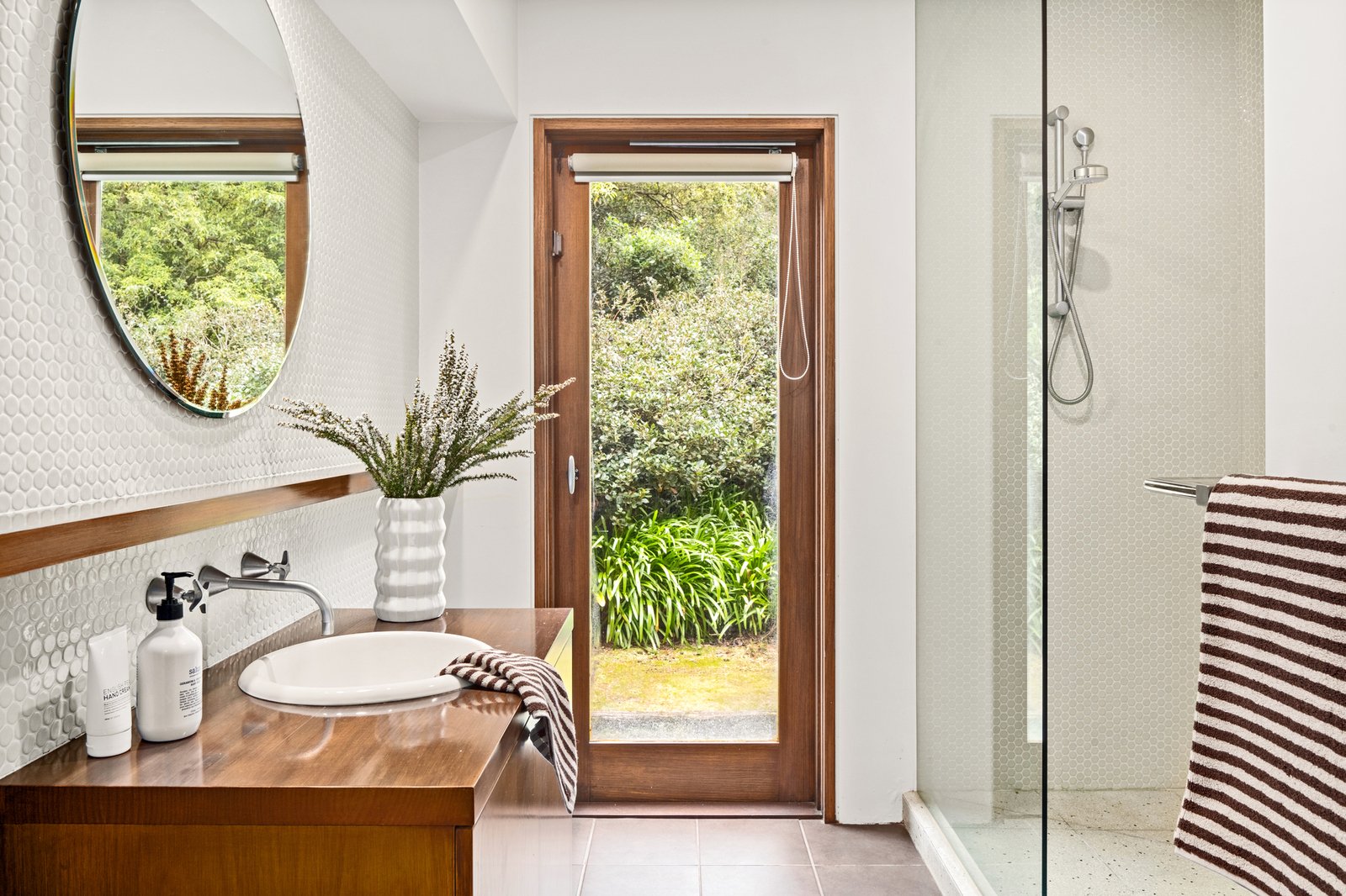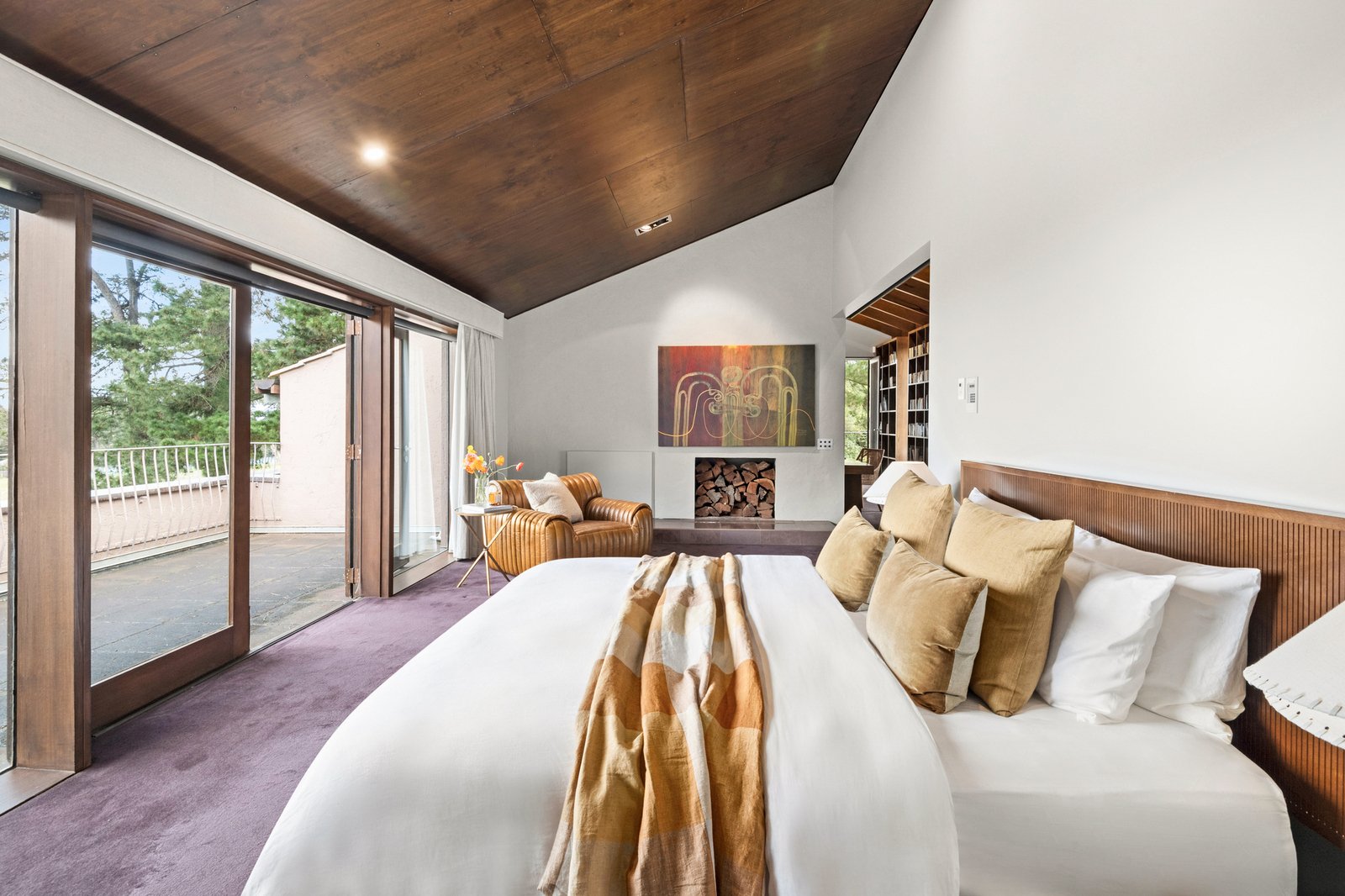 A sweetgum-lined driveway delivers an illustrious seasonal arrival, guiding the approach to a courtyard entry and four-car steel garage with integrated storage cages. Beyond, the estate extends to an orchard, a bocce court, large shed and sweeping lawns, with walking tracks weaving through the bushland for a deeper encounter of the natural landscape.