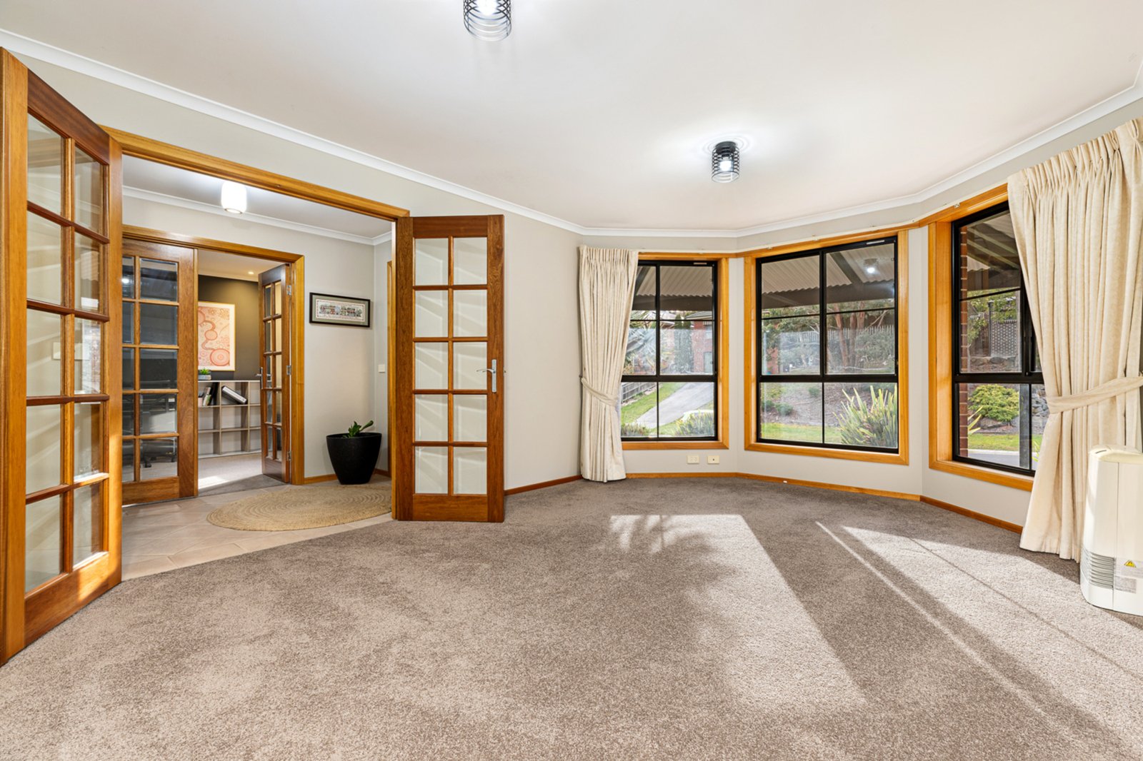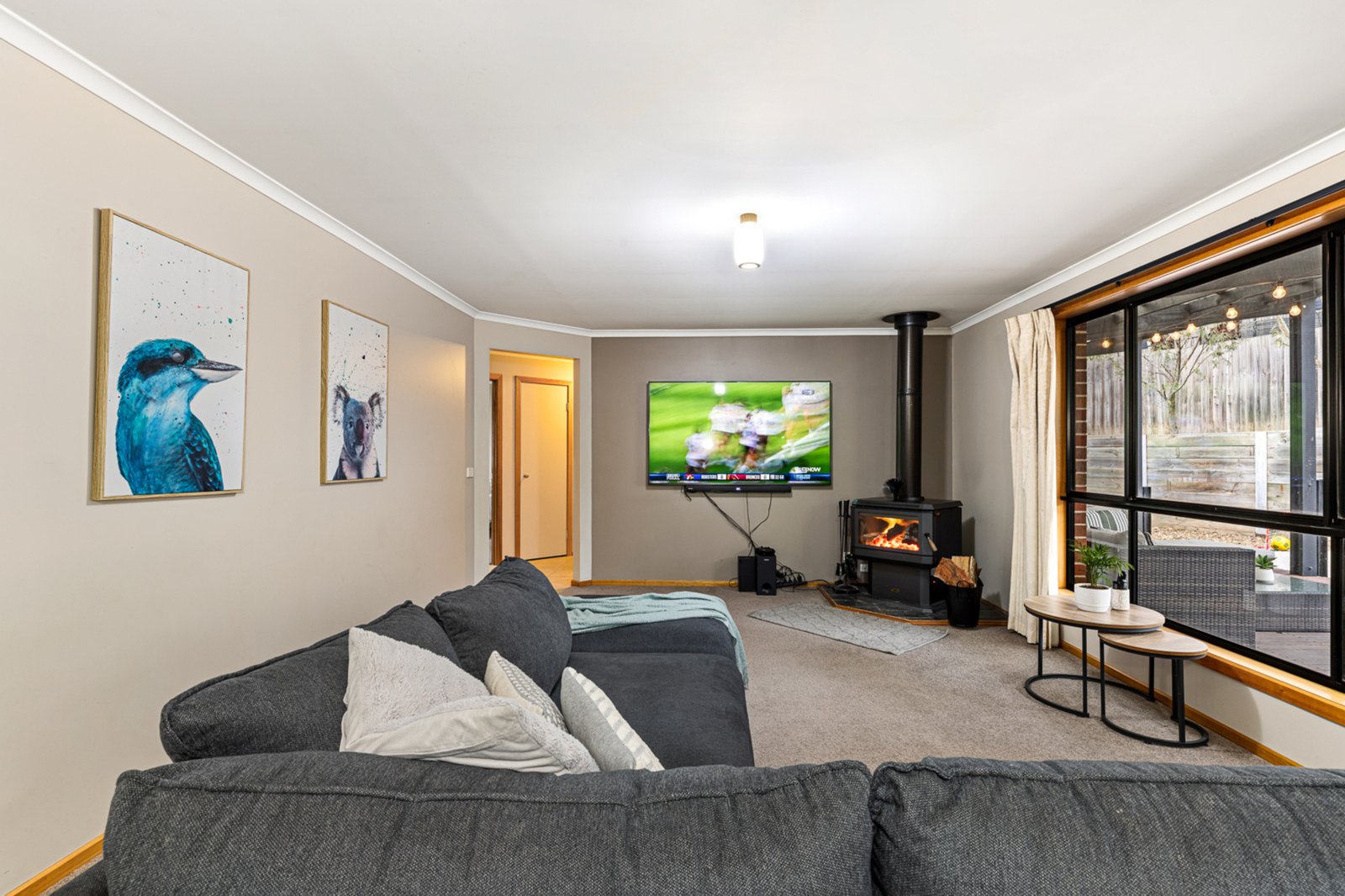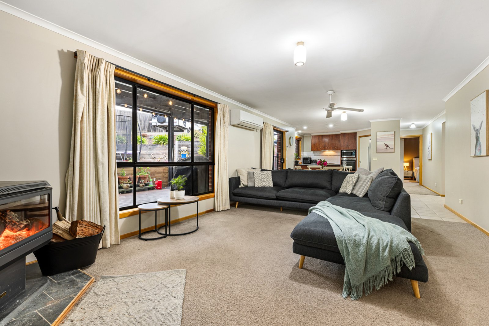 Inside, the home features two distinct living zones, including a separate light-filled lounge with a gas heater.
