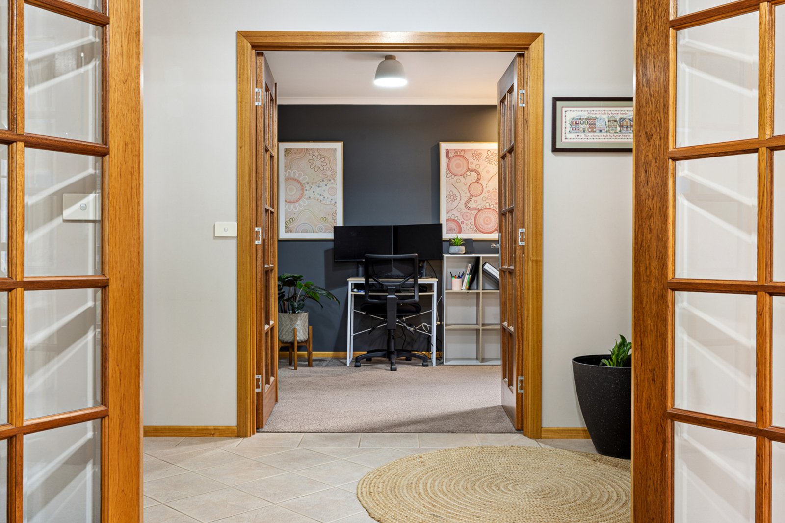 study or fourth bedroom. A stylish central bathroom with a bath and a spacious laundry with bench, sink, and