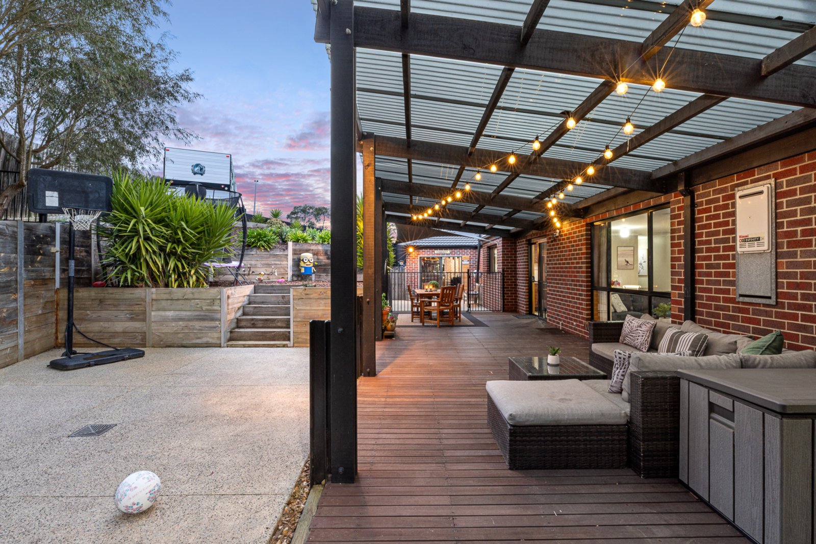 perfect setting for year-round entertaining, seamlessly extending the living space into the private yard.