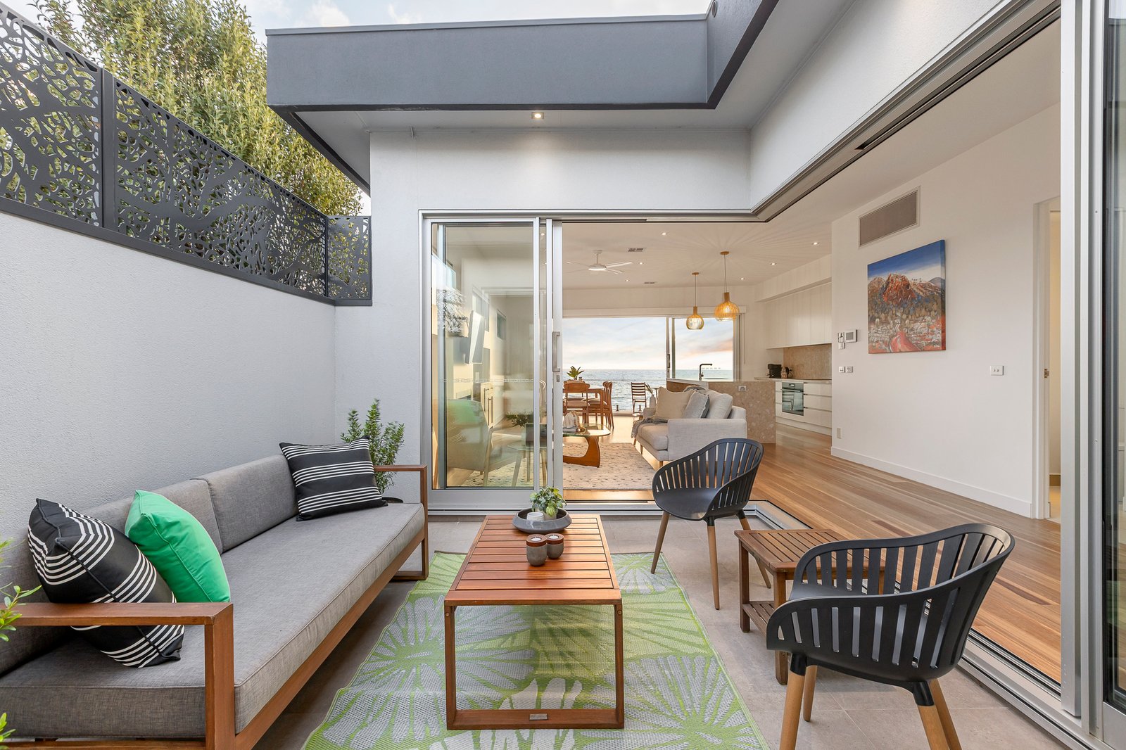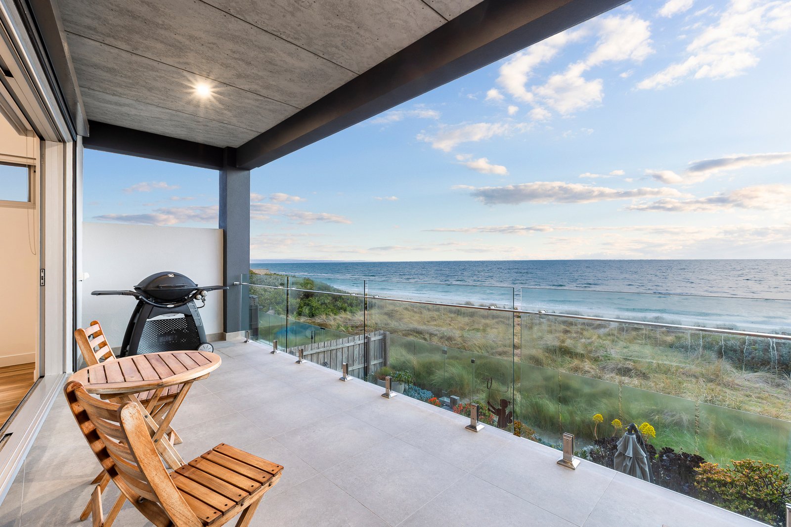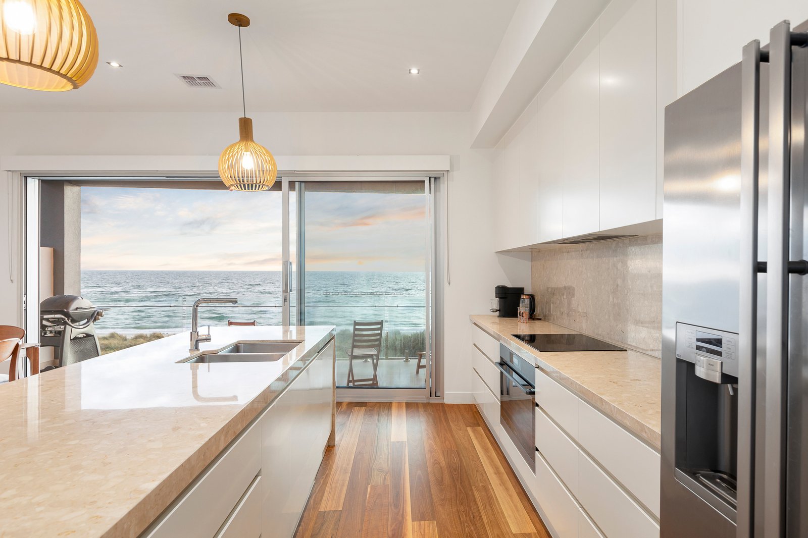 Discover absolute beachfront magic with this luxury entertainer, located for an unrivalled lifestyle and beautifully crafted to the highest standard. With its lift accessibility, private beach access and breathtaking bay views across both levels, enjoy an ever-changing seascape and golden sunsets framed at every turn. Exuding style and flair, this stunning home’s soothing coastal palette of warm white, natural limestone and timber tones invites you to enjoy a relaxed, contemporary lifestyle right on the beach. Upstairs, you’ll love alfresco entertaining with open plan living and dining flowing to a beachfront balcony that’s perfect for summertime barbeques, and an internal deck for dining and drinks. The gourmet kitchen features an island bench and walk-in pantry, induction cooktop, 900mm oven and integrated dishwasher. Boasting serene bay vistas and seamless indoor-outdoor connections, the master retreat will impress, complete with a walk-in robe and double vanity ensuite. Residing at ground level is the second living space with kitchenette, opening to a sunbathed terrace with gate access to the sand. The luxury continues with two robed bedrooms, one with sweeping water views, a stylish dual-access bathroom and two dedicated study zones. Finishing touches include a gas log fireplace, video intercom, powder room, zoned heating and cooling, plus an internal-entry double garage. Position perfect, stroll to Edithvale Village’s trendy eateries, shops and the station. Chelsea Village is also within walking distance, and excellent schools within easy reach.