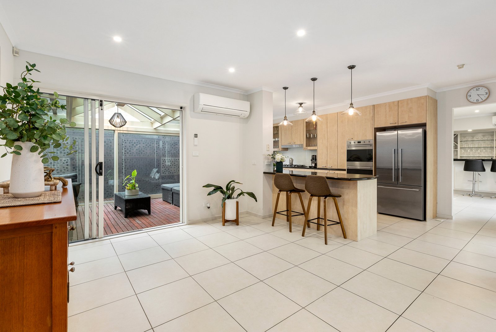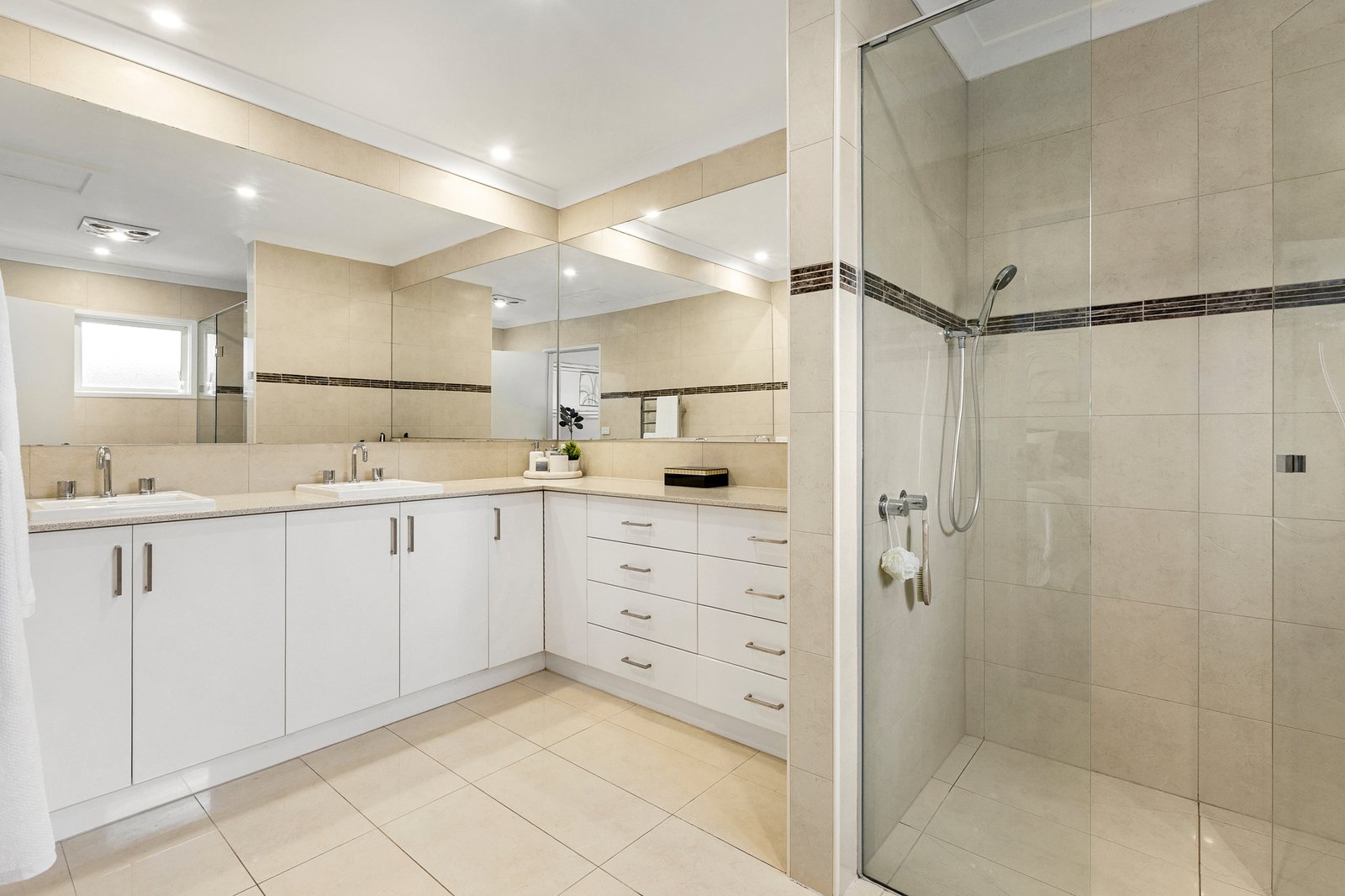 Parents will love having the resort beauty of a master suite that overlooks the palm-fringed pool, with a fitted walk-in-robe suited to designer shoe collections, and its own ensuite with wraparound bench. A second main bedroom with ensuite accommodates the growing or intergenerational family, with ample storage in an oversized linen cupboard.