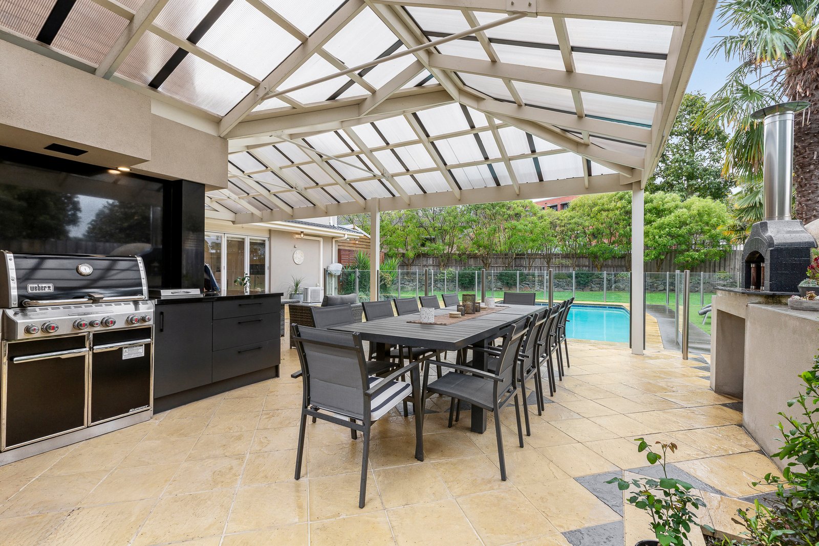 From its high rising position on meandering Mannering Dve, the 850sqms (approx.) property promises ‘wow’ factor entertaining with a full BBQ kitchen, pizza oven and in-ground pool, spa and pergola designed to bring European lifestyle to the weekend.