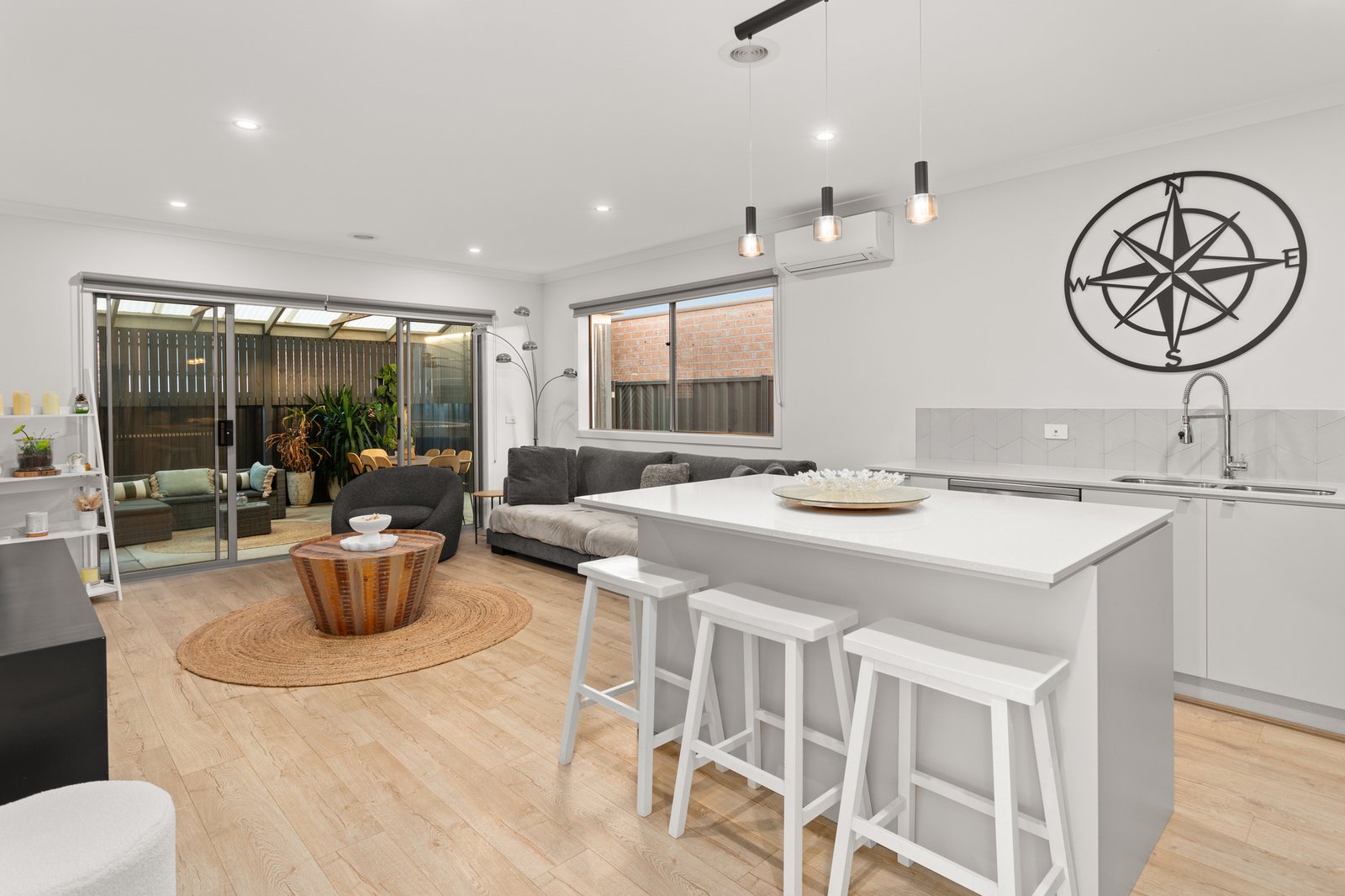 Spread over one easy single level, the home coalesces around a lounge and dining room with corner aspects opening wide onto the patio....