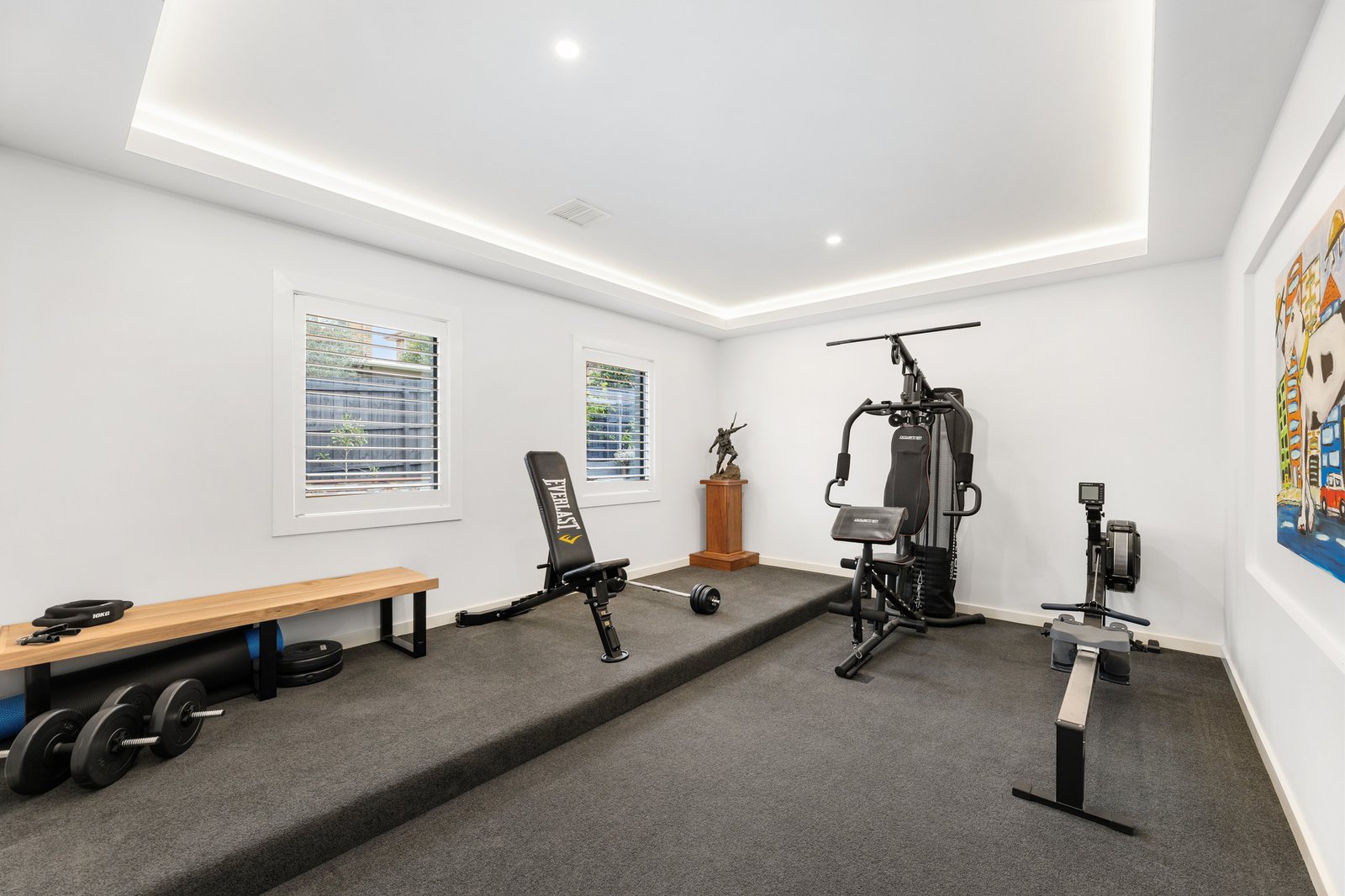 Bedrooms are cleverly zoned in private wings, with 5 bedrooms to accommodate the growing family, 3 bathrooms, 2 dedicated studies with in-built desks and a spacious gym/ theatre room. Up the floating staircase, a huge rumpus and balcony present the perfect place to relax and entertain, with a mezzanine as the perfect viewing platform for the 2 spectacular voids.