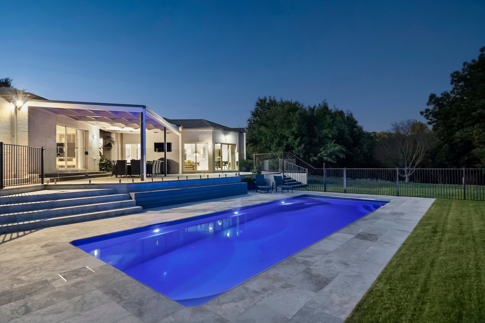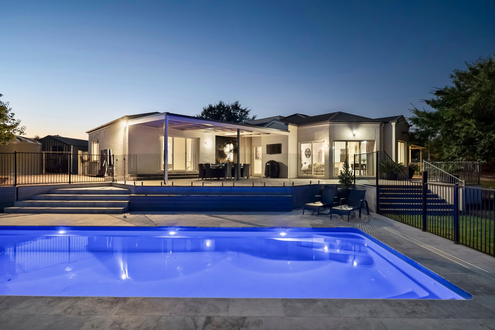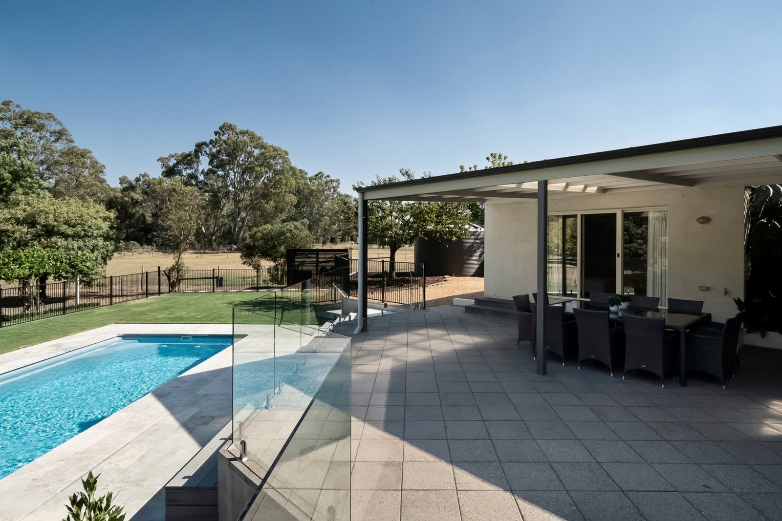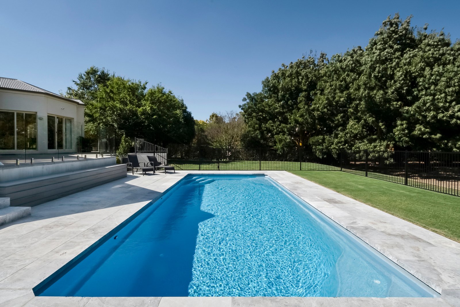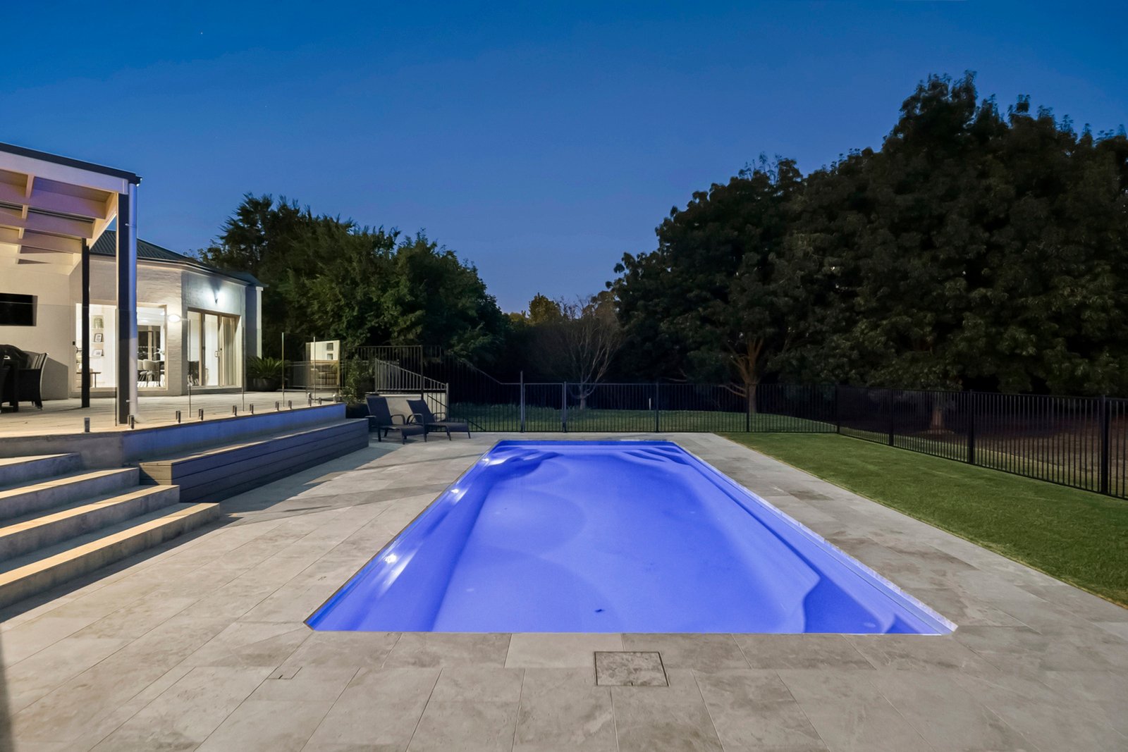 The new 10m pool surrounded by sandblasted limestone pavers and glass fencing, with an inground blanket/roller, app-controlled salt-chlorination, LED lights, in-floor cleaning and a heat pump offers ultimate enjoyment for all ages.