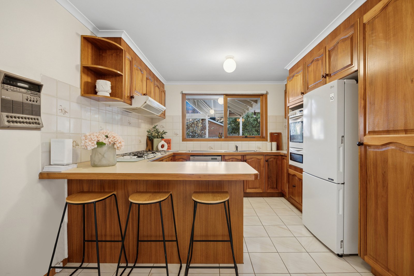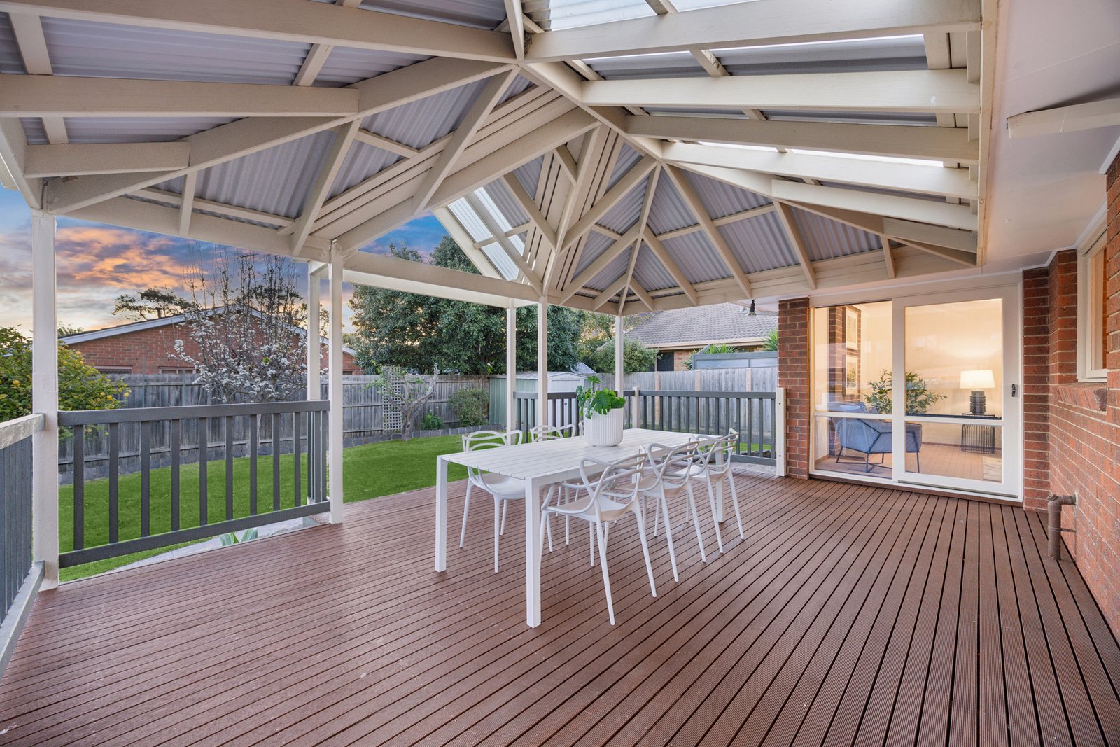 Styled for an entertaining lifestyle (or just the biggest family occasion) with an immense tiled dining area wrapping around to a quality kitchen, this accommodating home steps up to a balconied bedroom level with a treetop master-suite (complete with big walk-in robe and an elegant ensuite) and adds the option of a great ground-floor bedroom in a quiet wing along with its own bathroom.