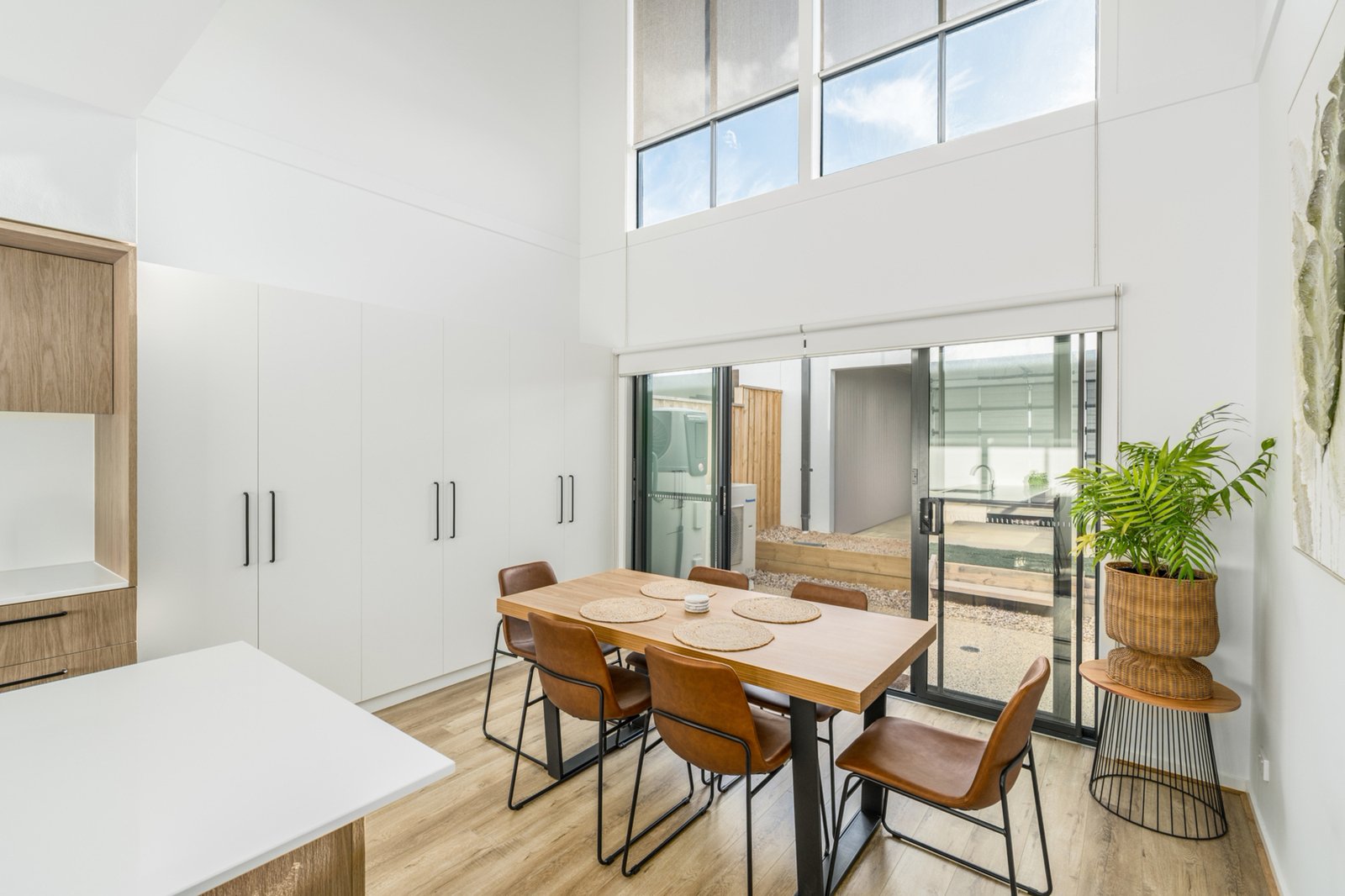 Cleverly designed to maximise natural light, the home features an open plan living and dining area with timber look laminate flooring, high ceilings, and a warm neutral palette. The sleek kitchen offers stone benchtops, quality appliances, a cold water point to the fridge space, and abundant storage, flowing seamlessly to a private courtyard perfect for relaxing or entertaining.
