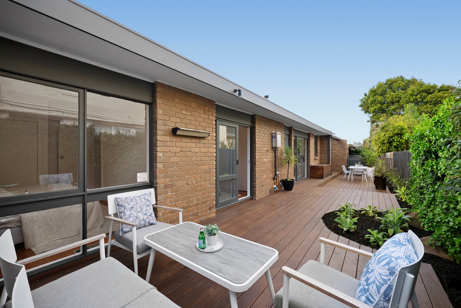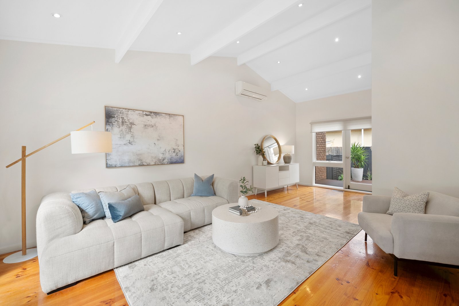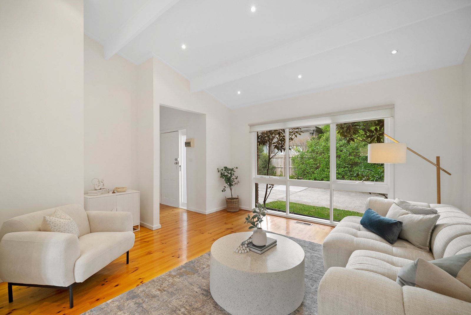Lofty, light-filled and with mid-century modern style, this is where single-level living meets Sandringham life. Built to the scale and quality this blue-chip address deserves, this substantial three-bedroom, two-bathroom single-level townhouse rises above the rest with an expansive dual-living design characterised by soaring vaulted ceilings, walls of windows, and outlooks to entertainer’s garden at every turn.